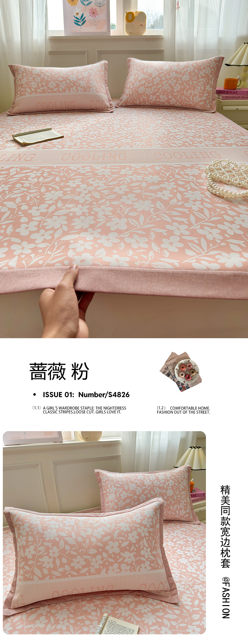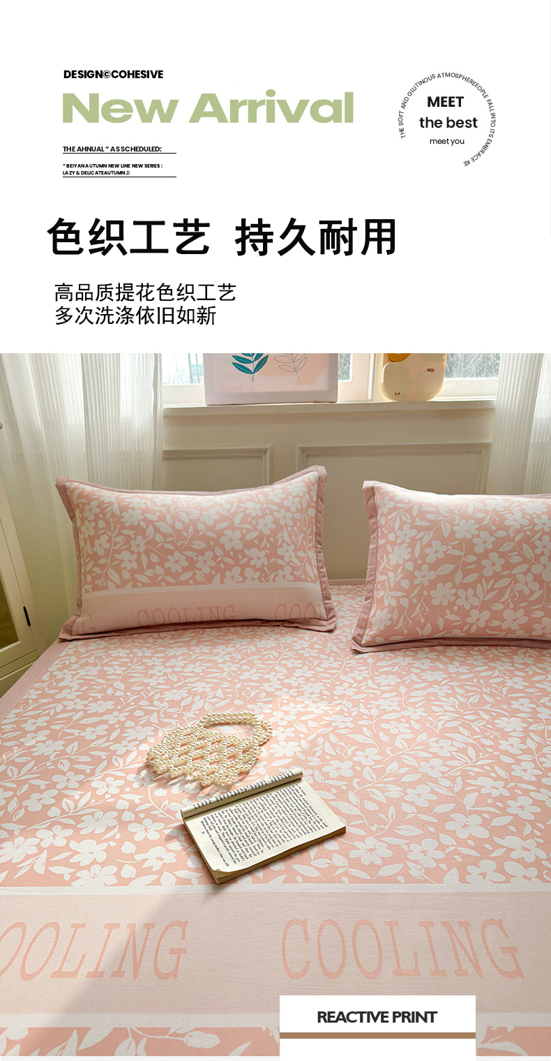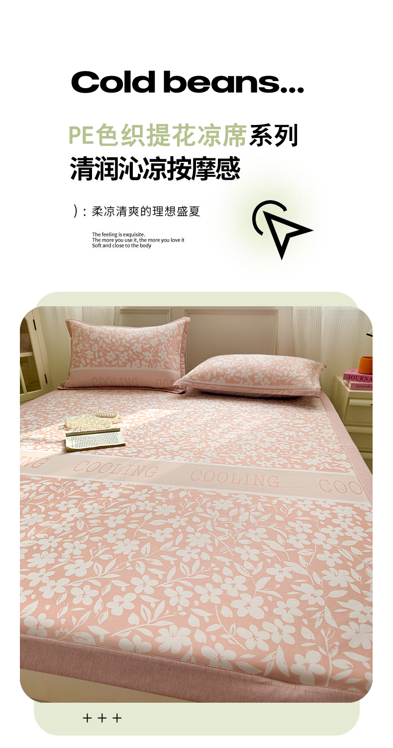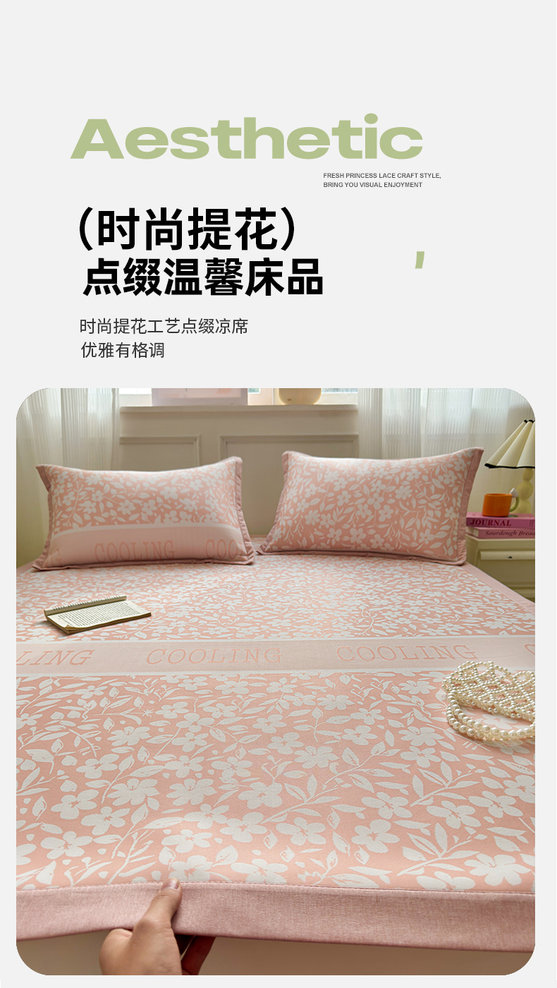 商品名称:花漾家居 2025新款A类色织提花PE凉感丝凉席三件套床单床笠款 床笠款-蔷薇粉