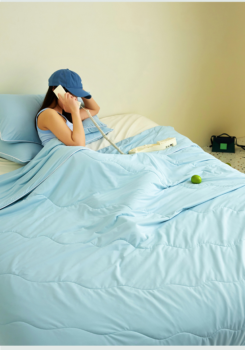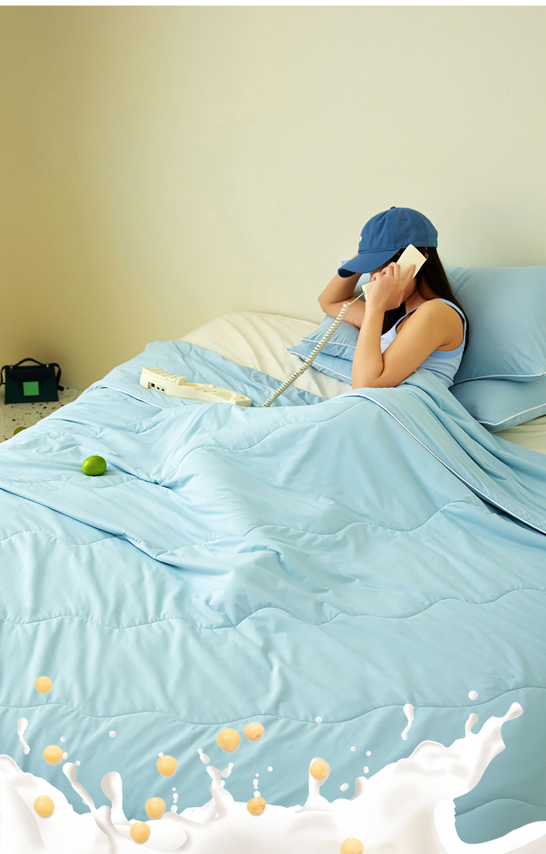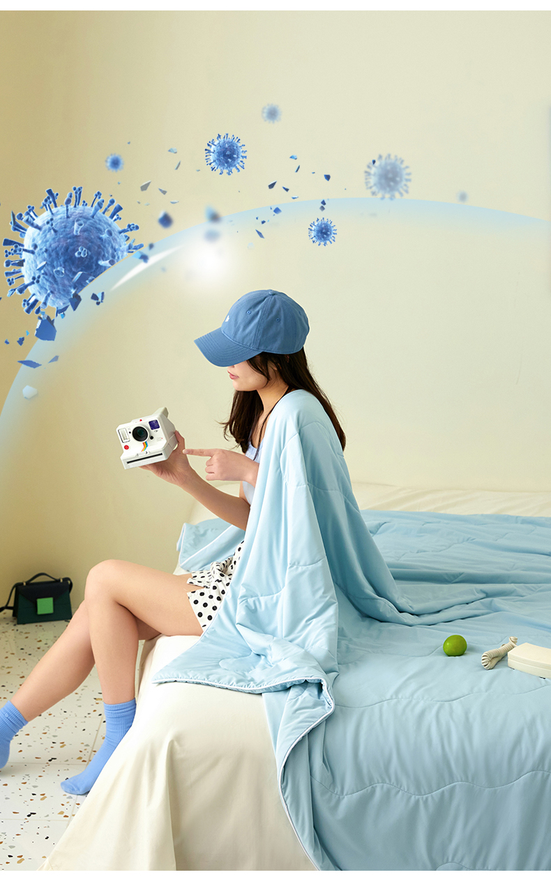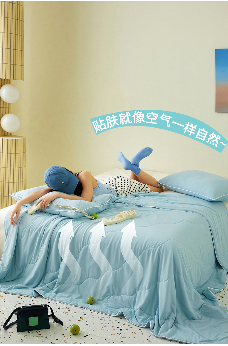 商品名称:头等舱 2025新款锦氨凉感A类20大豆7A抗菌纯色空调被夏凉被夏被模特图(配礼盒) 海水兰