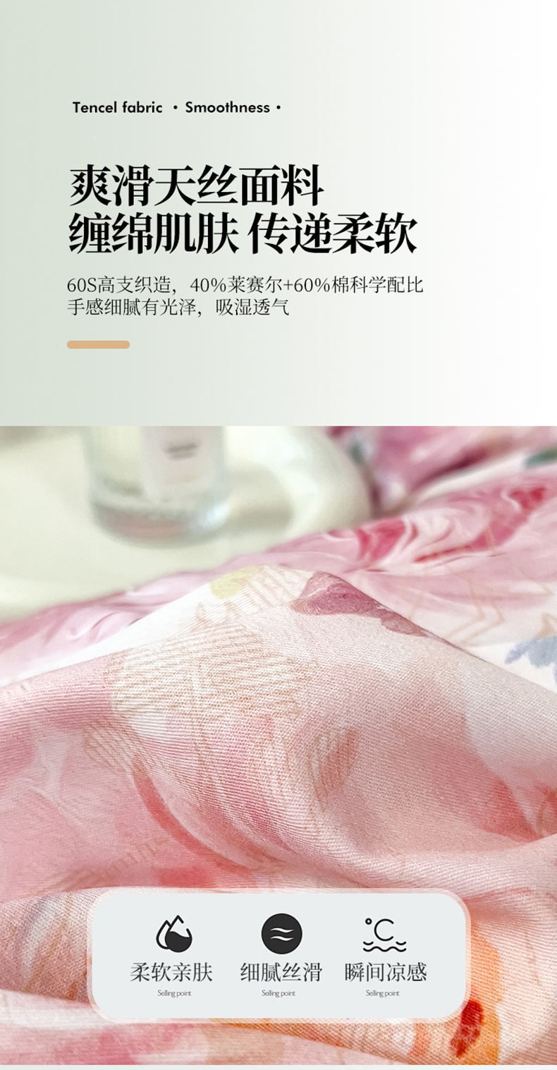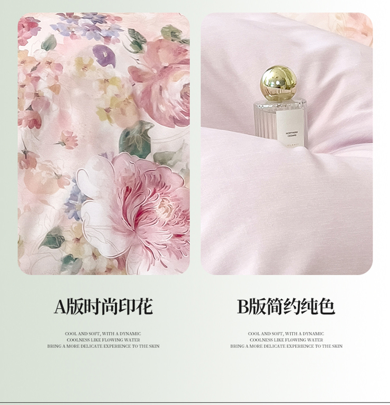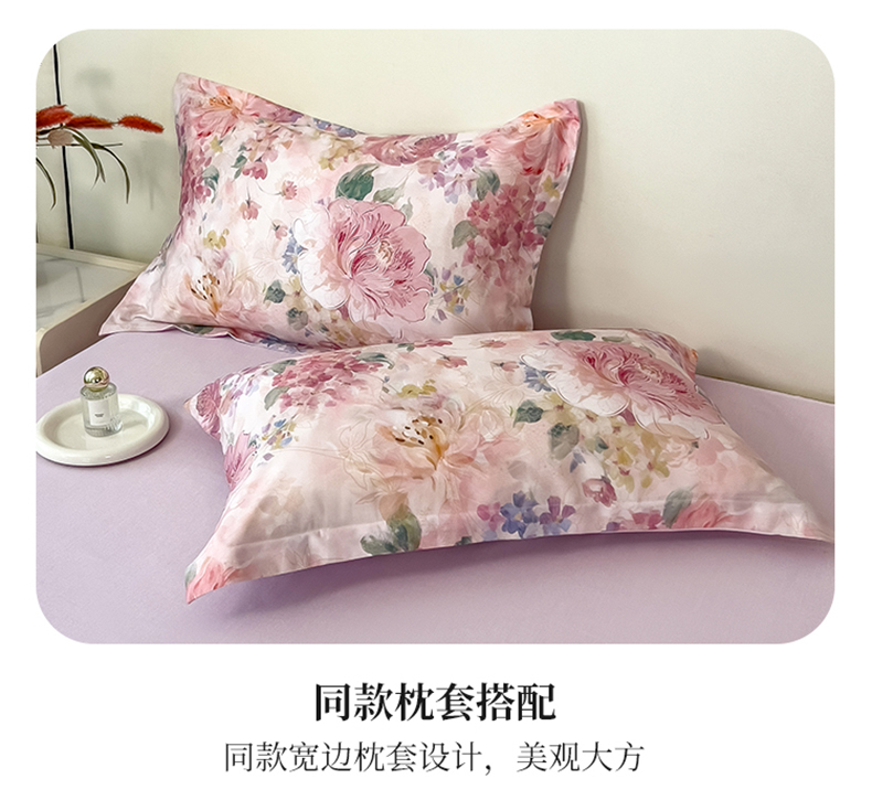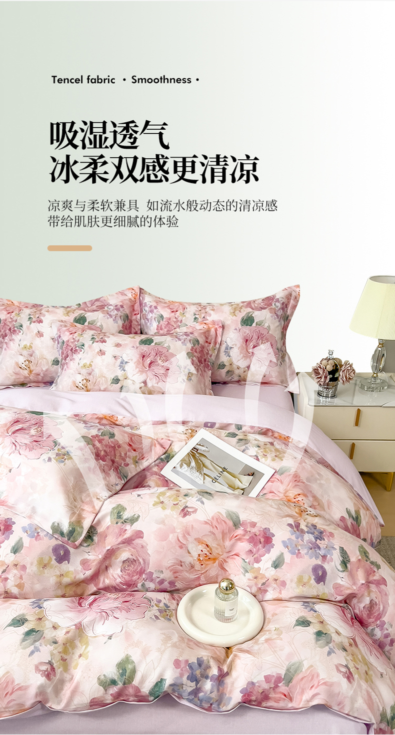 商品名称:芃成家纺 2025新款A类莱赛尔天丝棉四件套 国色花韵-粉