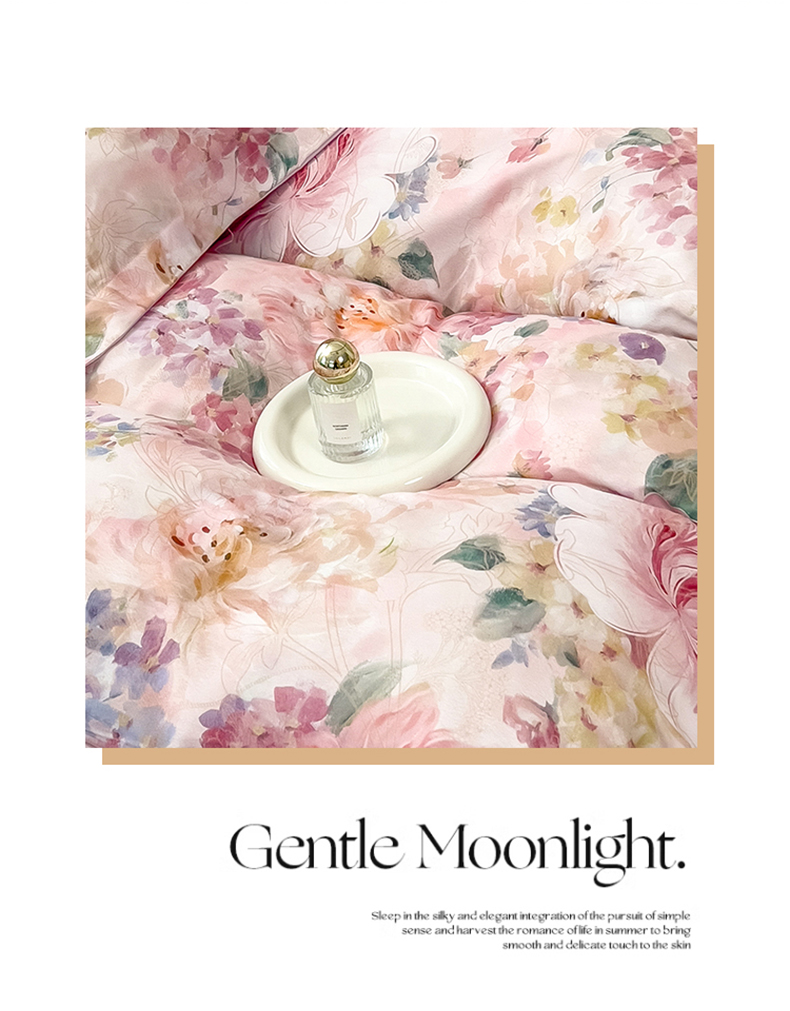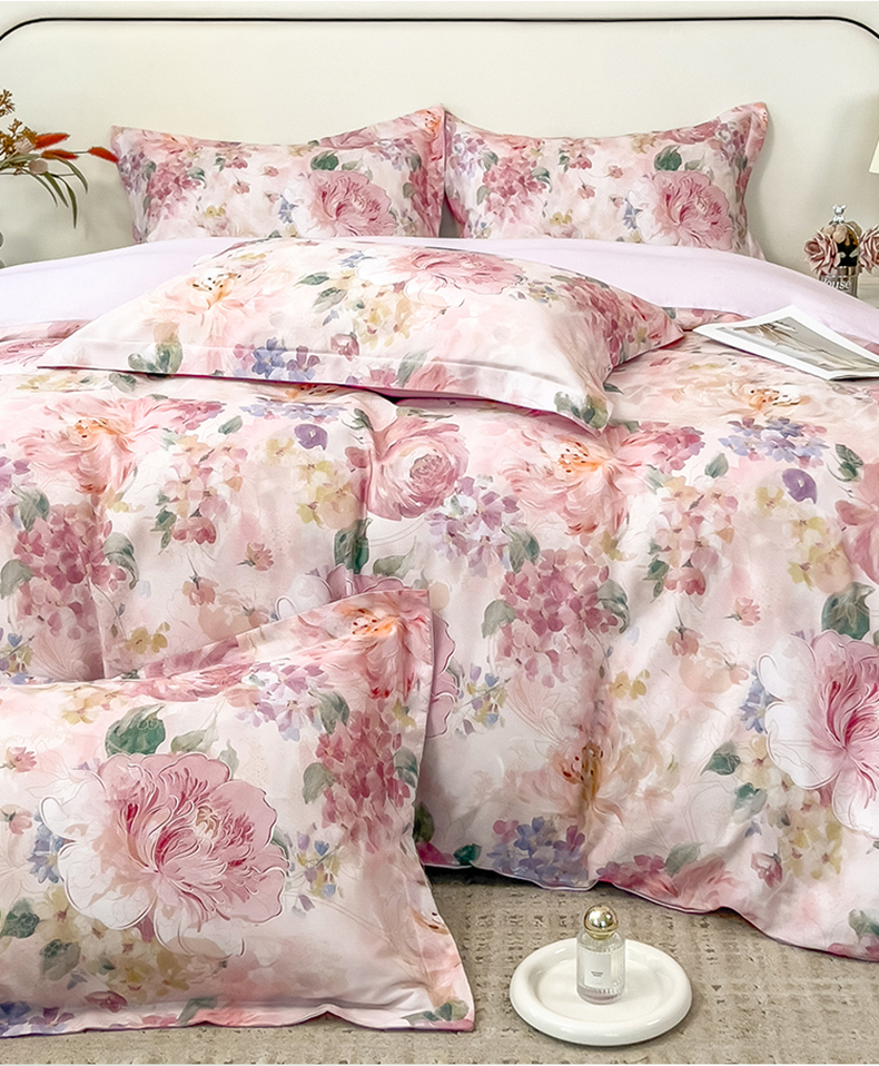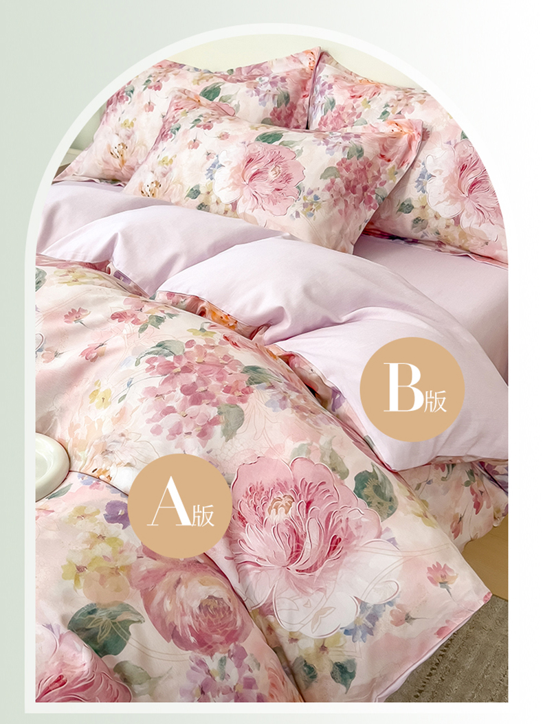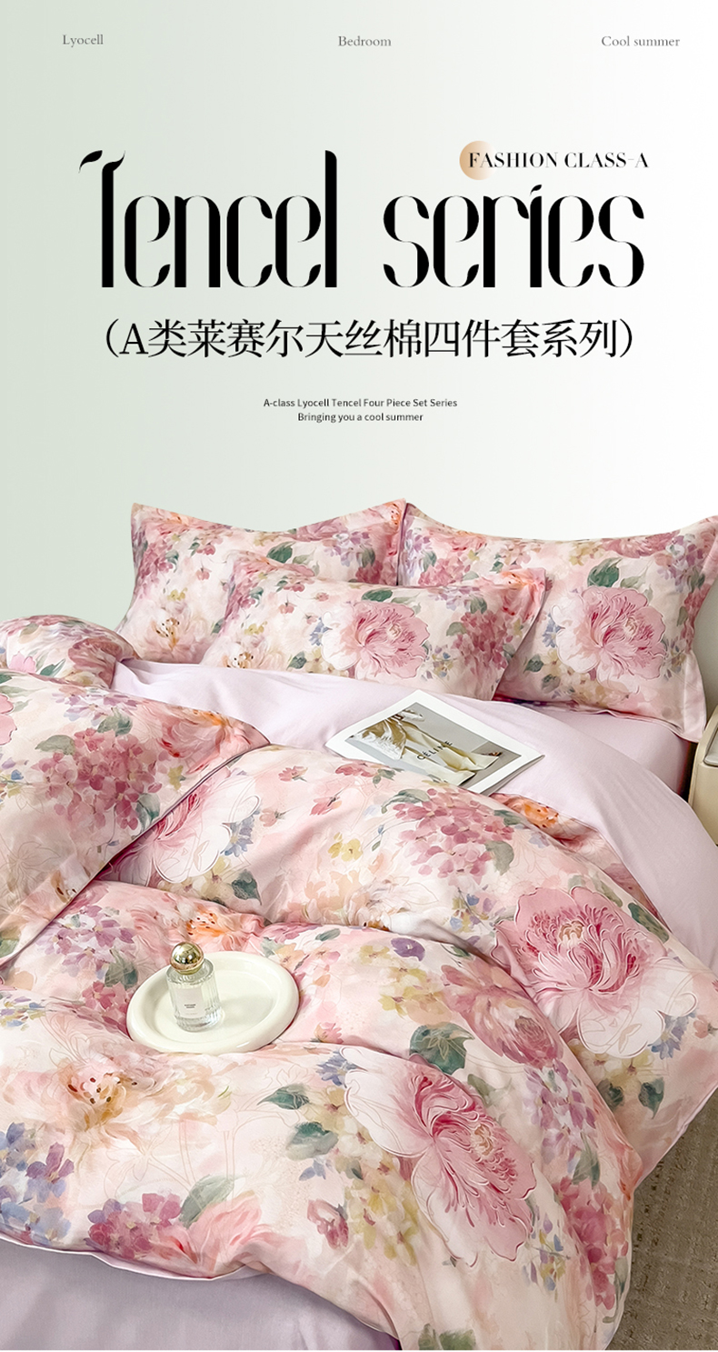 芃成家纺 2025新款A类莱赛尔天丝棉四件套 国色花韵-粉