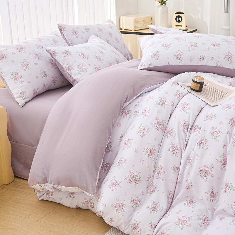 蕾诺家纺 2025新款直播新款A类有氧提花云纱棉圆角吊边工艺四件套学生三件套 西塘