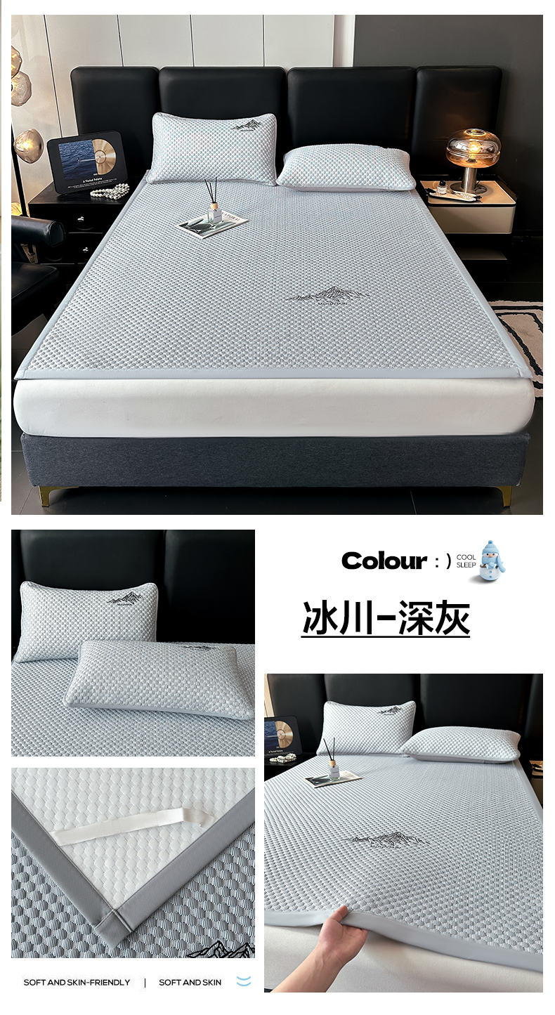 澳梵家居 2025新款PE中分子A类凉感豆豆刺绣软凉席 冰川-深灰