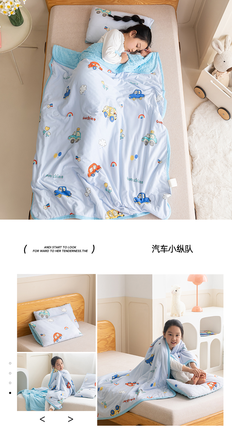艾佳宝贝 2025新款A类豆豆针织儿童多功能盖毯安抚夏被-模特图 汽车小纵队