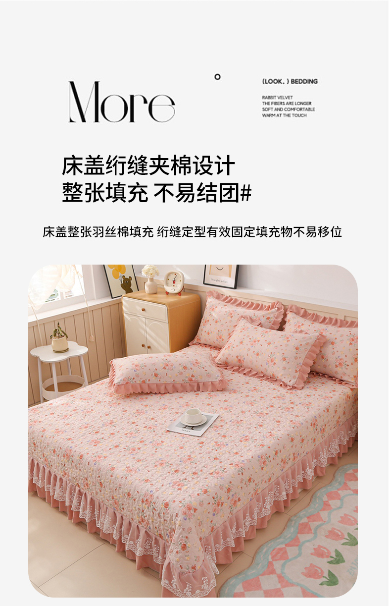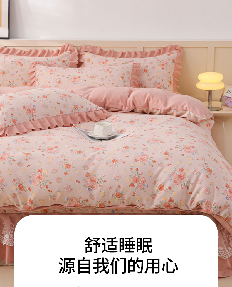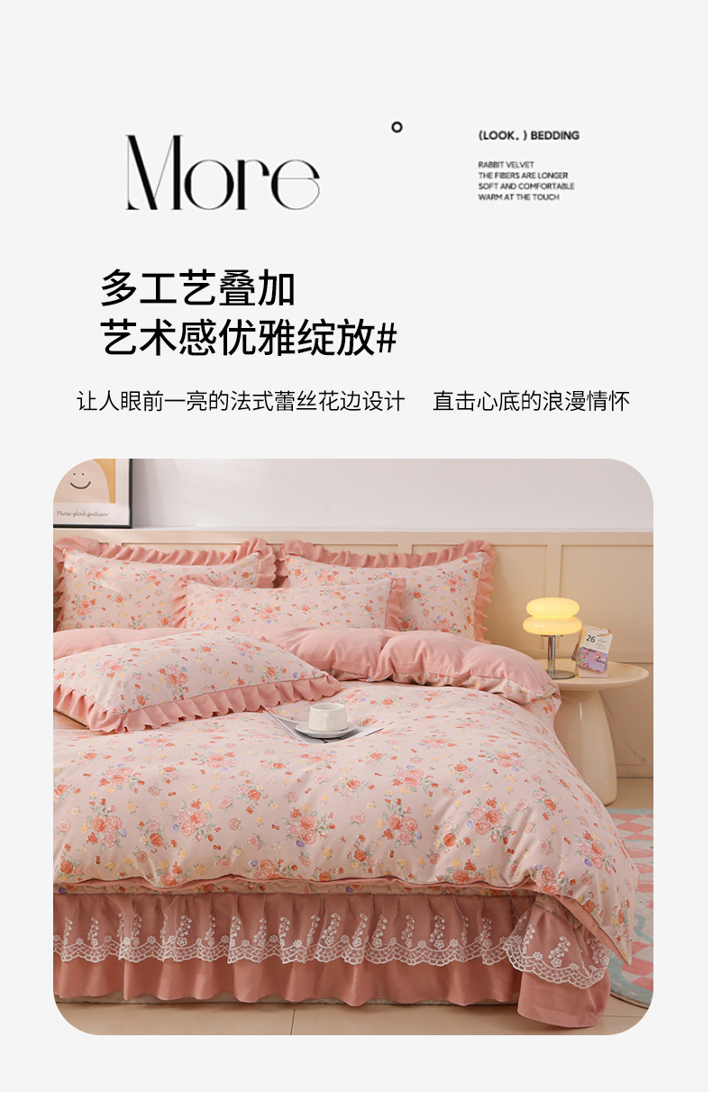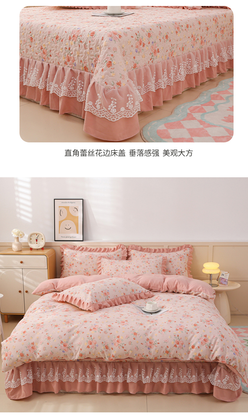 当前位置: 91家纺网 > 商品网购 > 床品套件 > 四件套 > 磨毛活性四件套 > 铠畅 2025新款法式花边云朵棉床盖款夏被四件套 繁花