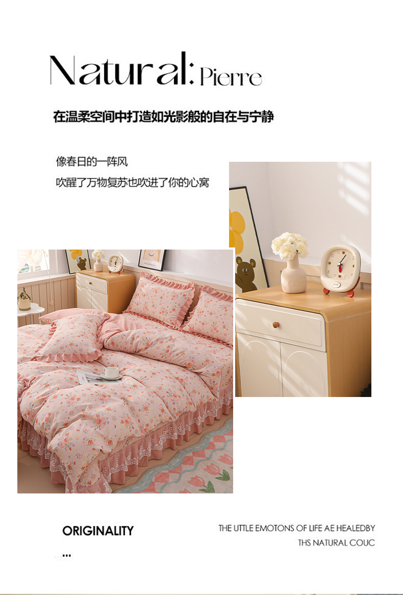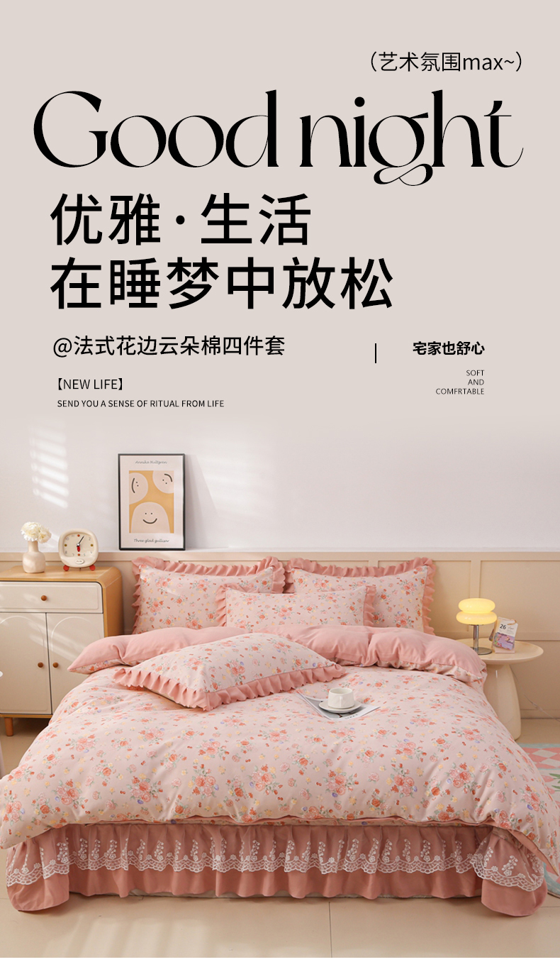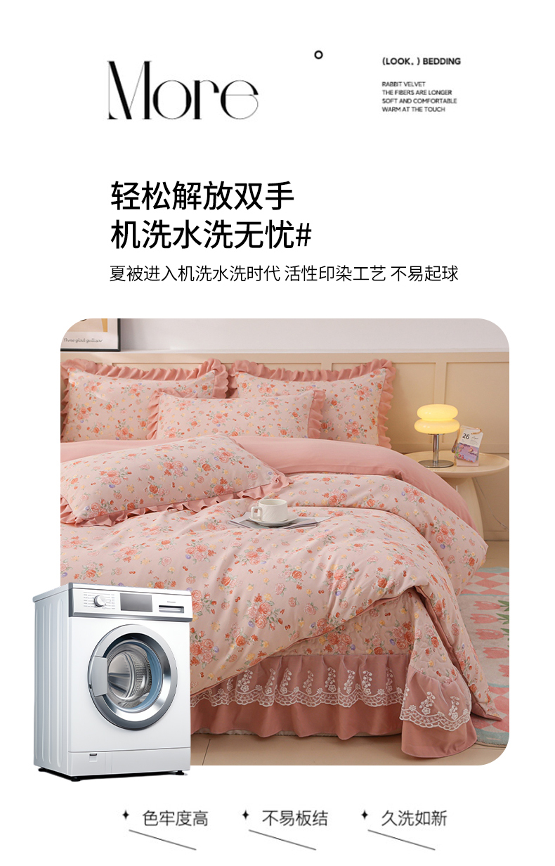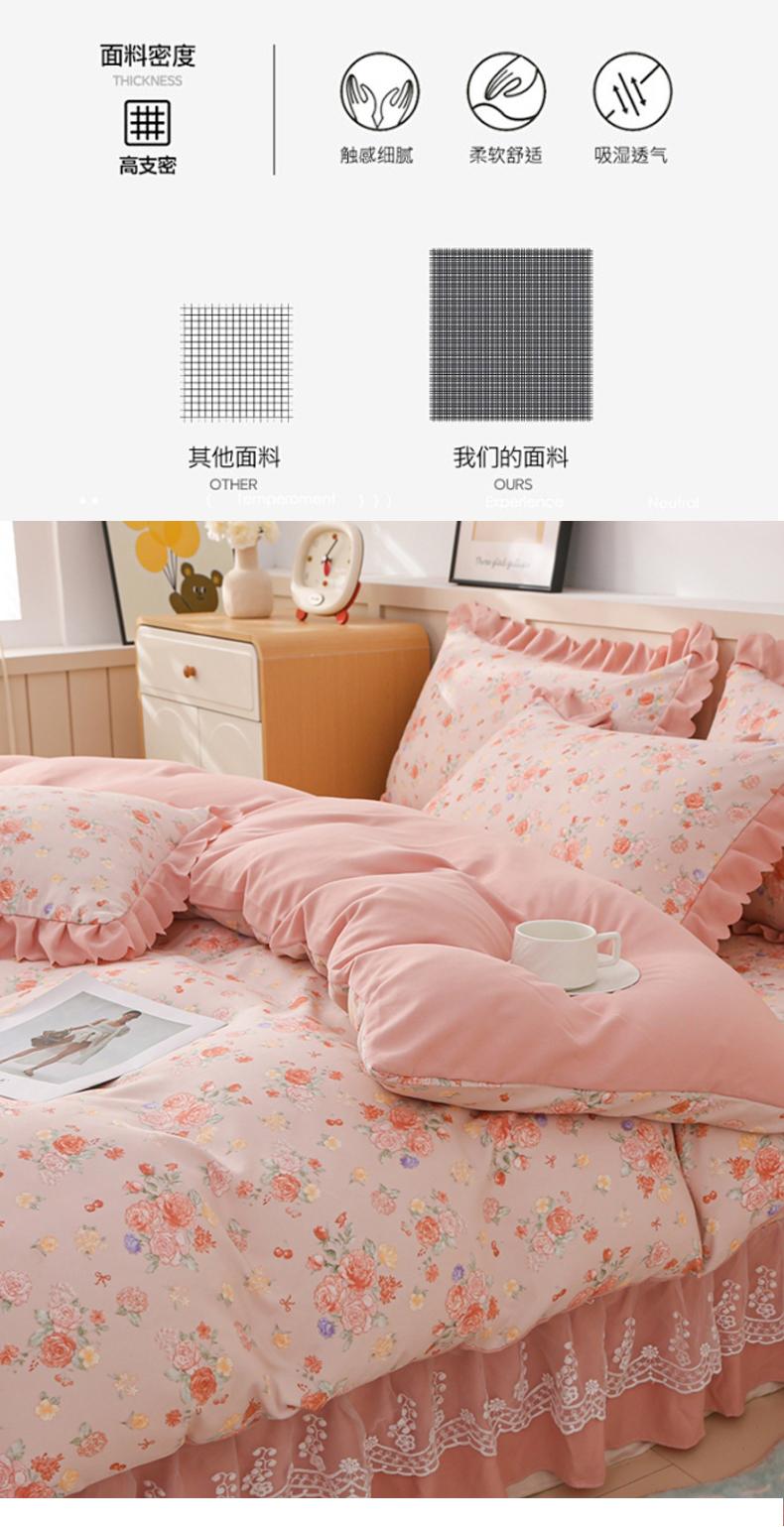 当前位置: 91家纺网 > 商品网购 > 床品套件 > 四件套 > 磨毛活性四件套 > 铠畅 2025新款法式花边云朵棉床盖款夏被四件套 繁花