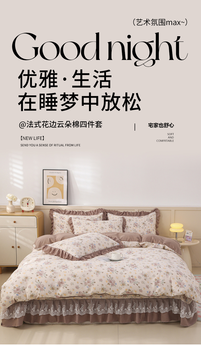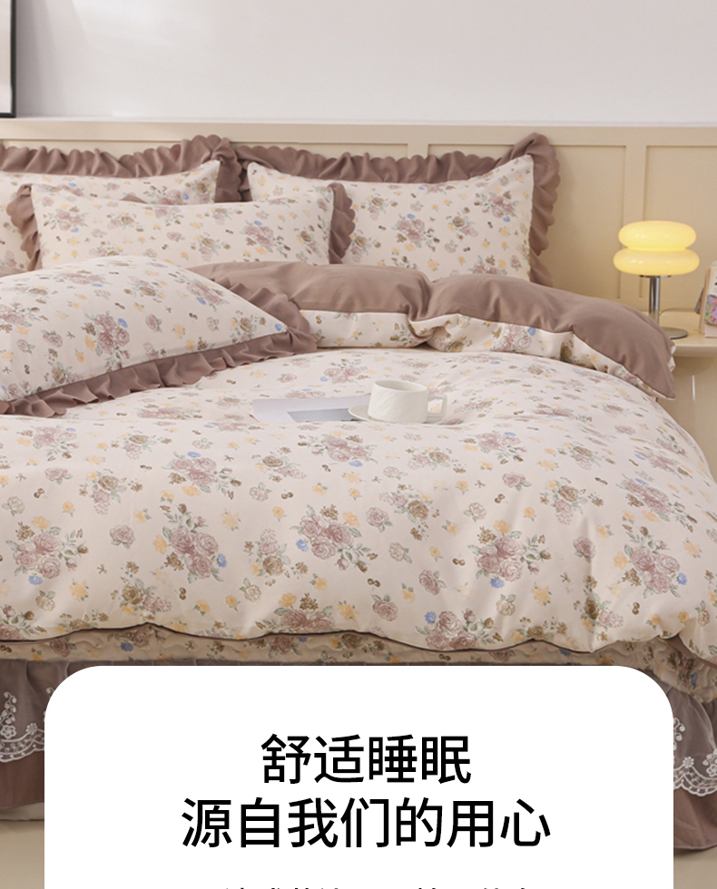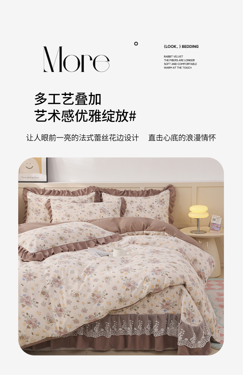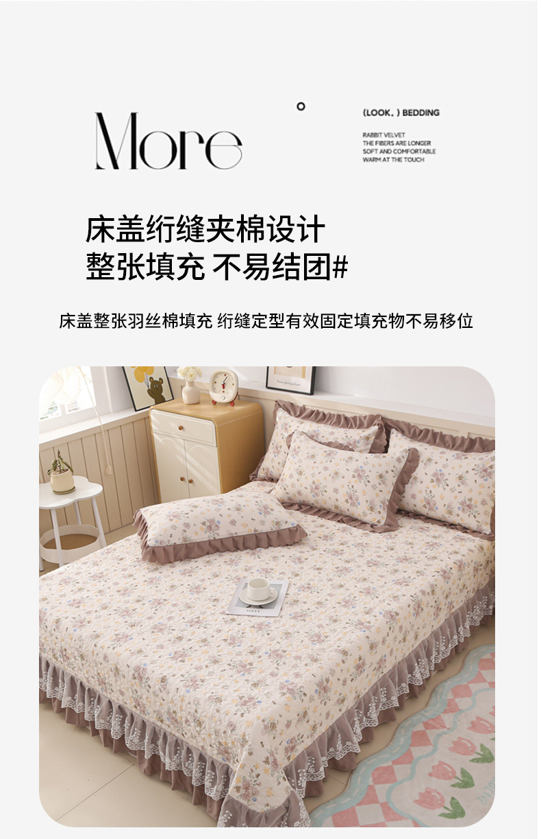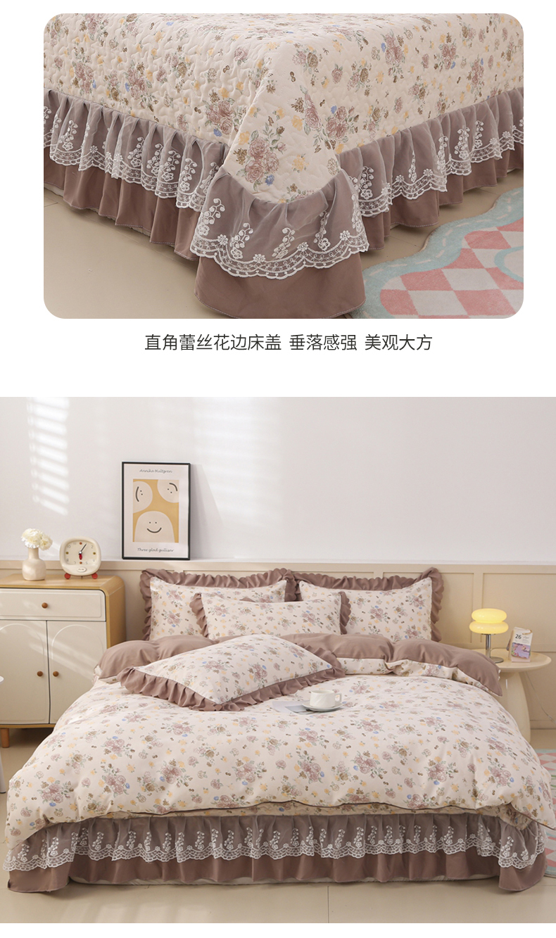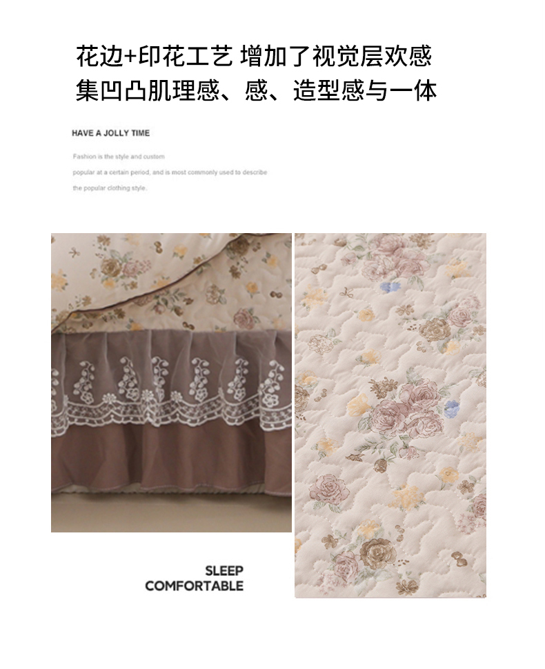 当前位置: 91家纺网 > 商品网购 > 床品套件 > 四件套 > 磨毛活性四件套 > 铠畅 2025新款法式花边云朵棉床盖款夏被四件套 花忆