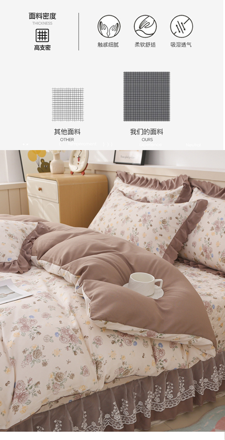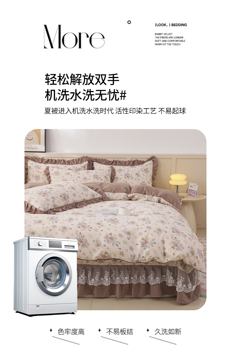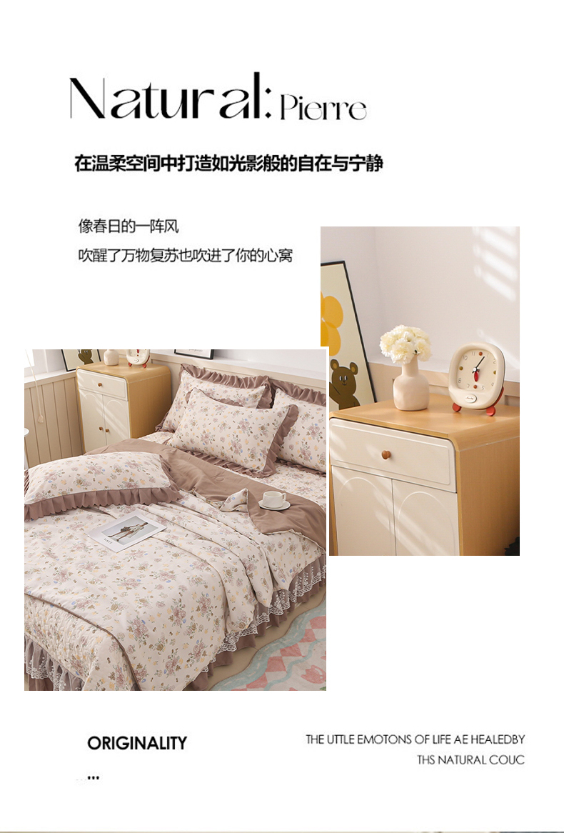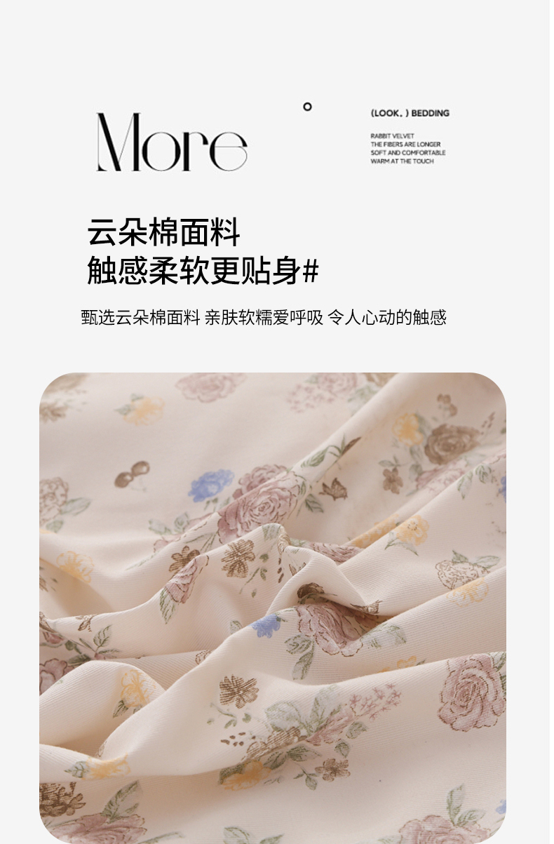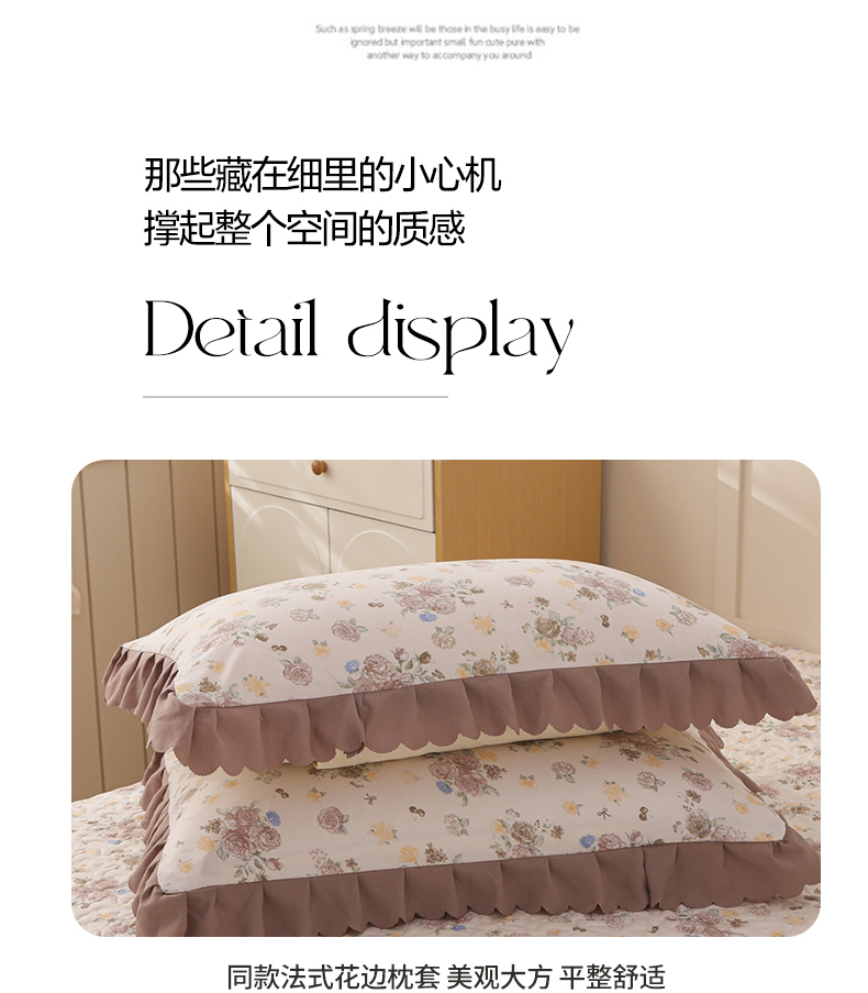 当前位置: 91家纺网 > 商品网购 > 床品套件 > 四件套 > 磨毛活性四件套 > 铠畅 2025新款法式花边云朵棉床盖款夏被四件套 花忆