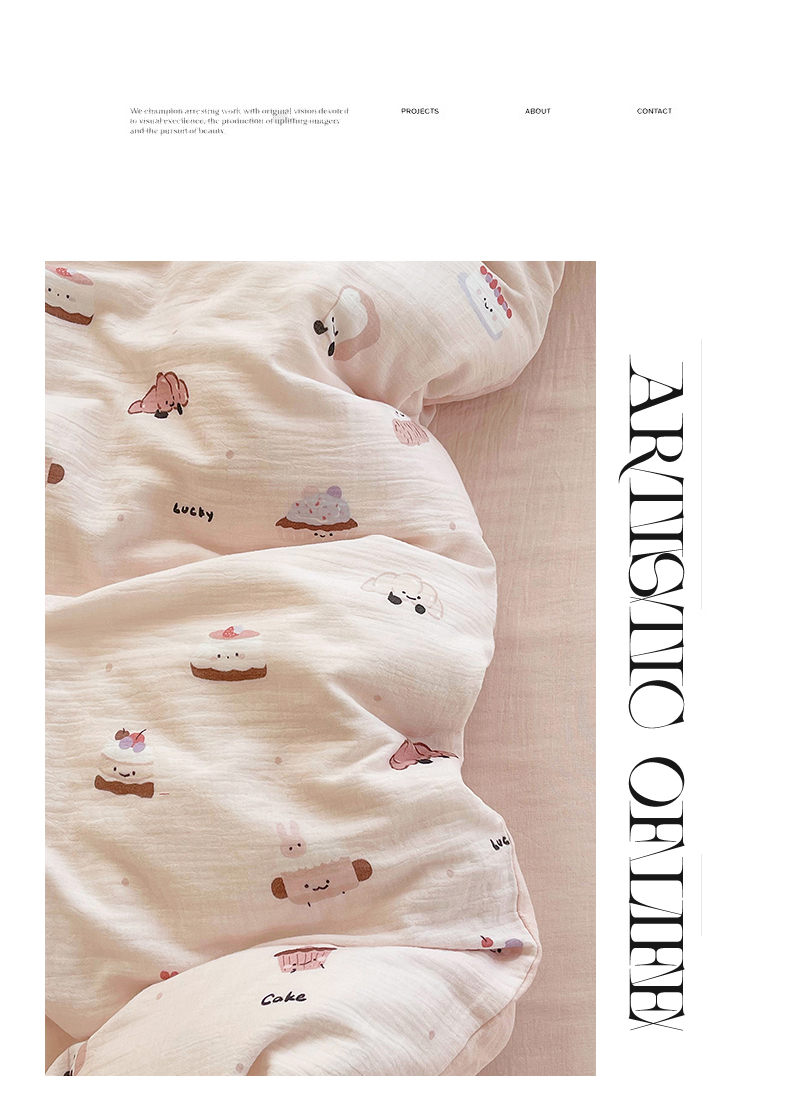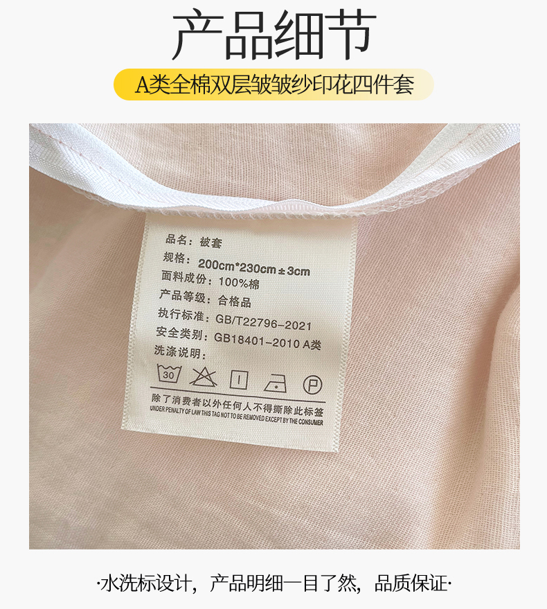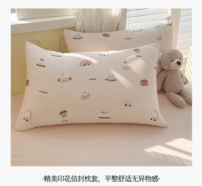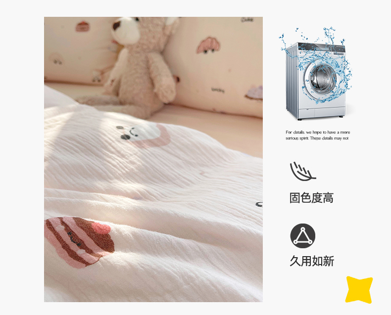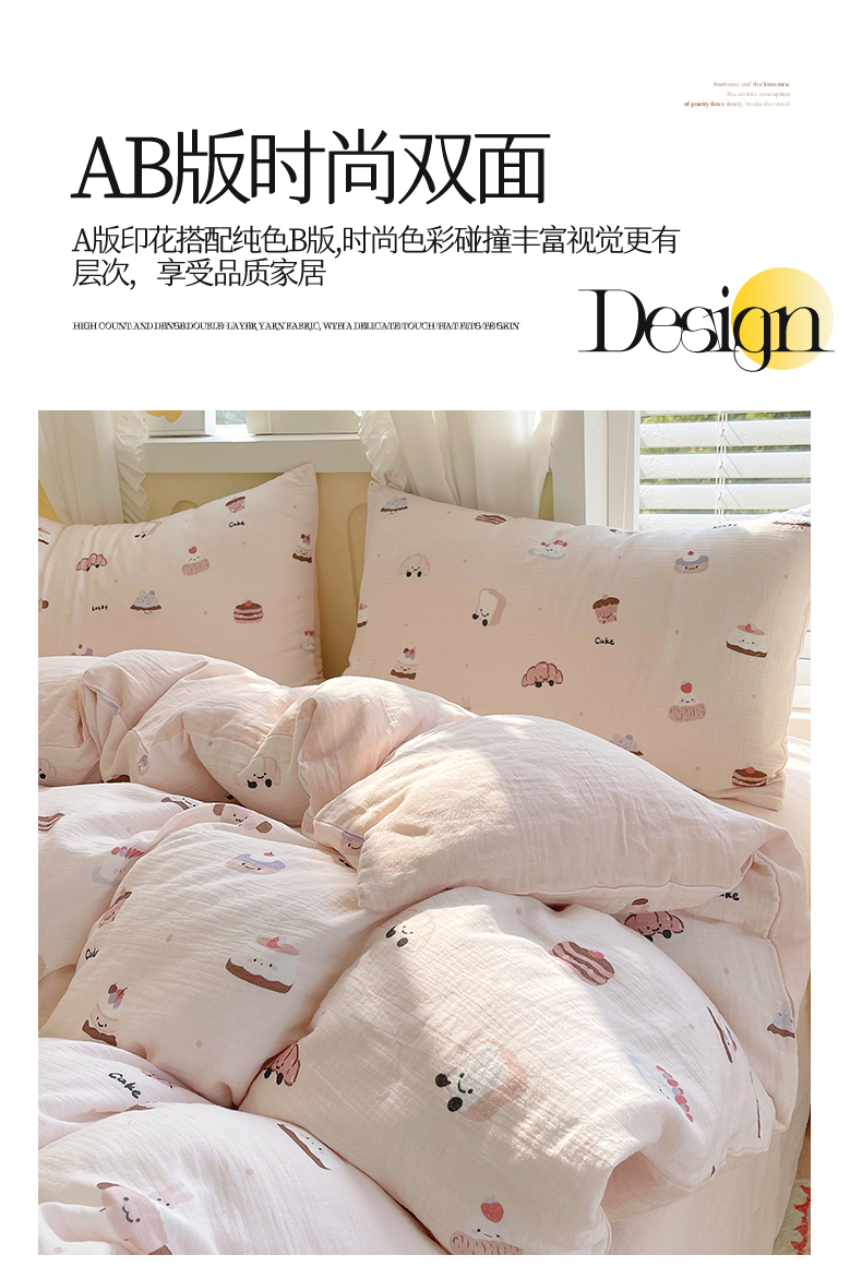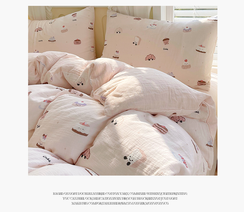 商品名称:凯磊2025新款.纯棉皱皱纱数码印花四件套 生日万岁 粉