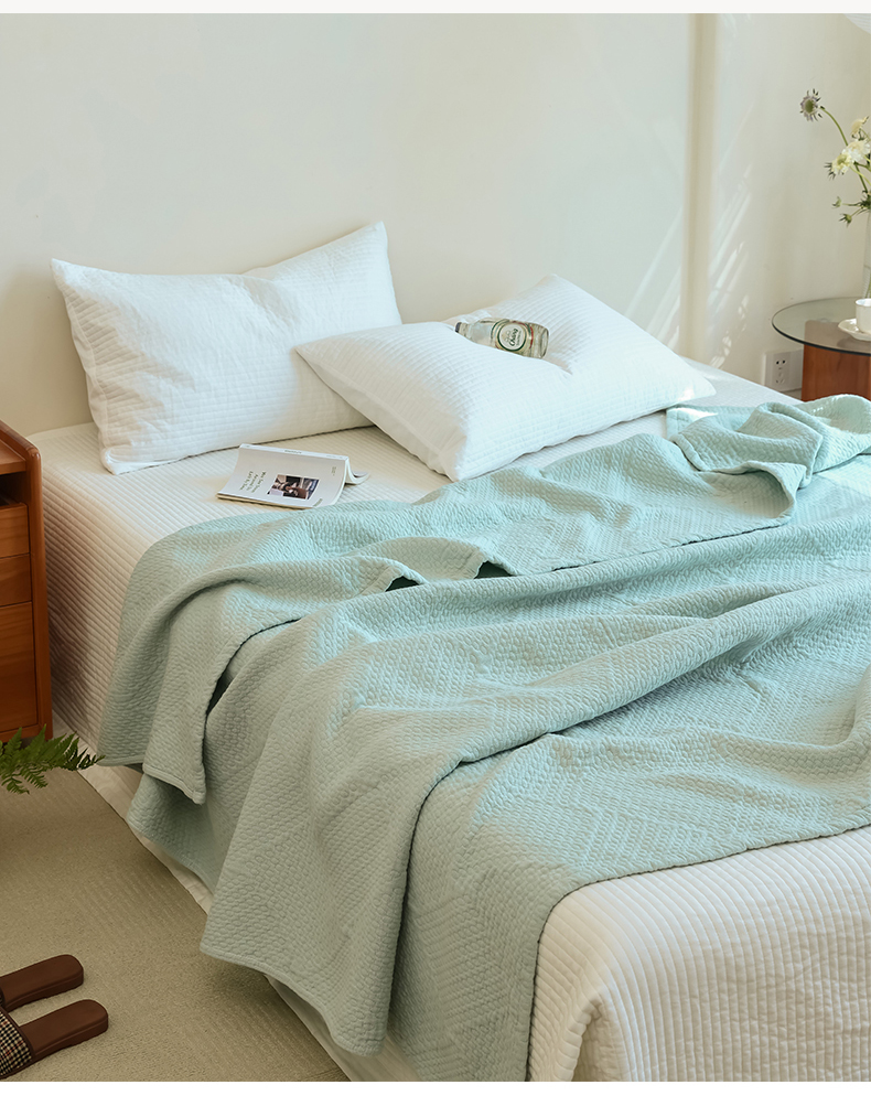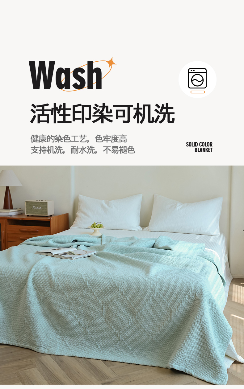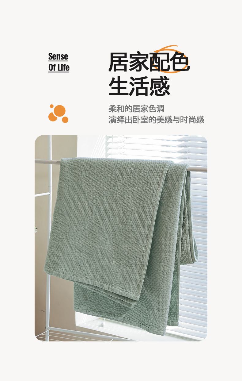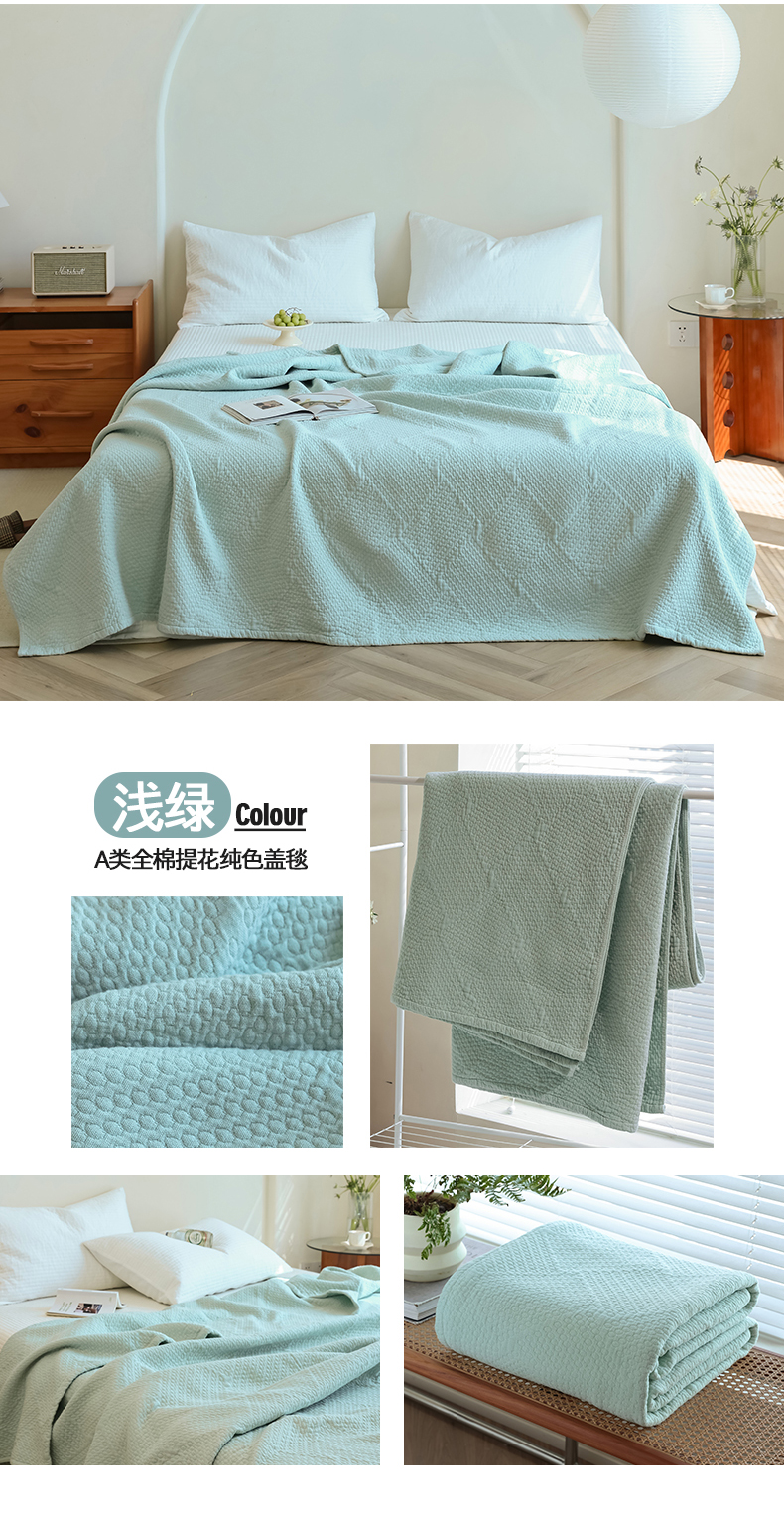 商品名称:雯雨家纺2025新款A类全棉加厚六层纱提花纯色盖毯 六层纱-浅绿