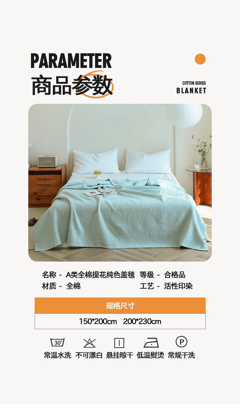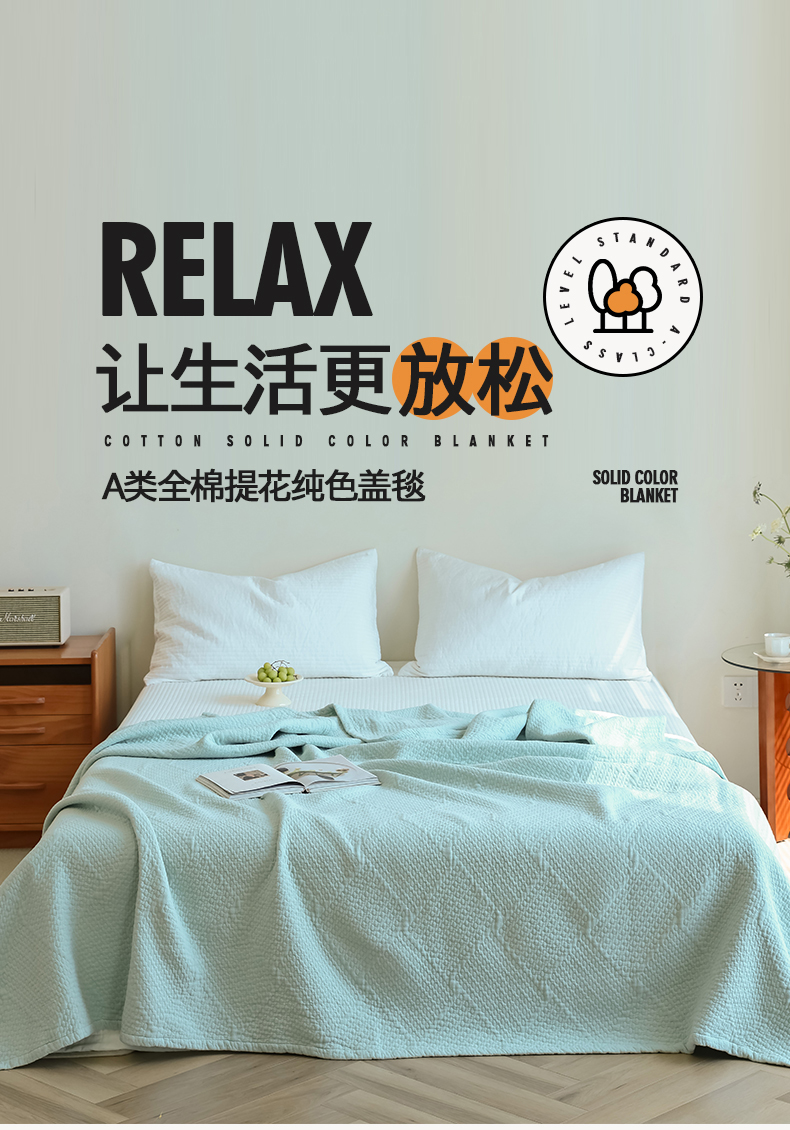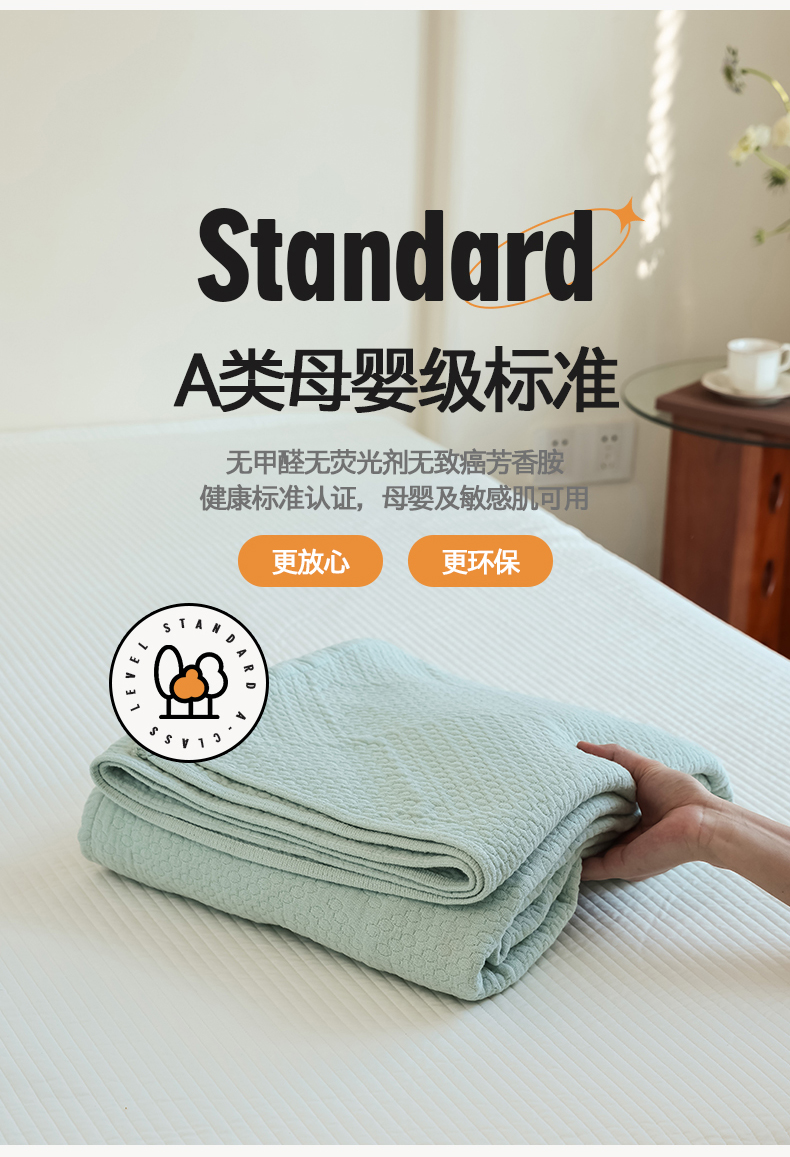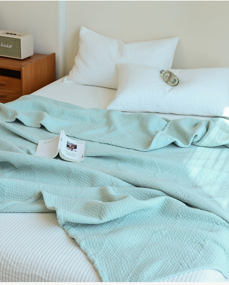 商品名称:雯雨家纺2025新款A类全棉加厚六层纱提花纯色盖毯 六层纱-浅绿