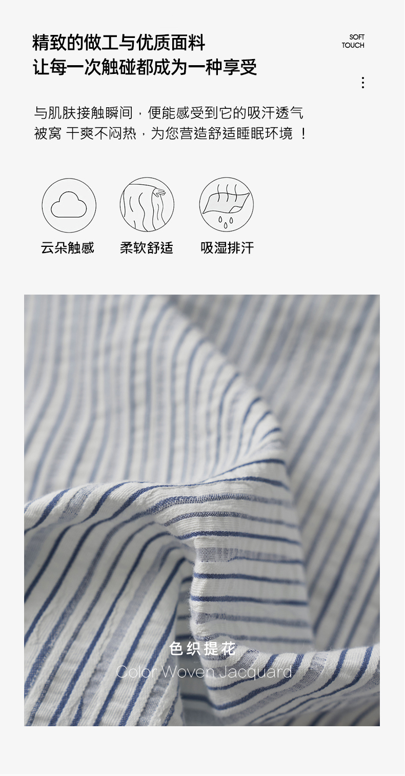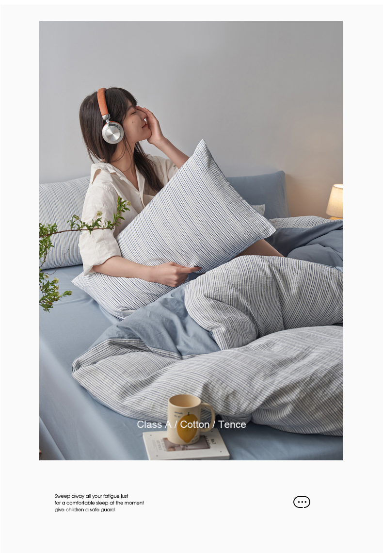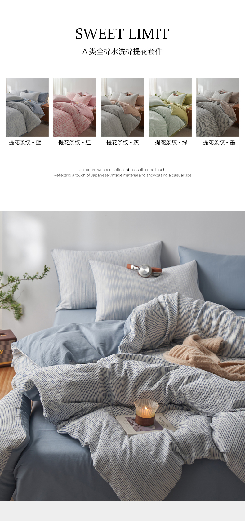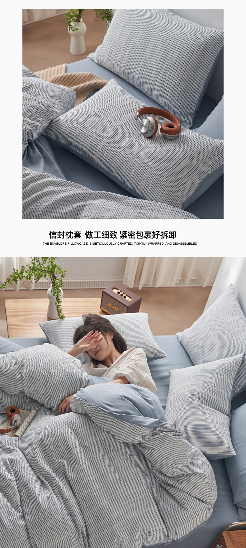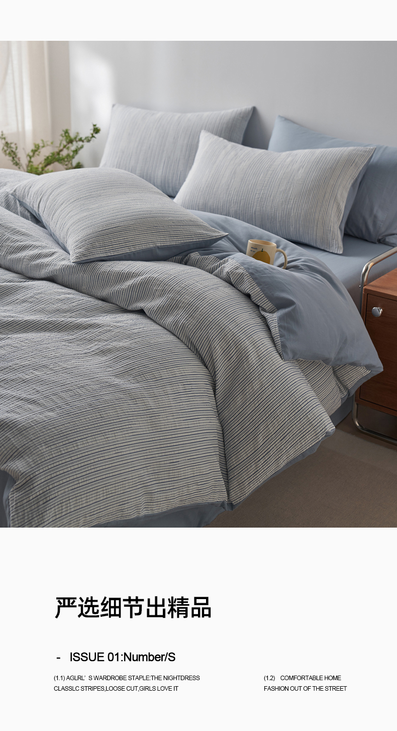商品名称:千朵森 2025新款全棉色织提花条纹四件套 提花条纹-蓝
