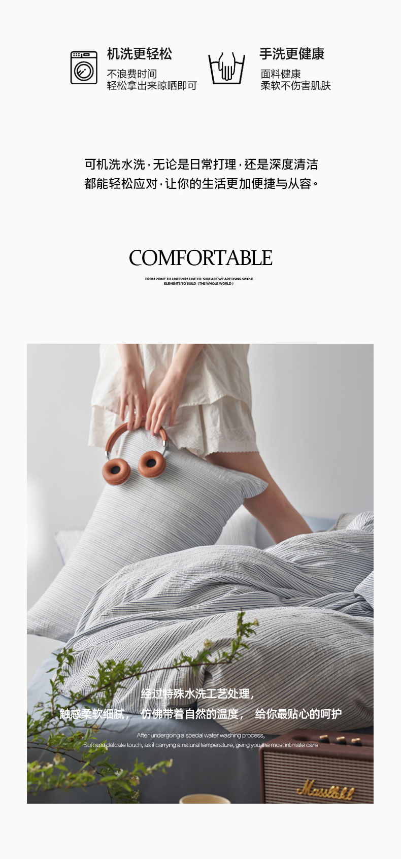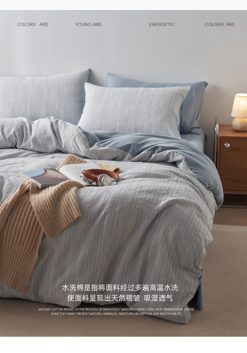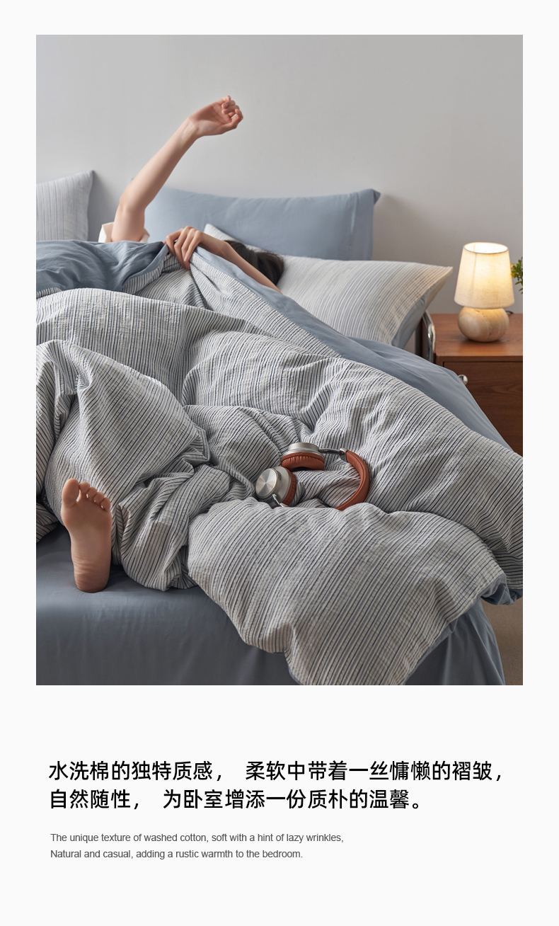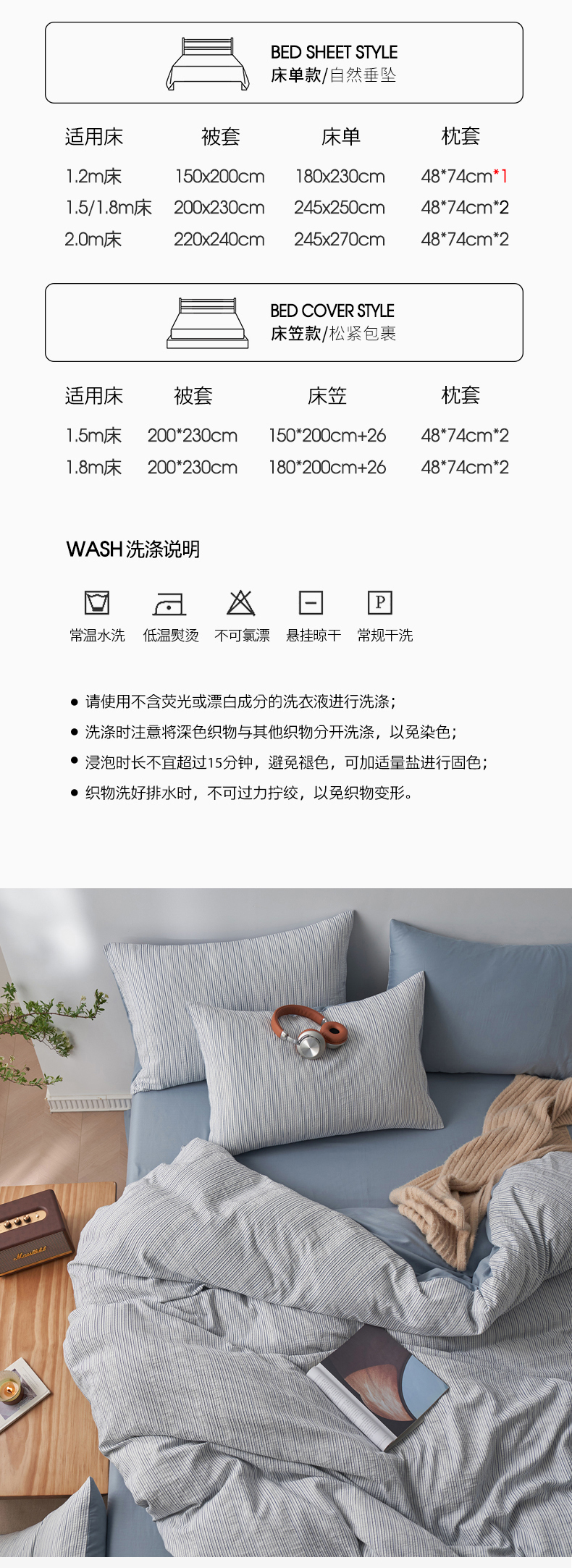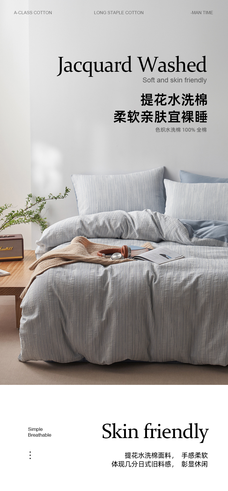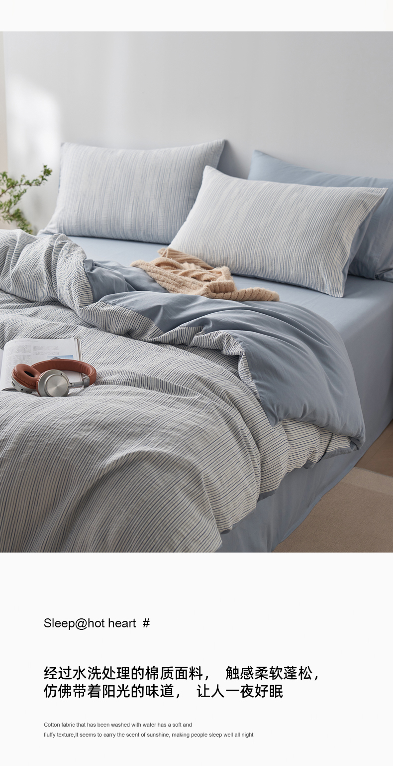 商品名称:千朵森 2025新款全棉色织提花条纹四件套 提花条纹-蓝