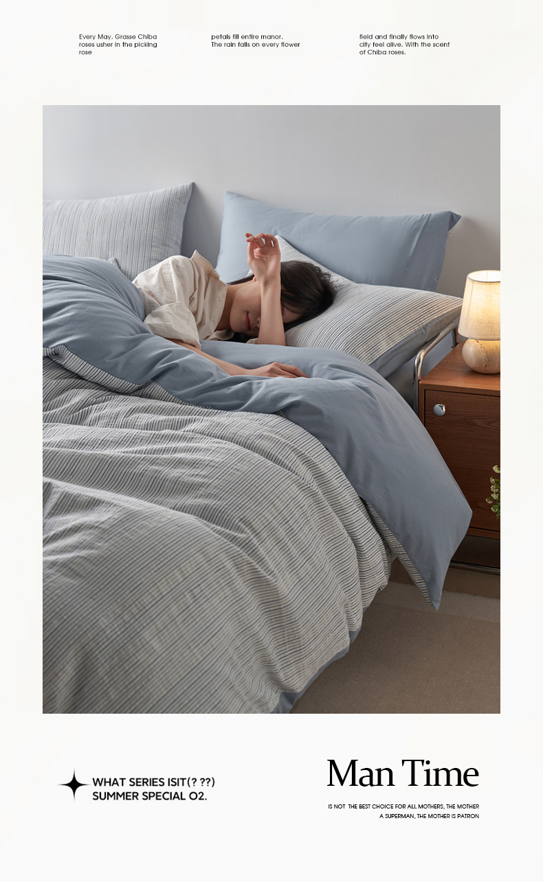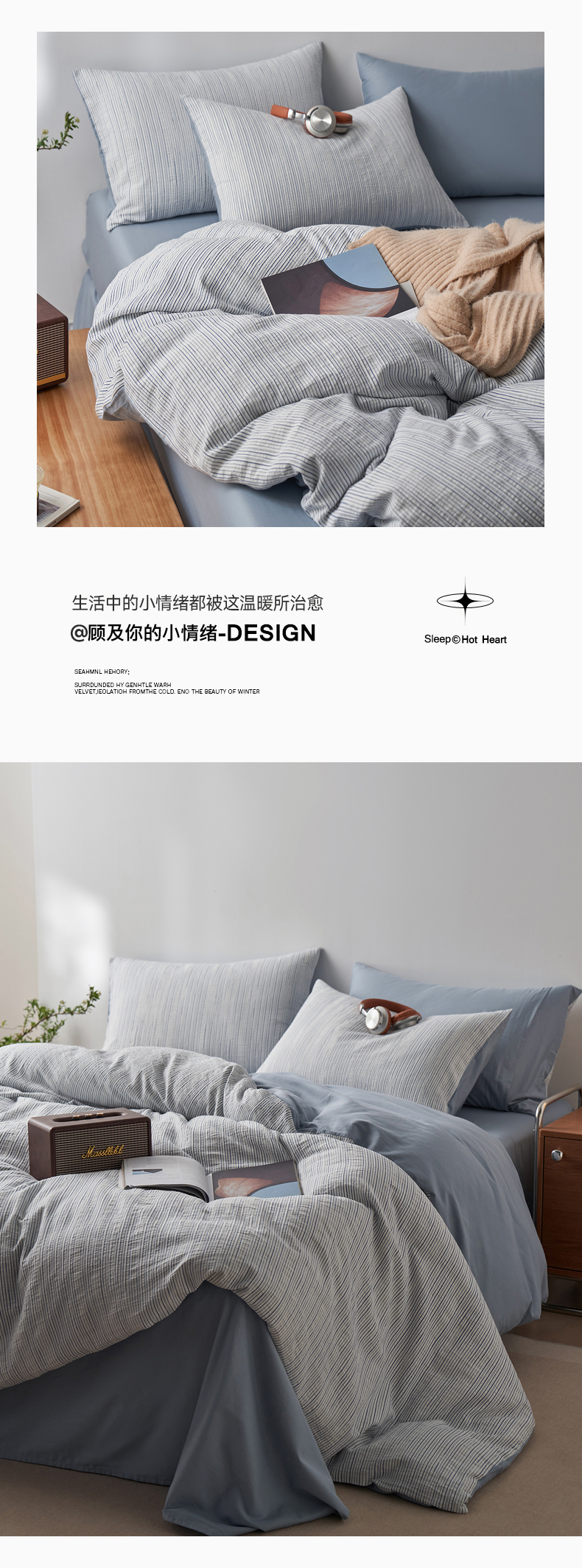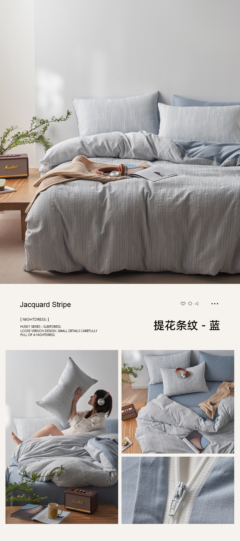 千朵森 2025新款全棉色织提花条纹四件套 提花条纹-蓝