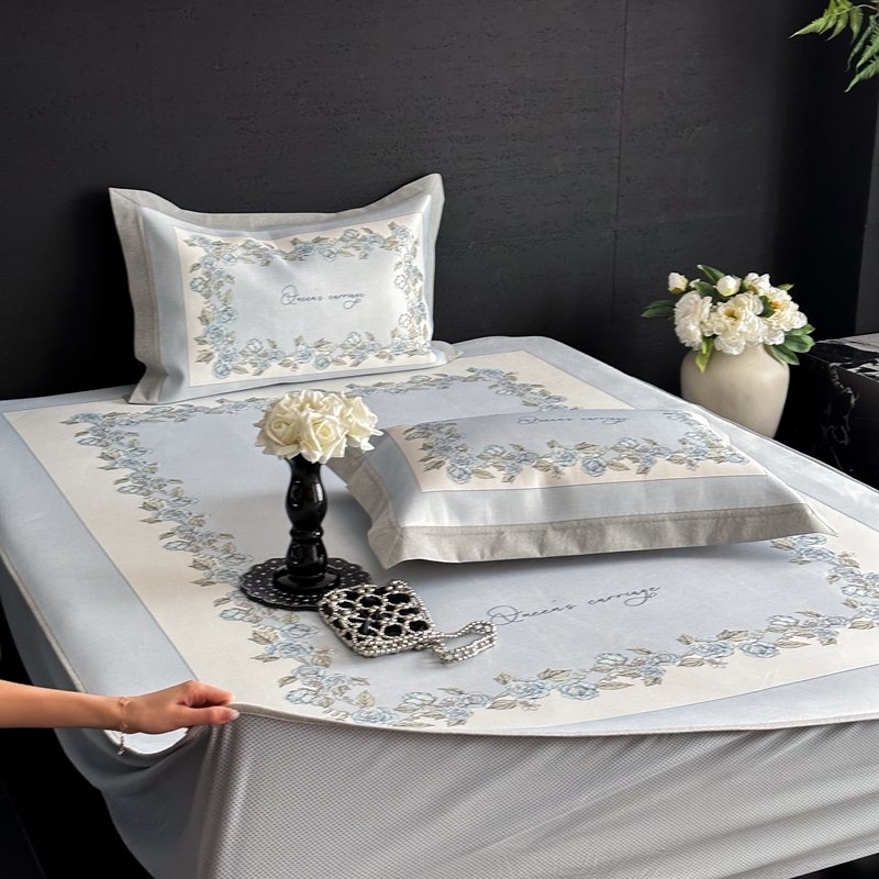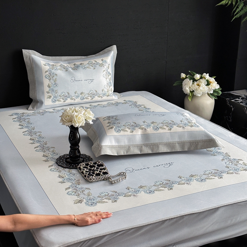 (总)三味舒屋 凉感抗菌防螨印花冰丝养生席_刺绣系列,奢路蓝 床席,奢路蓝 床笠,奢路米 床席,奢路米 床笠