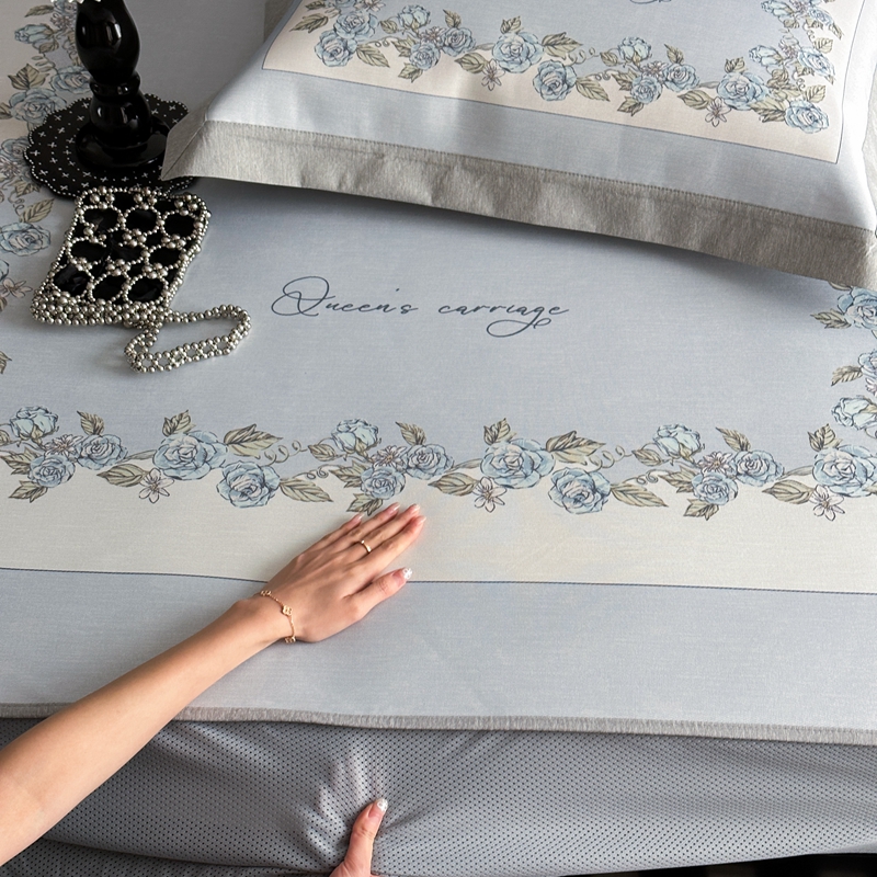 三味舒屋 2025新款凉感抗菌南法恬谧系列大版数码印花冰丝床席-床笠 花洛丽蓝-床笠款