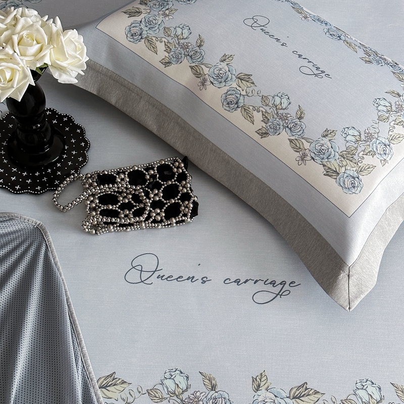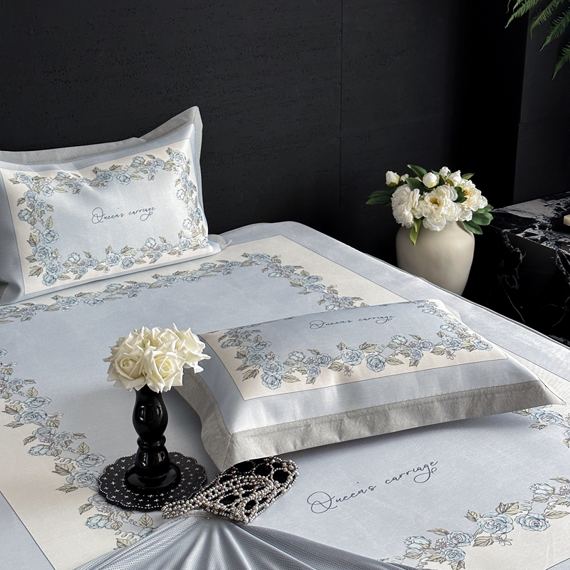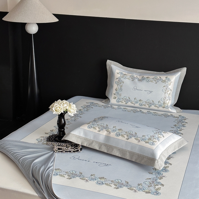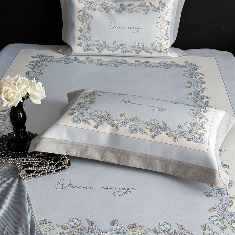 商品名称:三味舒屋 2025新款凉感抗菌南法恬谧系列大版数码印花冰丝床席-床笠 花洛丽蓝-床笠款