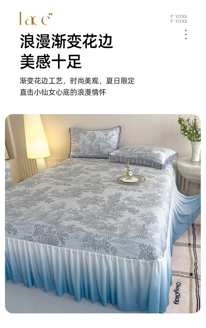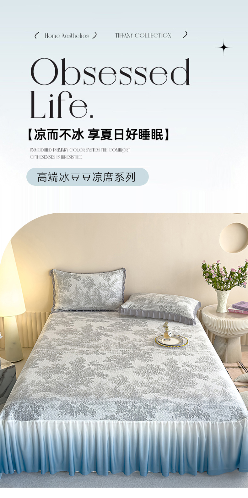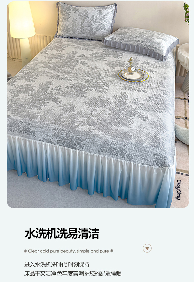 冬然家纺 2025新款冰豆豆席子凉席床裙款 梦幻森林-灰