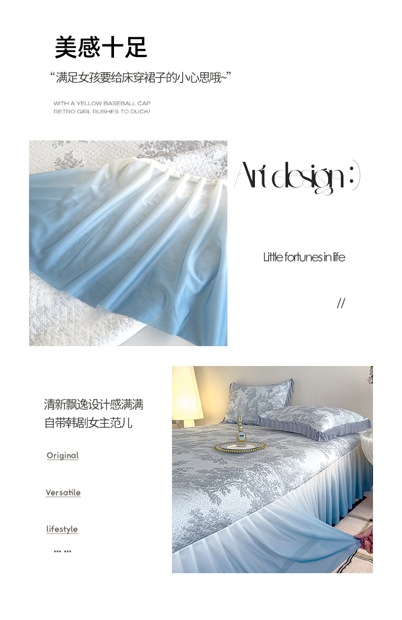冬然 2022新款床盖牛奶绒夹棉床裙四件套单床裙单被套爱心格,爱心格