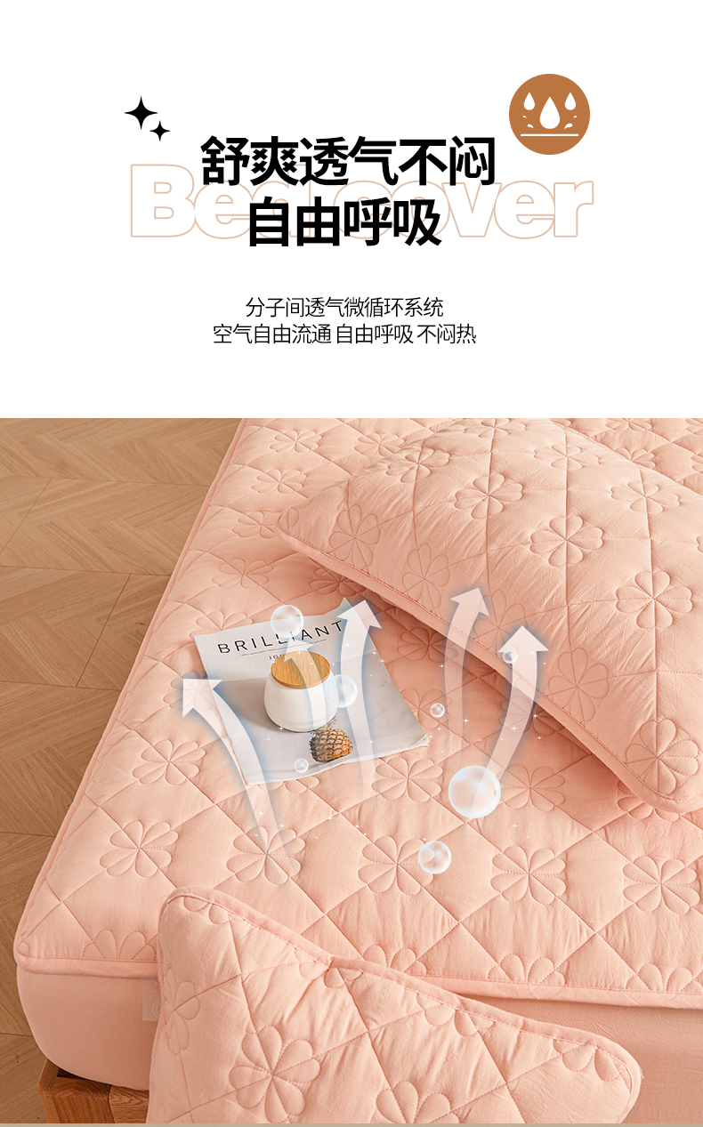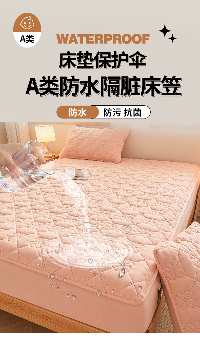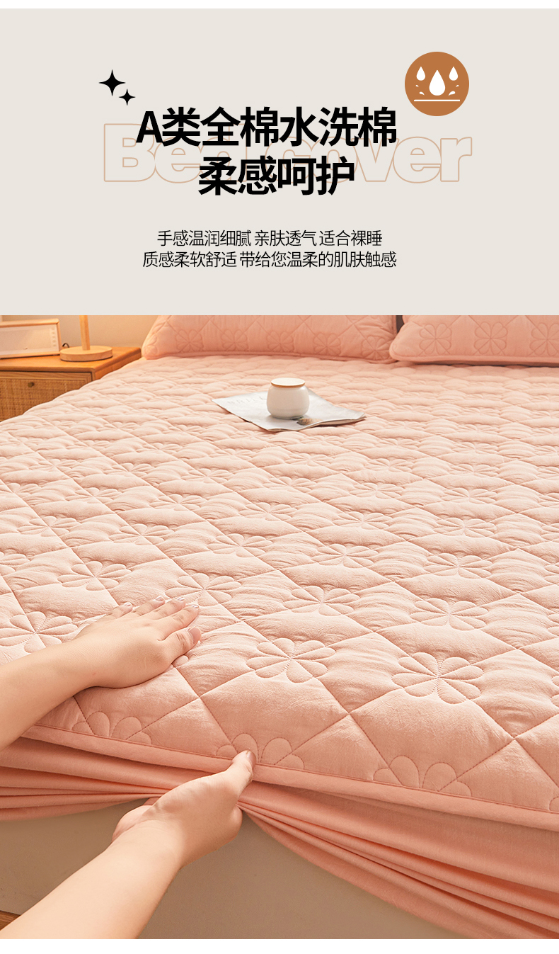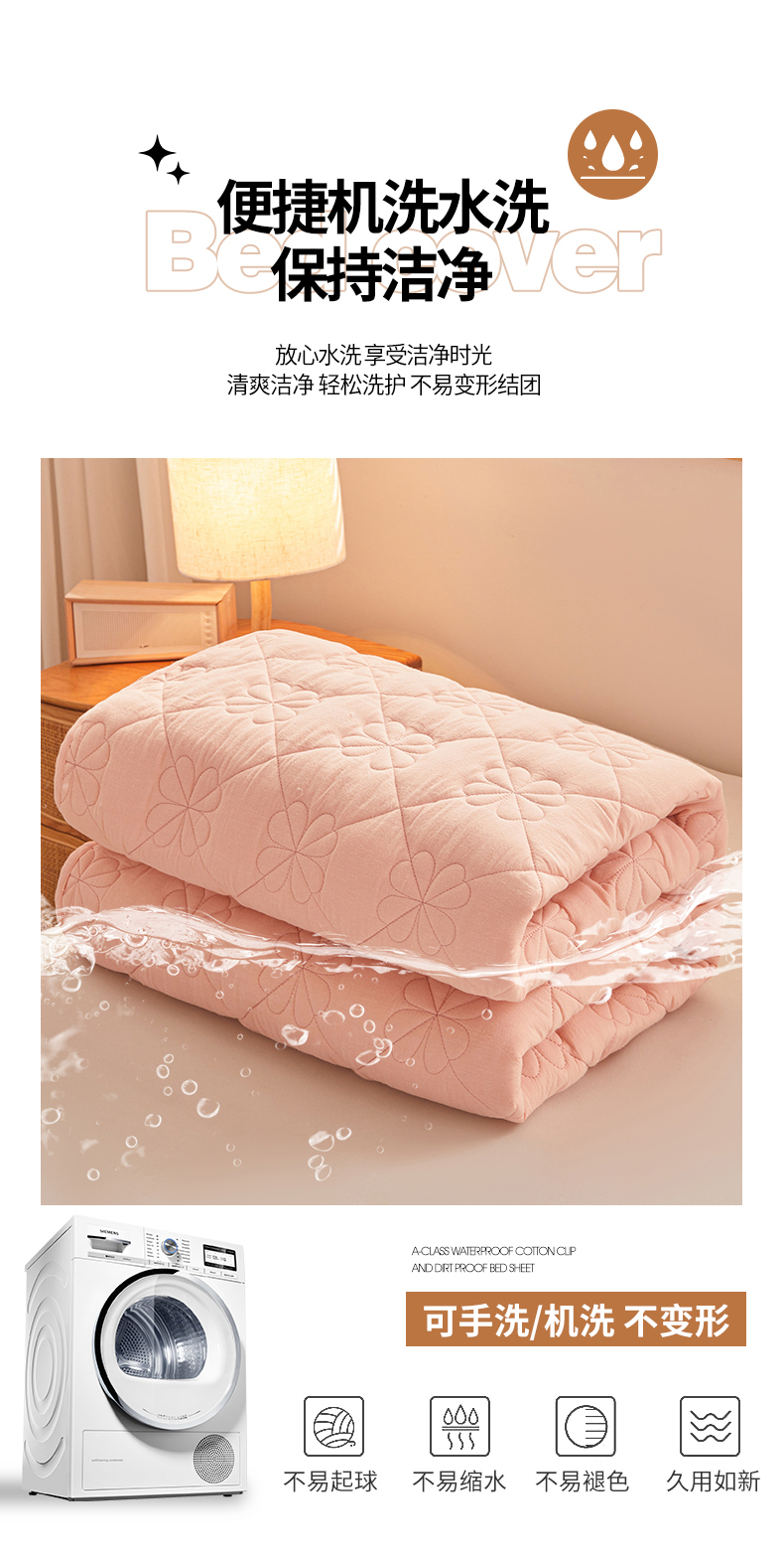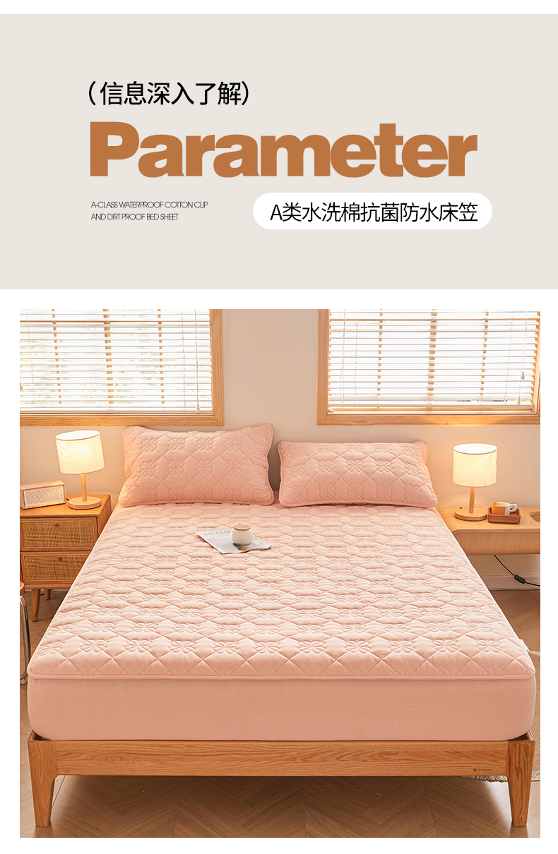 • 91家纺网 家纺一手货源 找家纺 3C 2025新款A类全棉四叶草防水隔脏床笠 防水 浅语-香妃粉