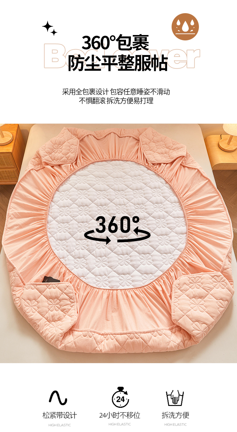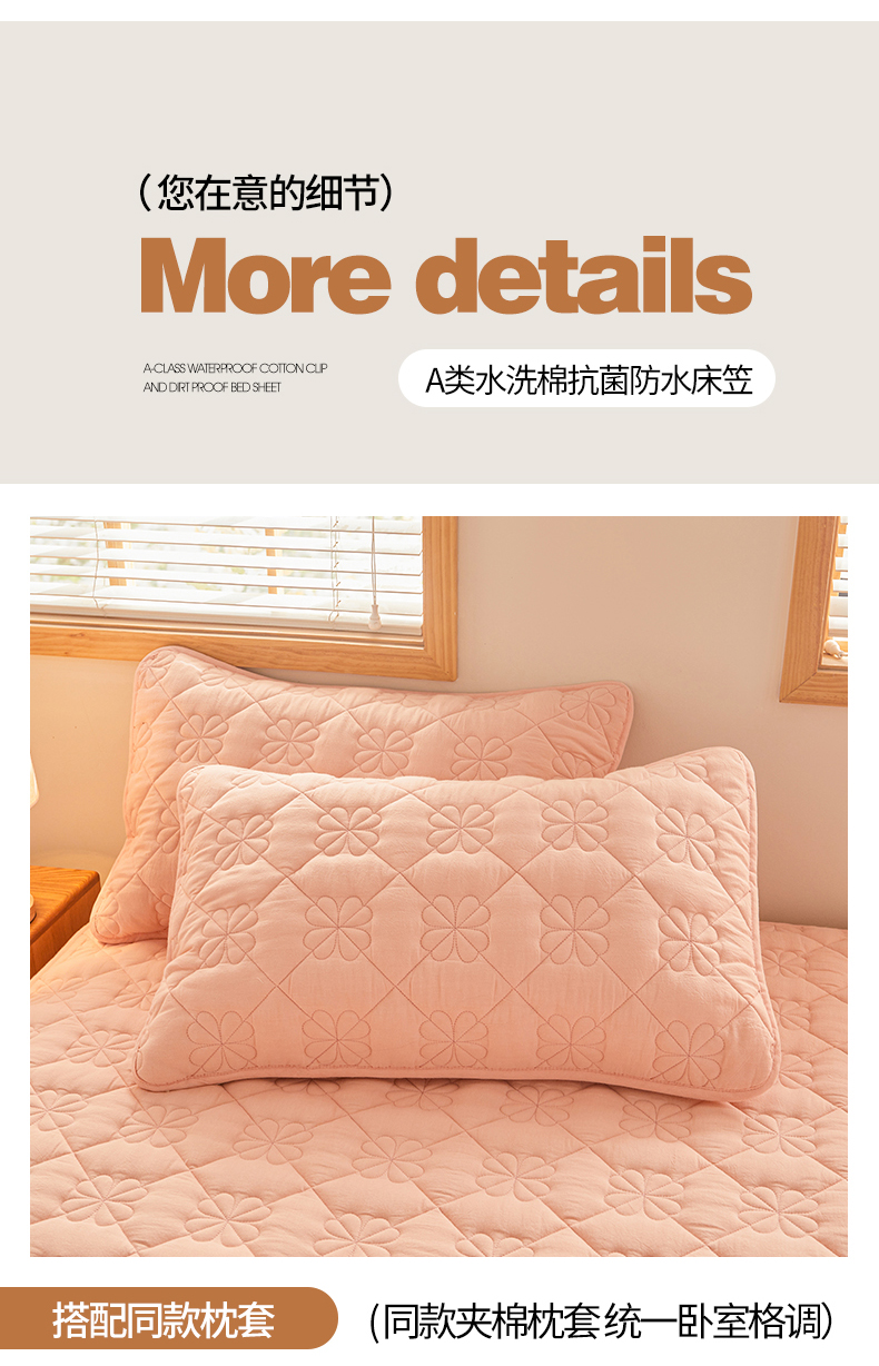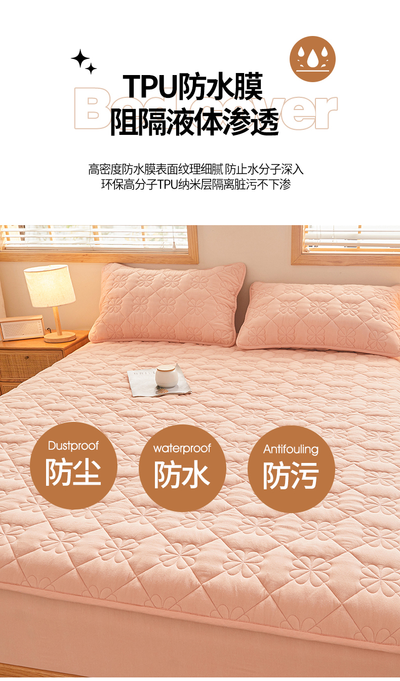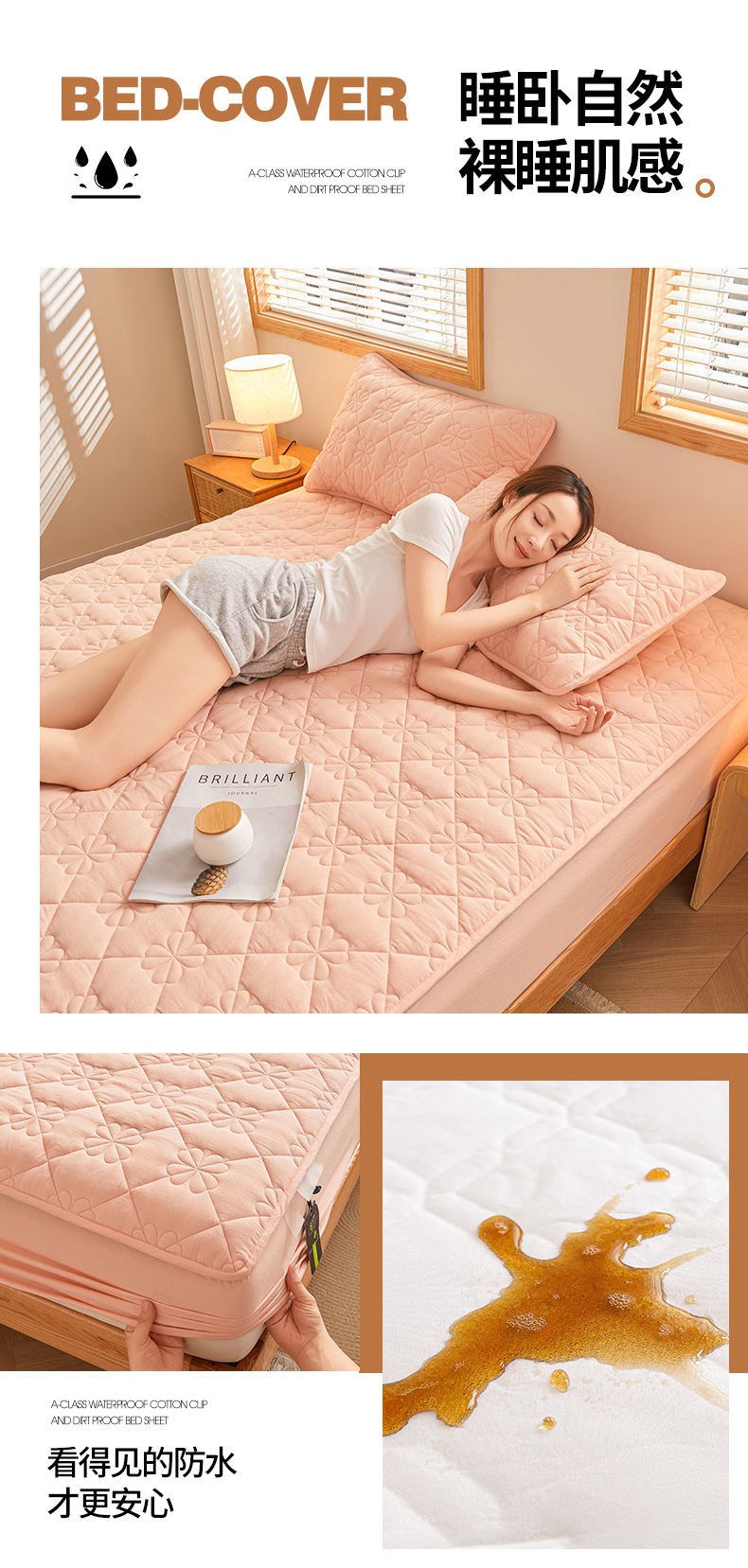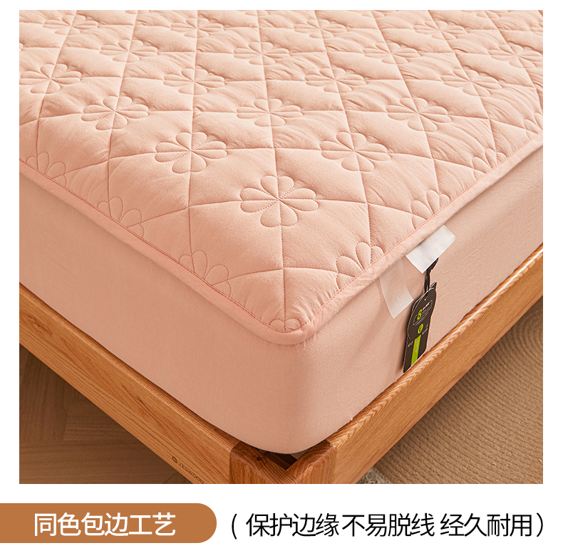 3C 2025新款A类全棉四叶草防水隔脏床笠 防水 浅语-香妃粉