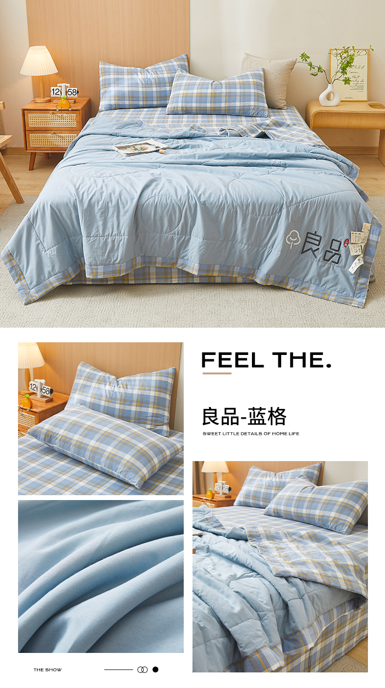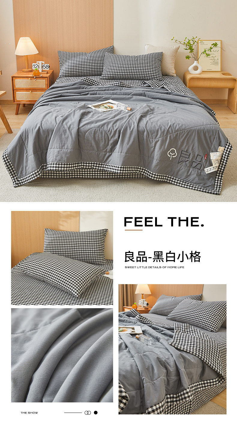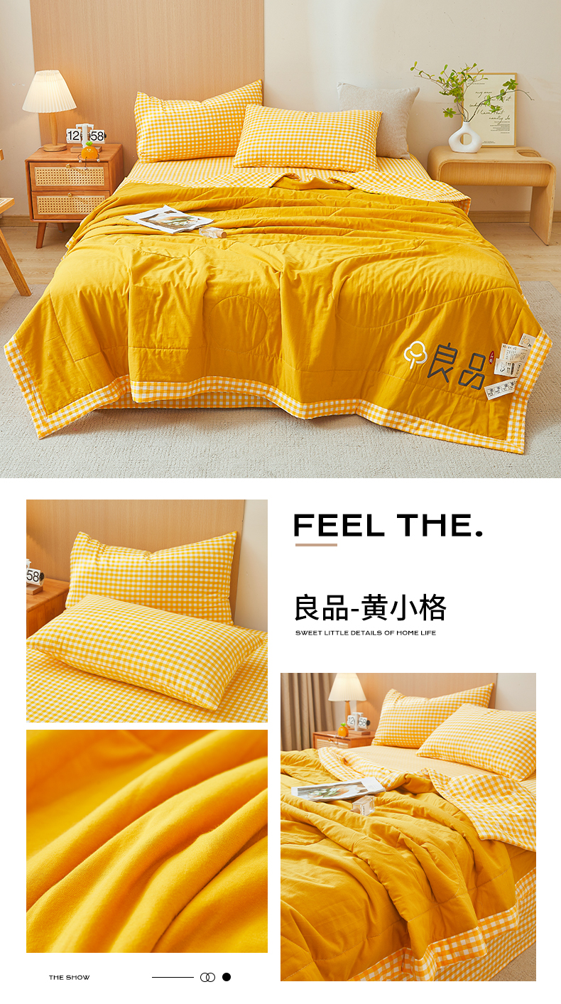 商品名称:(总)悦织语 2025春夏新款全棉纯棉水洗色织新疆棉100%棉花被纯色刺绣款无印风夏被四件套