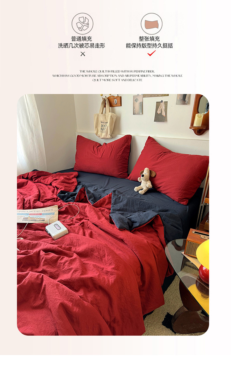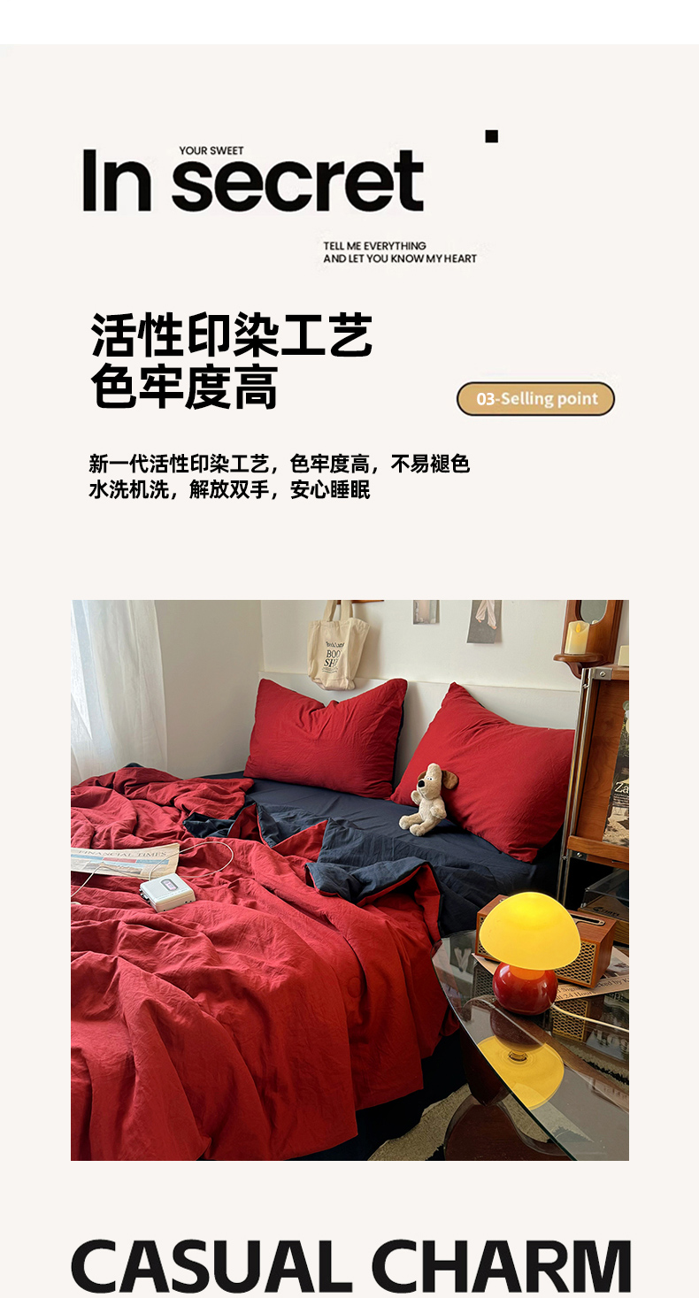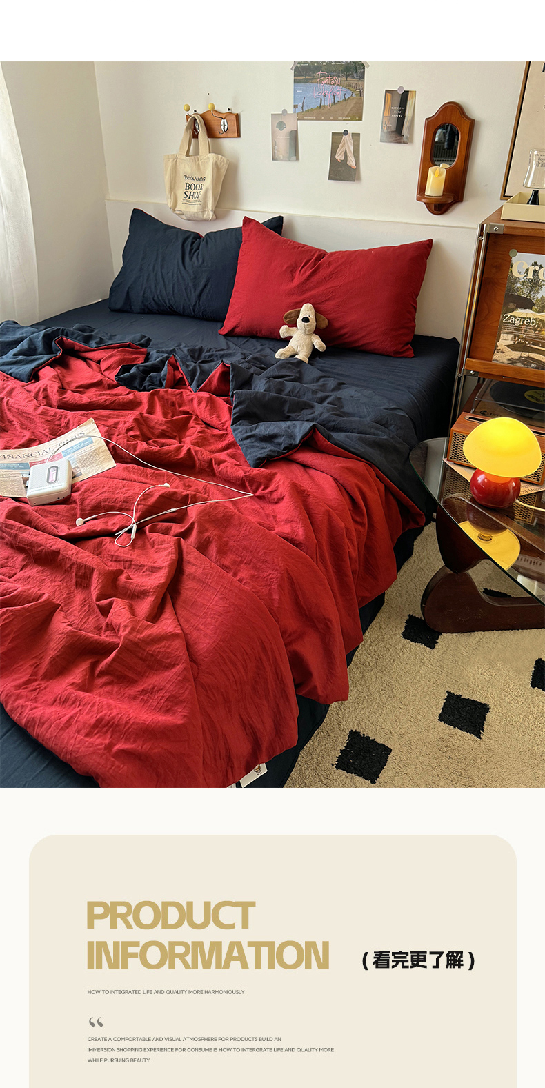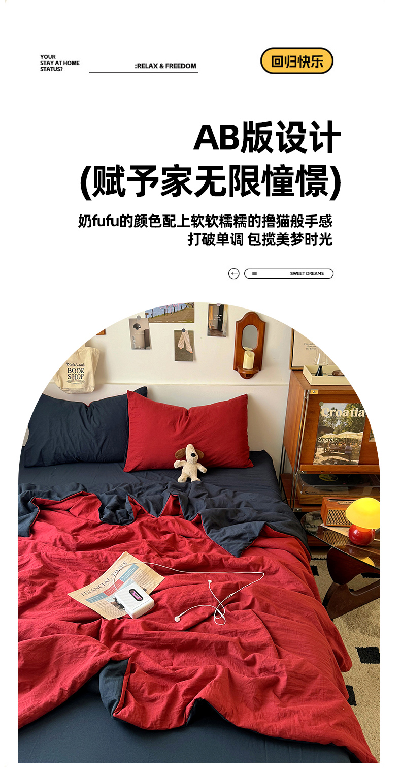 (总)耀达家居 2025新款纯色A类水洗棉双拼四件套,安可拉红藏蓝,芭蕾灰粉,海盐蓝灰,经典灰,奶茶灰,奶茶可可,燕麦可可