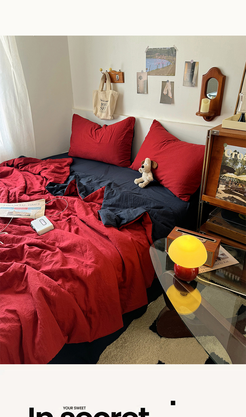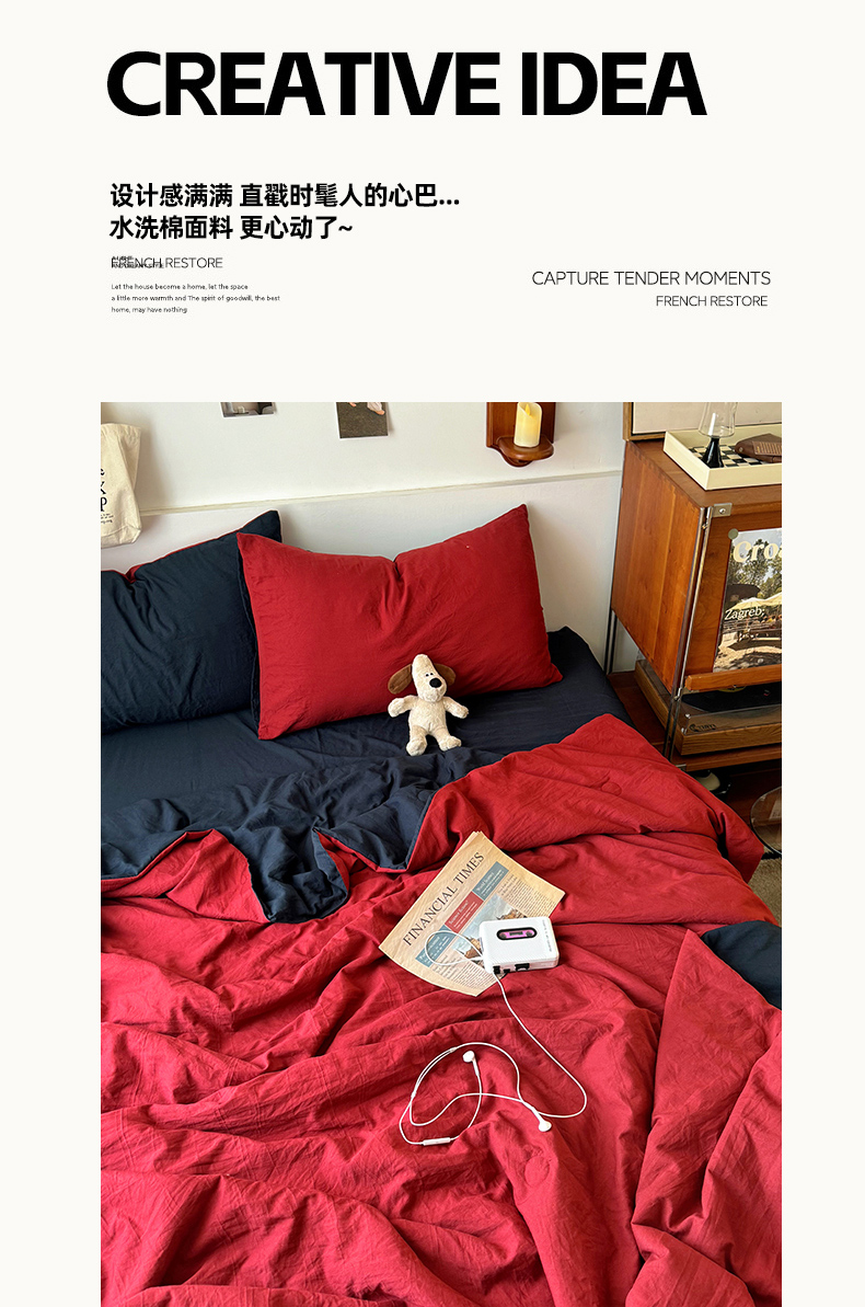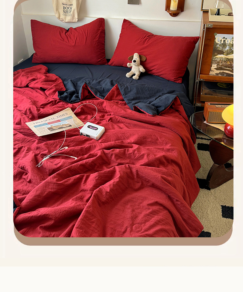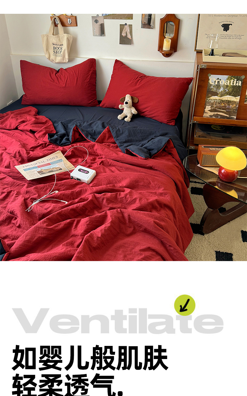 (总)耀达家居 2025新款纯色A类水洗棉双拼四件套,安可拉红藏蓝,芭蕾灰粉,海盐蓝灰,经典灰,奶茶灰,奶茶可可,燕麦可可