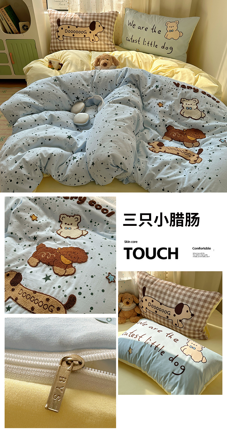 当前位置: 91家纺网 > 商品网购 > 床品套件 > 四件套 > 毛巾绣四件套 > 贝扬思家纺 2025新款萌萌哒卡通毛巾绣四件套 三只小腊肠