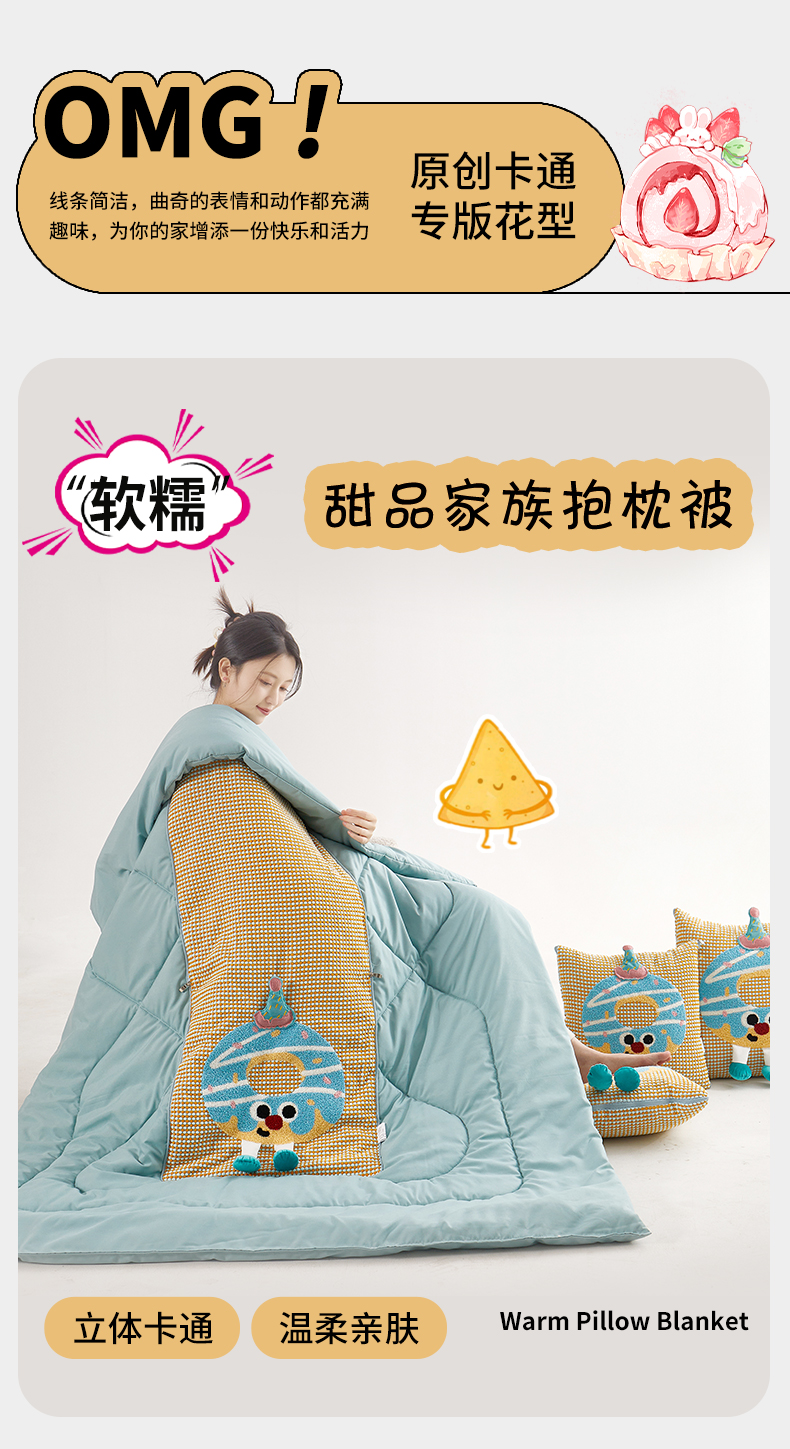 商品名称:古本家居 2025新款四季款甜品家族抱枕被 甜甜圈