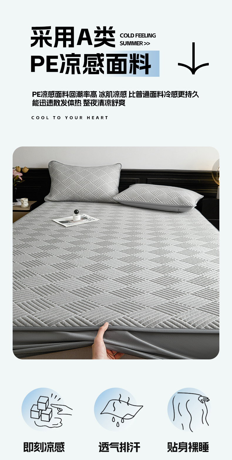 欧邦 2025新款外贸热销加厚菱形Pe中分子凉感豆豆软席 菱形-绿 床笠款