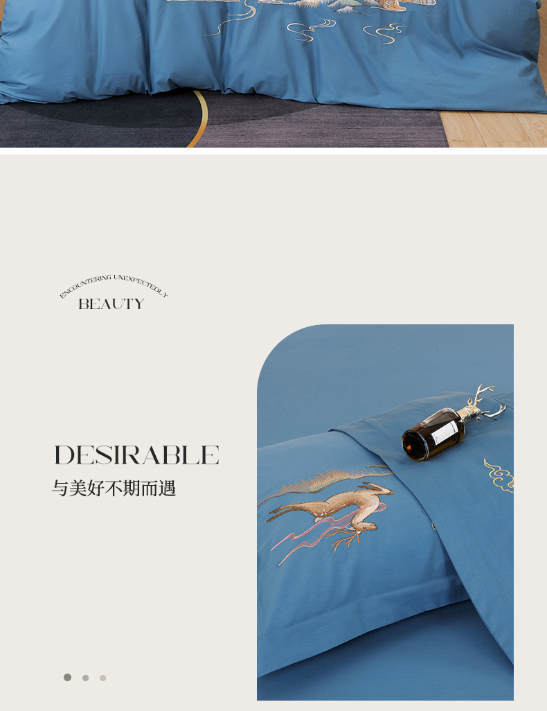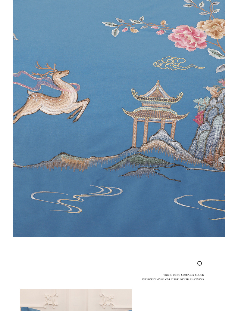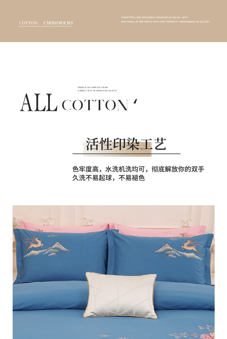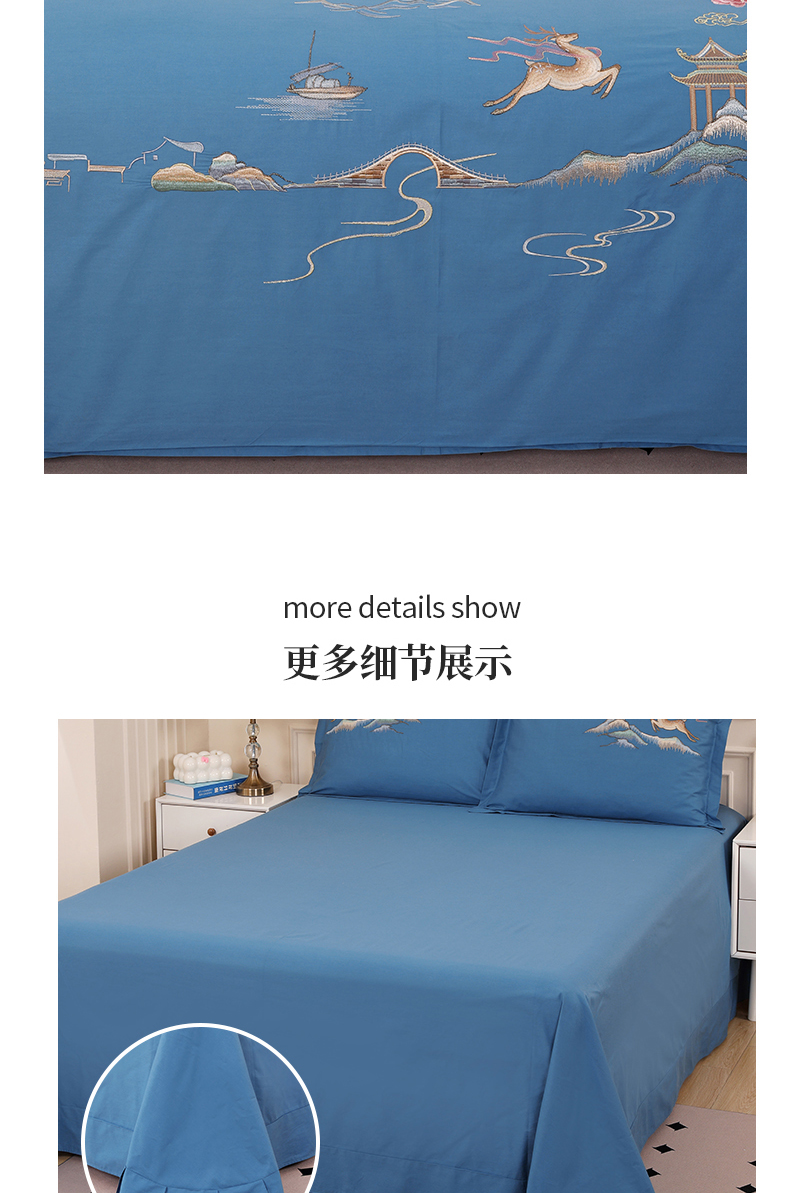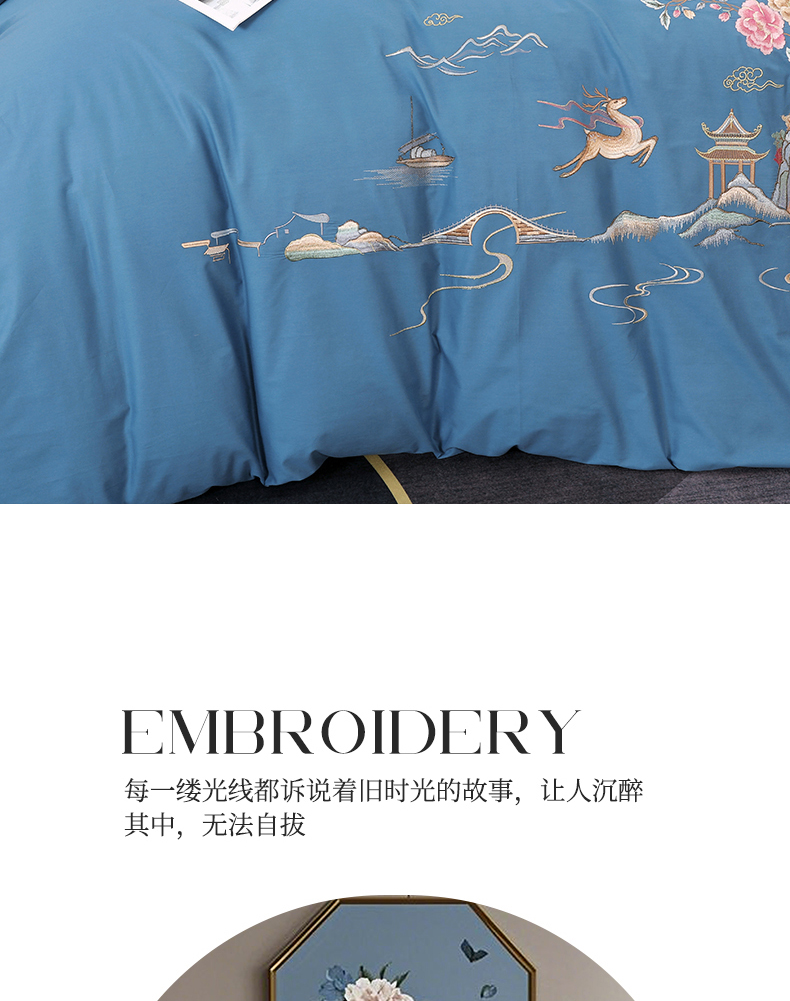 商品名称:浩情国际婚庆供货中心 2026新款100支全棉高端刺绣四件套一鹿常红系列 一鹿常红-蓝灰