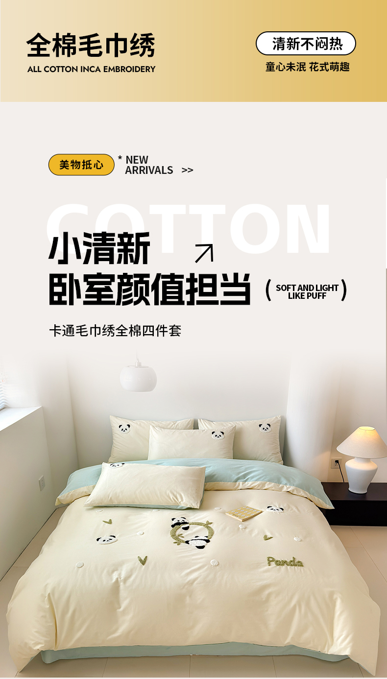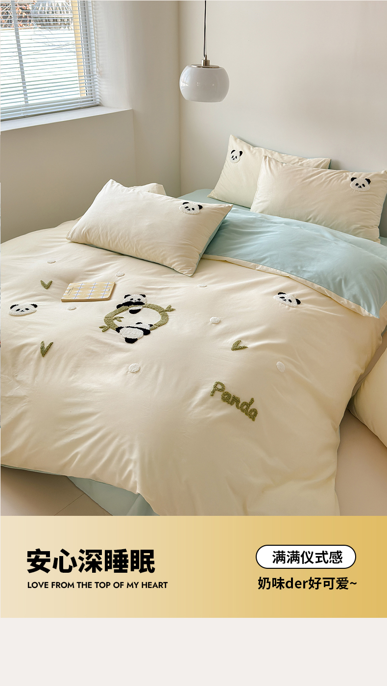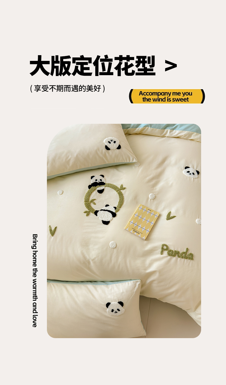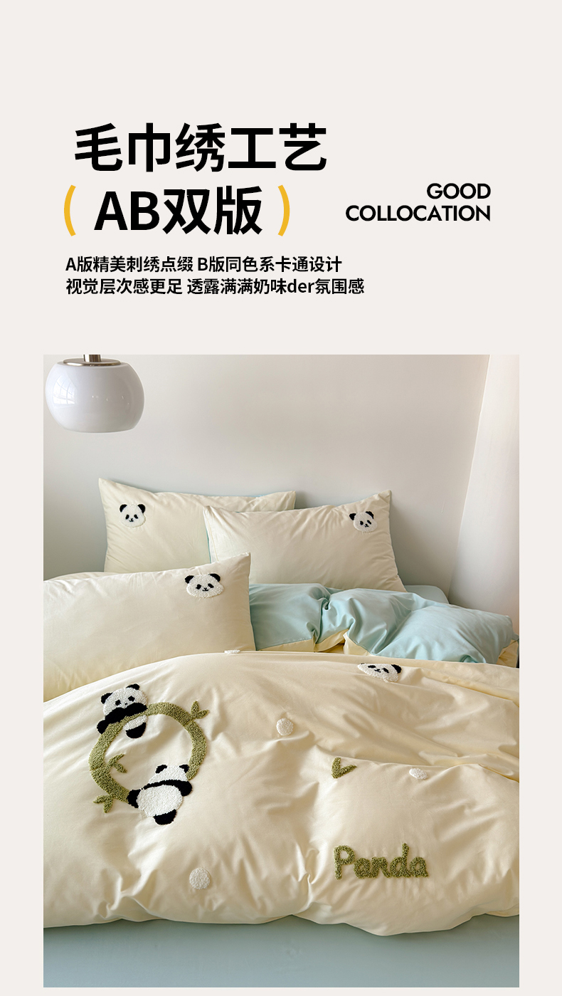 当前位置: 91家纺网 > 商品网购 > 床品套件 > 四件套 > 全棉普通四件套 > 锦觅家纺 2025新款卡通小清新毛巾绣全棉纯棉四件套(大版定位花型) 可爱熊猫