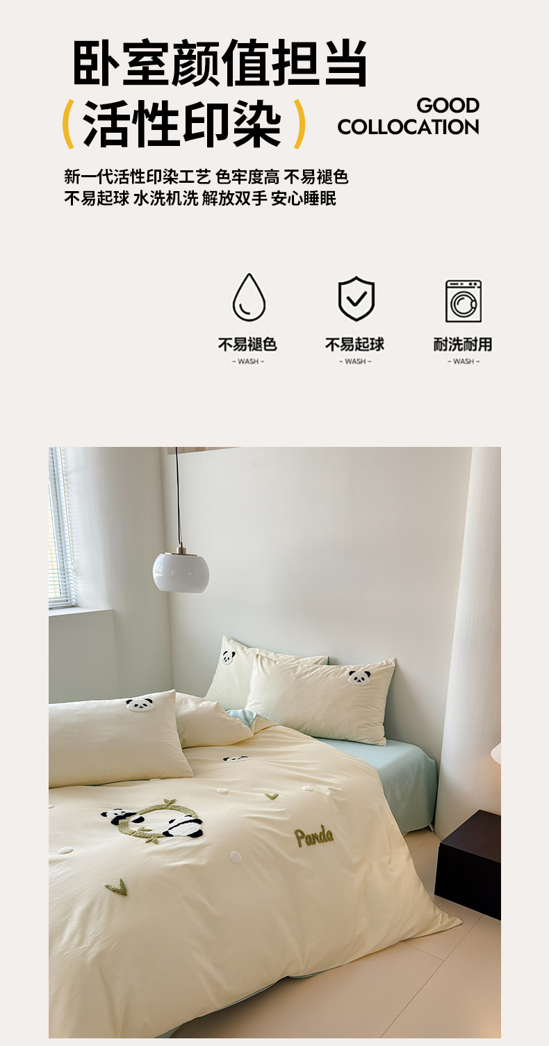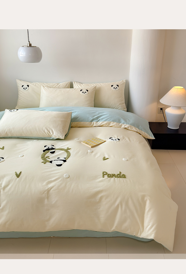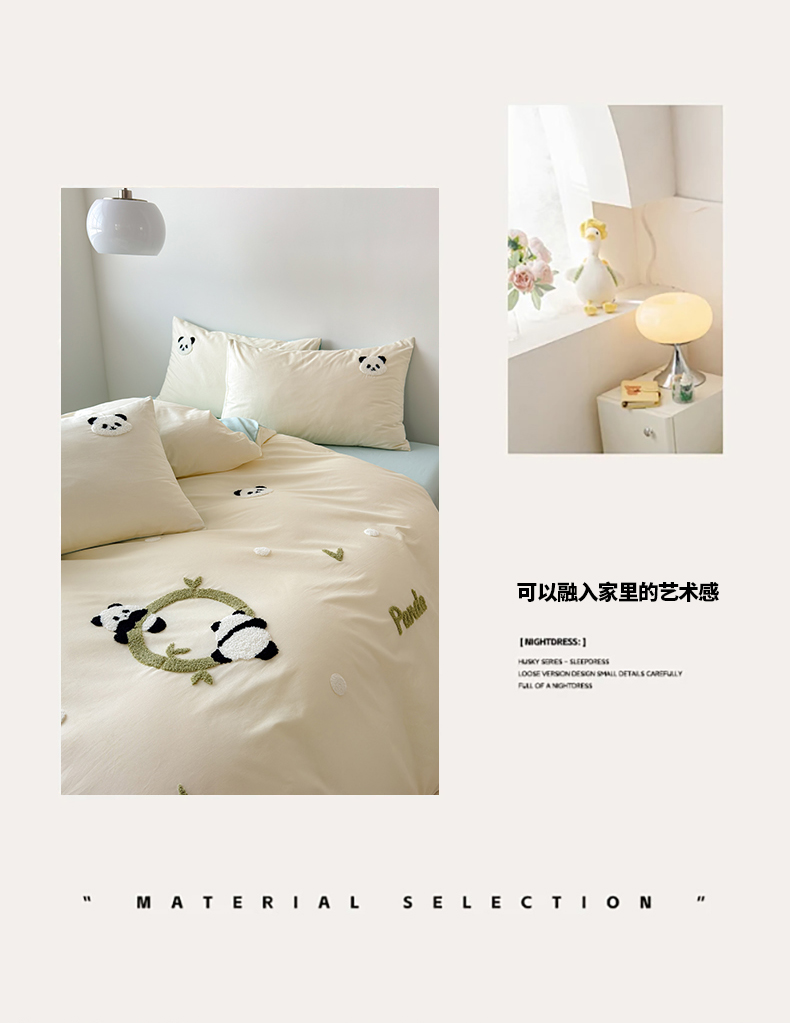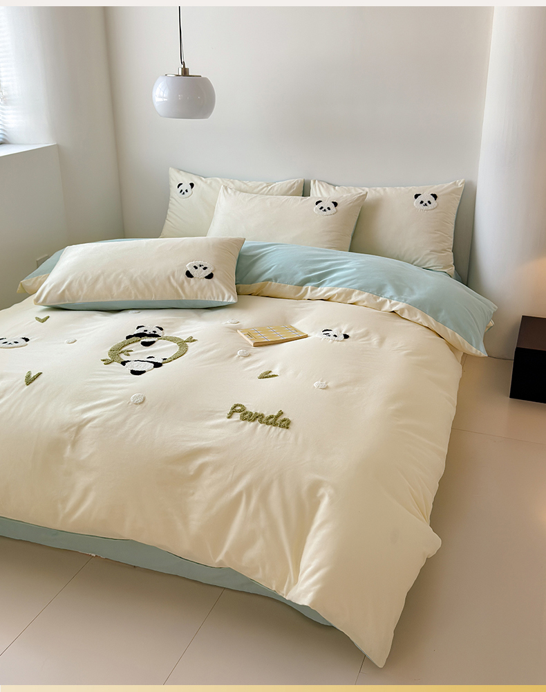 当前位置: 91家纺网 > 商品网购 > 床品套件 > 四件套 > 全棉普通四件套 > 锦觅家纺 2025新款卡通小清新毛巾绣全棉纯棉四件套(大版定位花型) 可爱熊猫