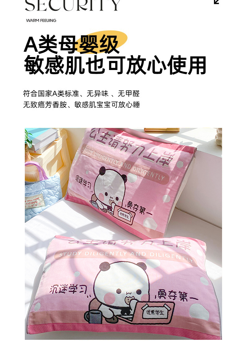 美宜家 2025新款40*60儿童纯棉A类纱布枕巾乳胶专用高档枕巾 优秀 一只