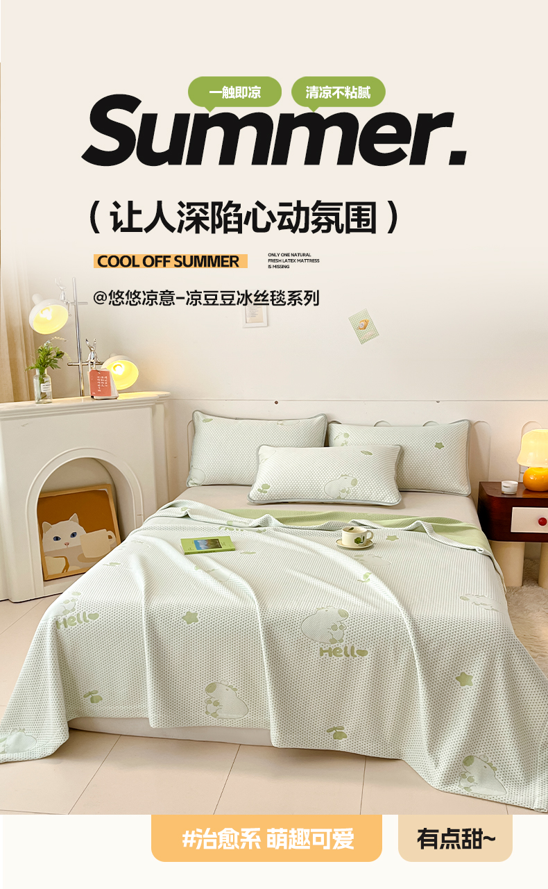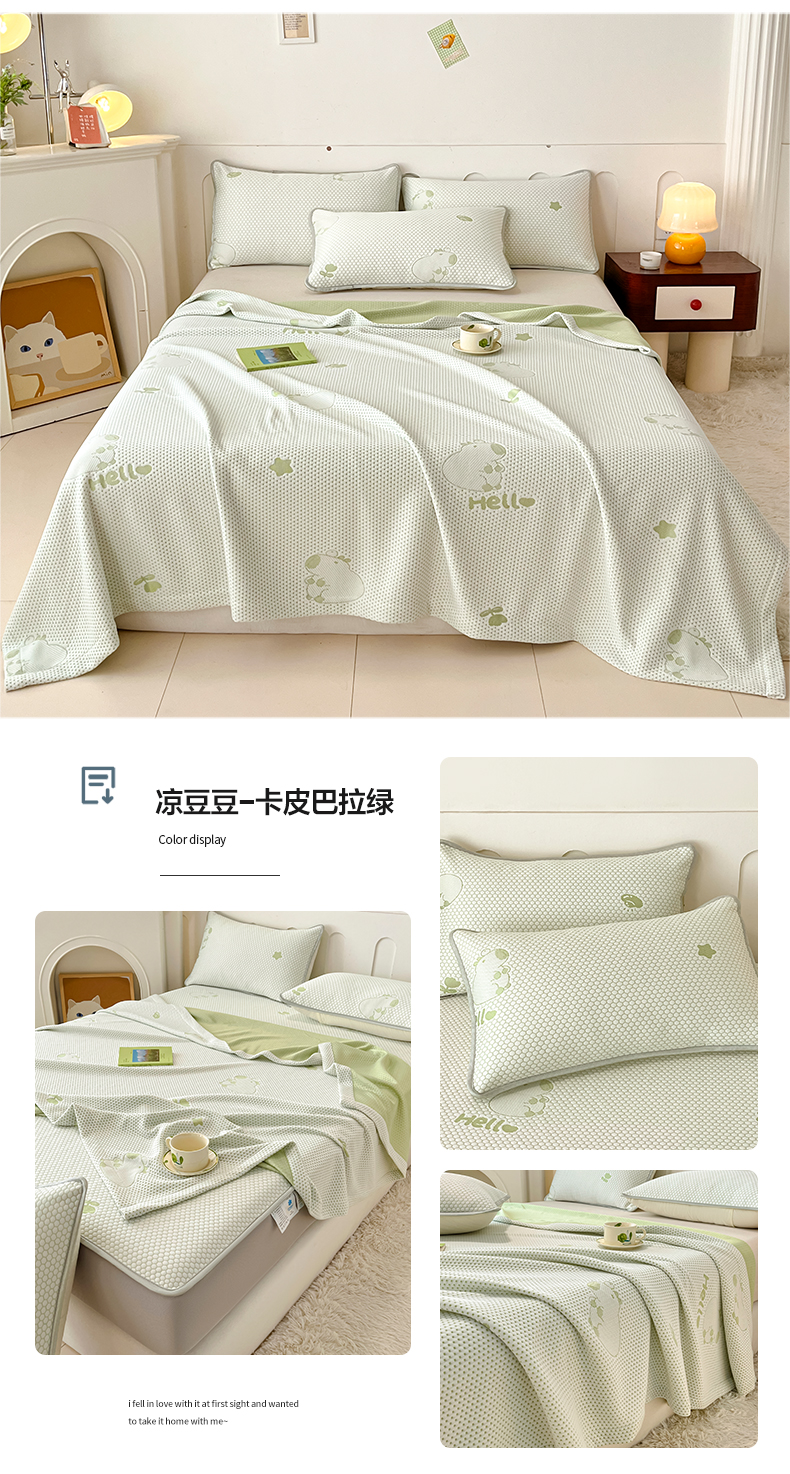 商品名称:卡伦家纺2025凉豆豆冰丝毯系列 卡皮巴拉——绿