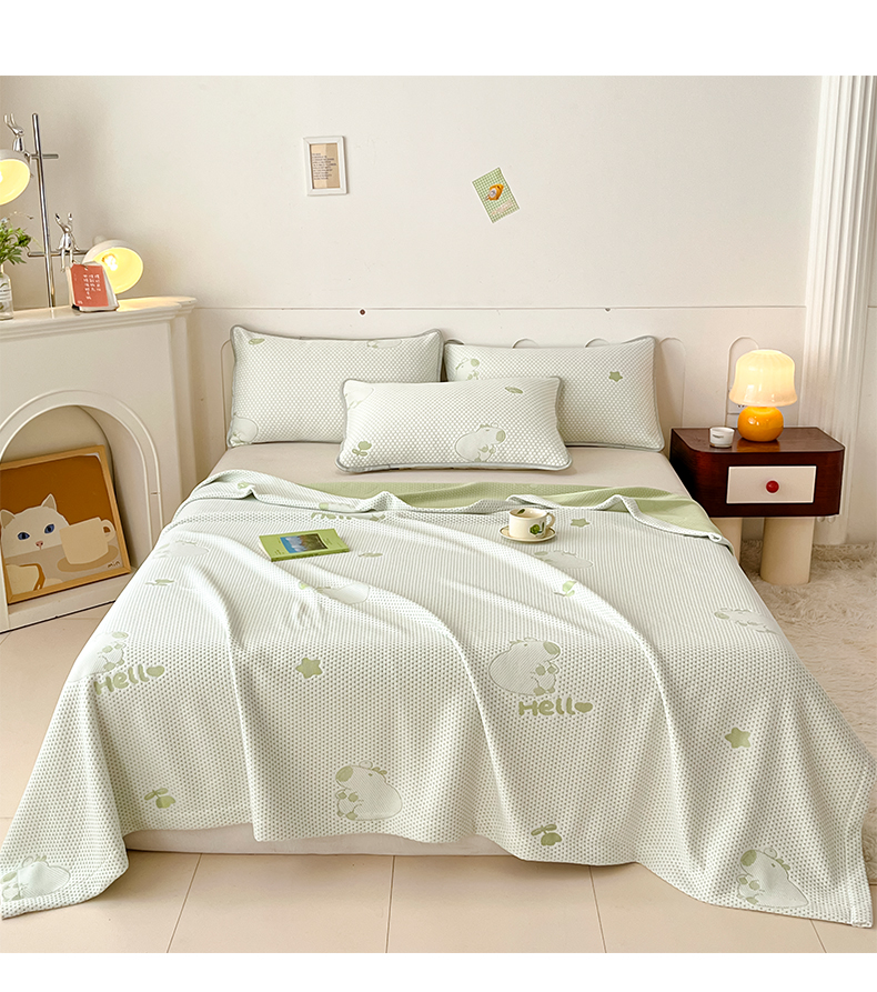 卡伦家纺2025凉豆豆冰丝毯系列 卡皮巴拉——绿