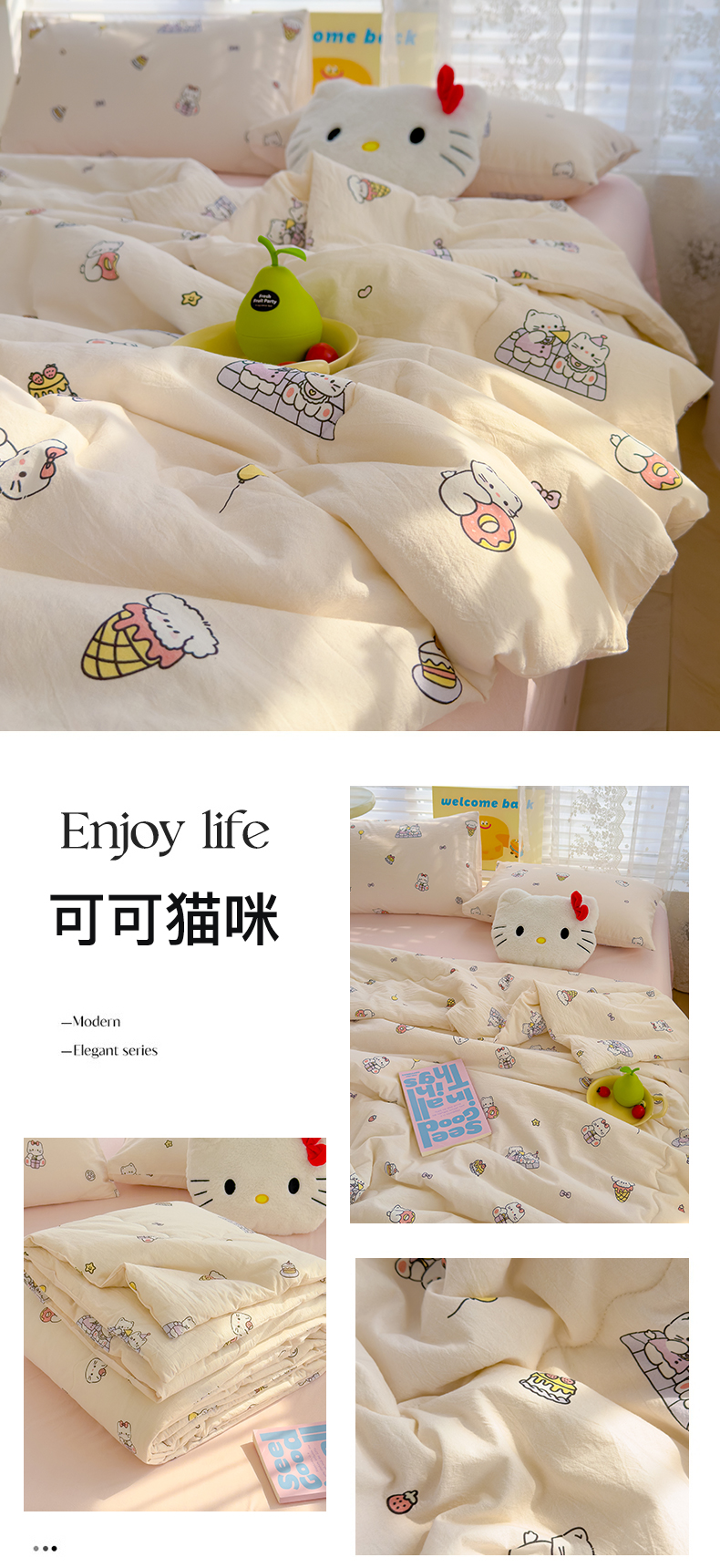 当前位置: 91家纺网 > 商品网购 > 床品套件 > 四件套 > 夏被四件套 > 颜选 2025新款印花棉柔水洗棉夏被四件套 可可猫咪