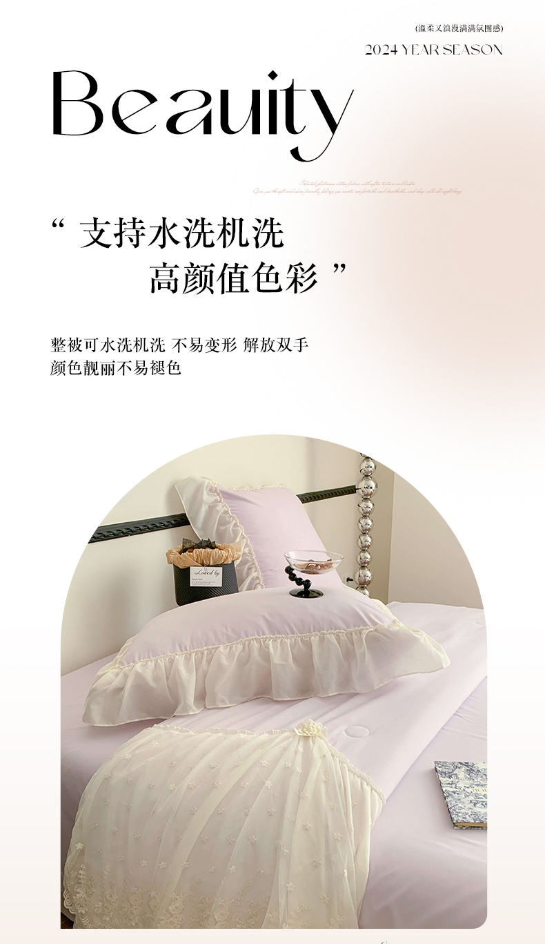 (总)吾欢心 2025新款公主风雪纺边四季通用夹棉床盖,床盖白,床盖粉,床盖黄,床盖咖,床盖绿,床盖抹茶绿,床盖紫