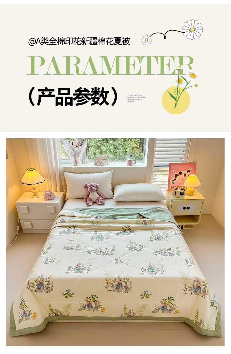 小石头家纺 2025新款里外全棉A类纯棉棉花小碎花夏被包质检=买家秀 花园小兔