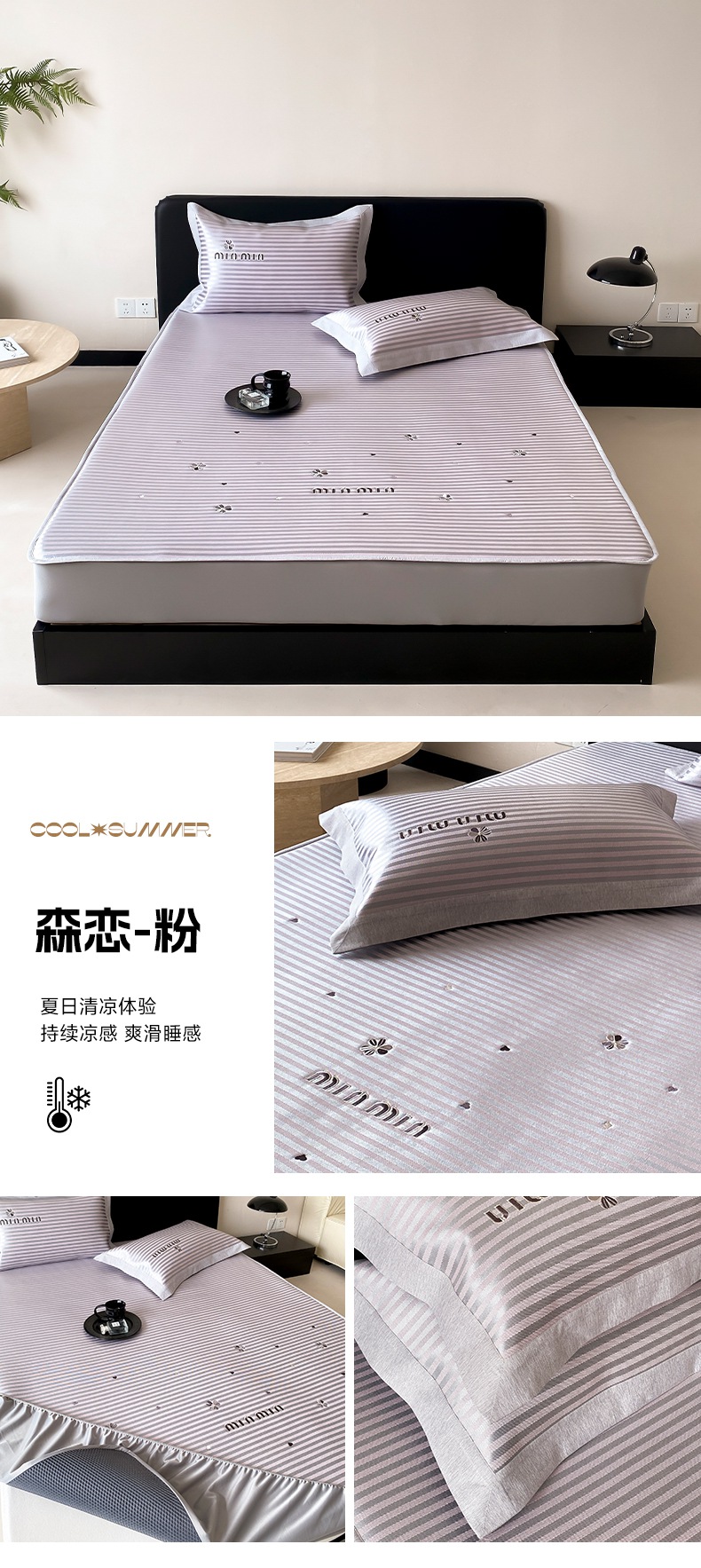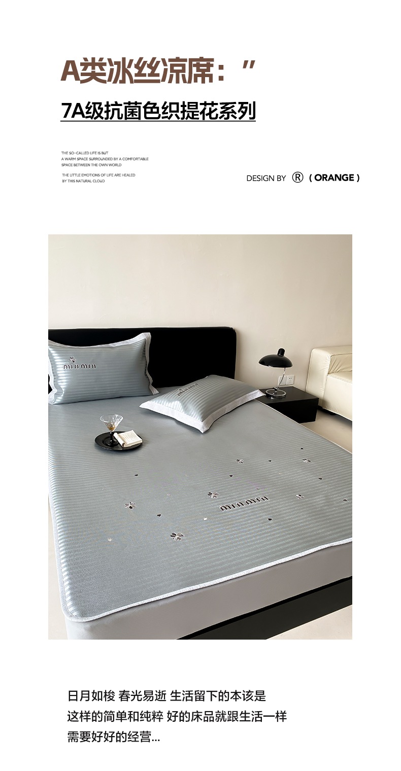 商品名称:由有家居 2025新款轻奢7A高精密抗菌可水洗色织提花进口刺绣冰丝凉席-森恋 森恋-灰