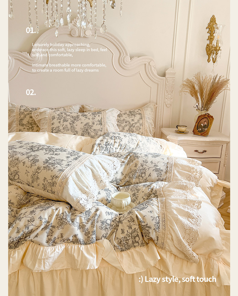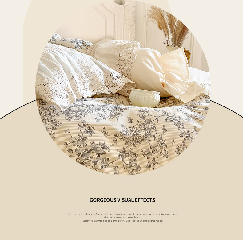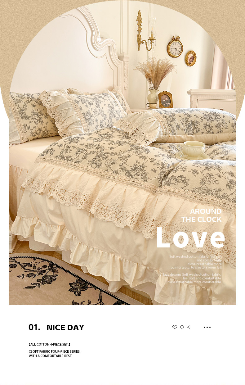 当前位置: 91家纺网 > 商品网购 > 床品套件 > 四件套 > 全棉普通四件套 > 亲亲公主 2025全棉法式花边四件套公主风 莫奈田园法式四件套