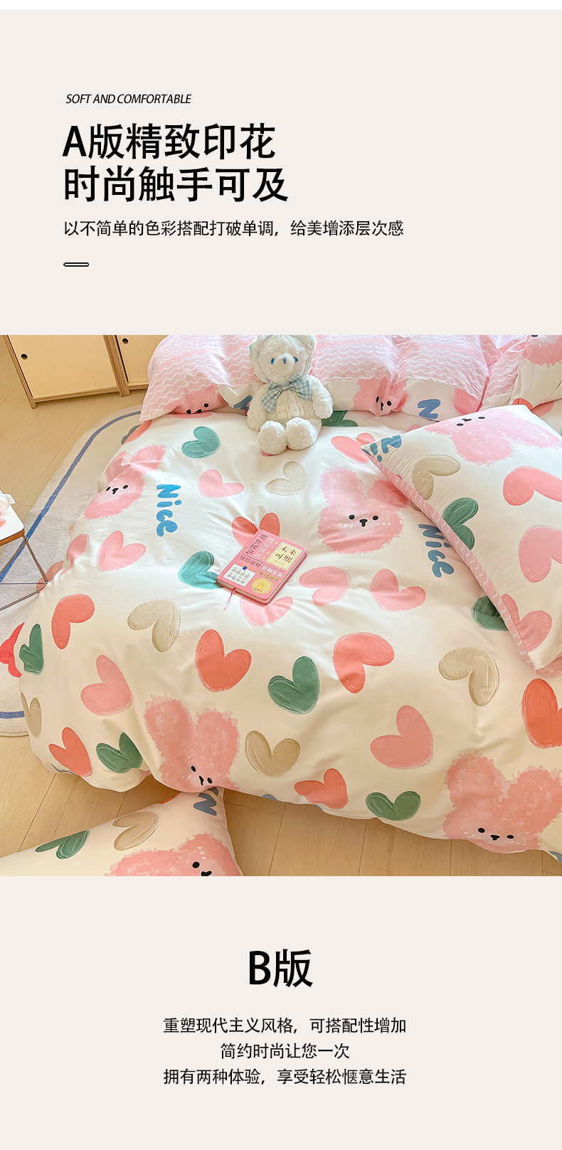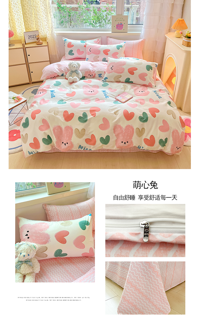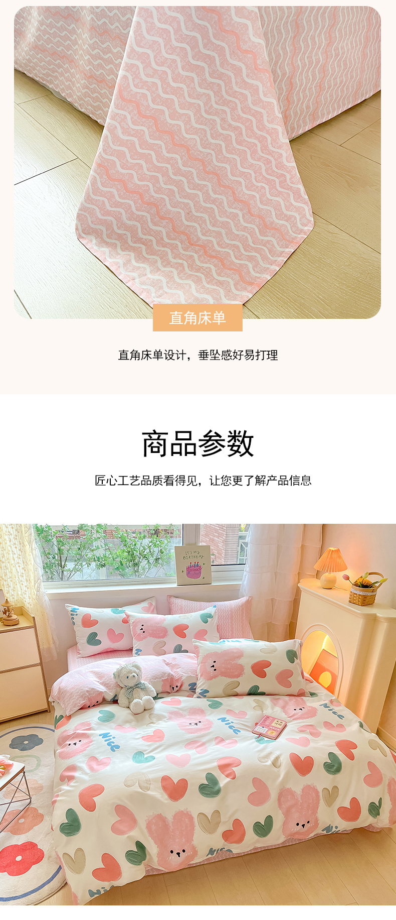商品名称:琪格格 2025春夏新款全棉纯棉40S13372小清新四件套 萌心兔