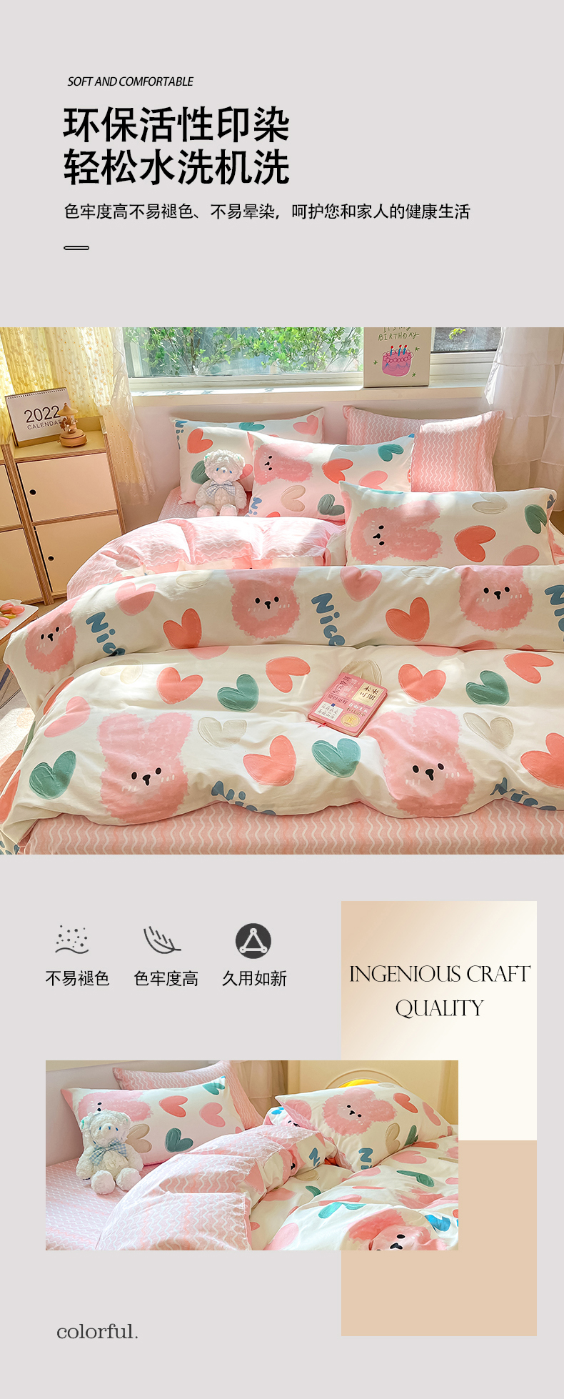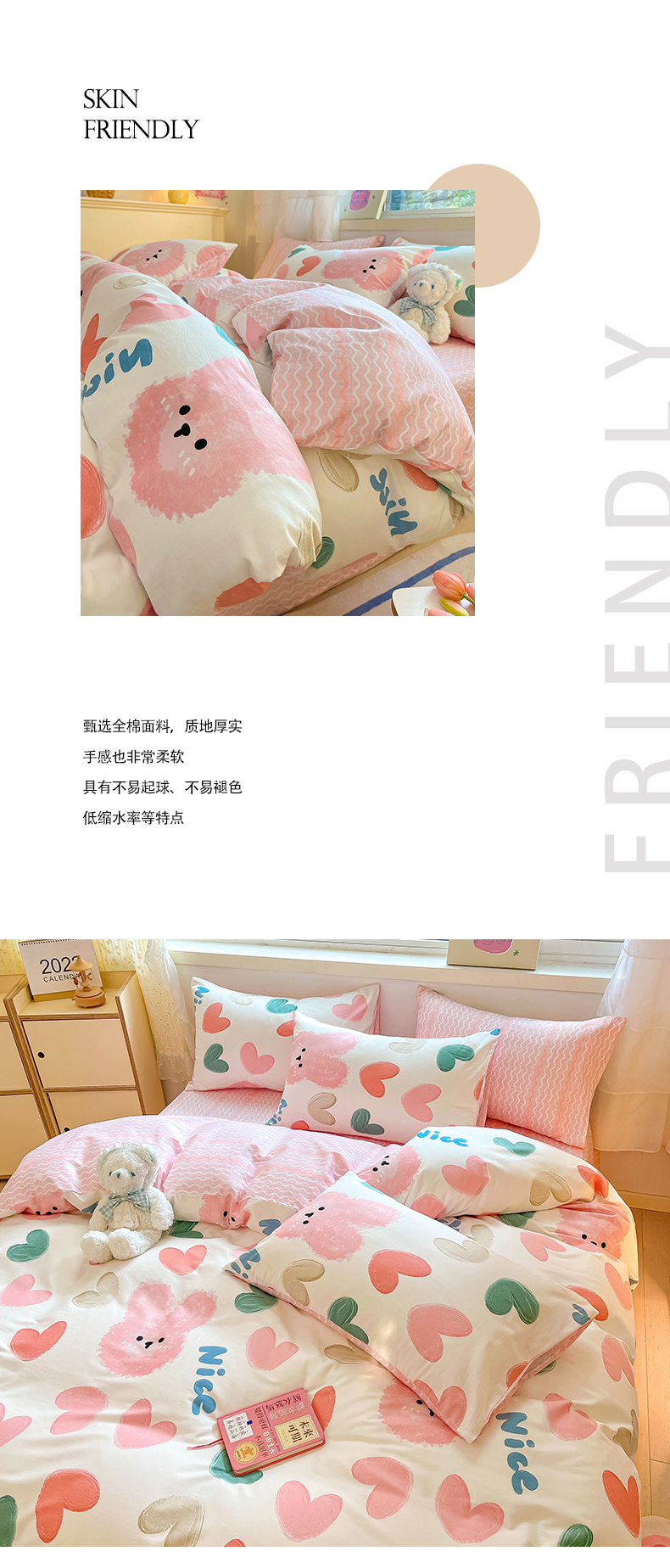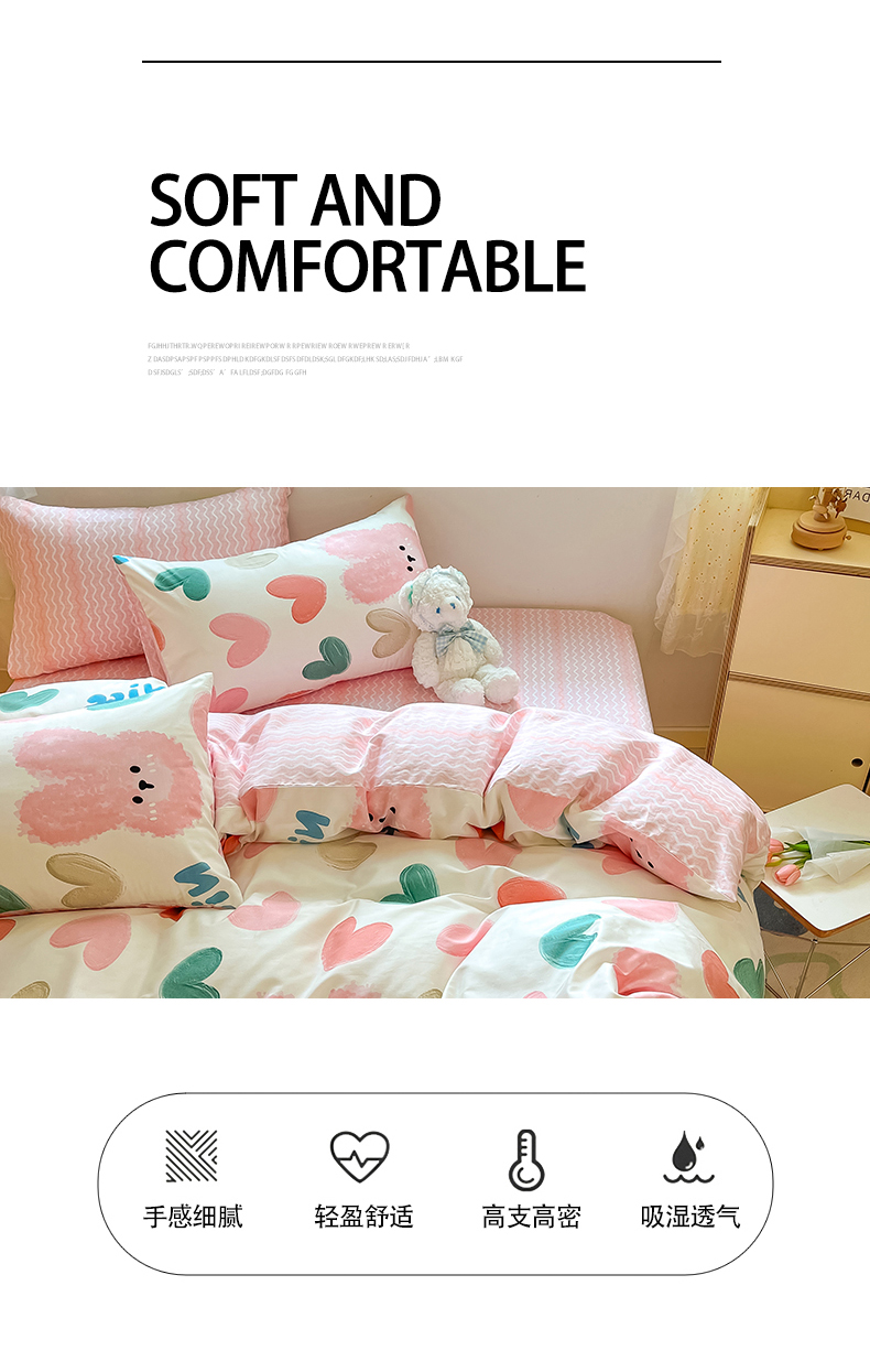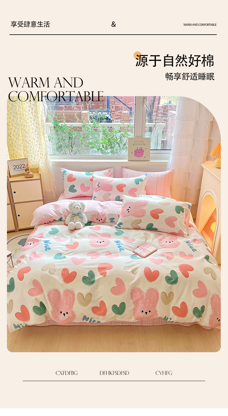 商品名称:琪格格 2025春夏新款全棉纯棉40S13372小清新四件套 萌心兔
