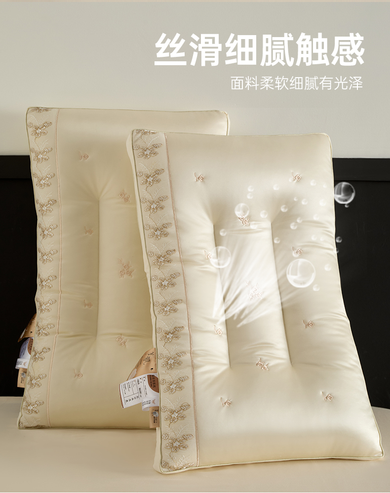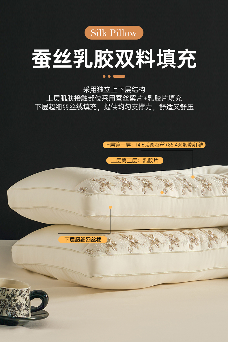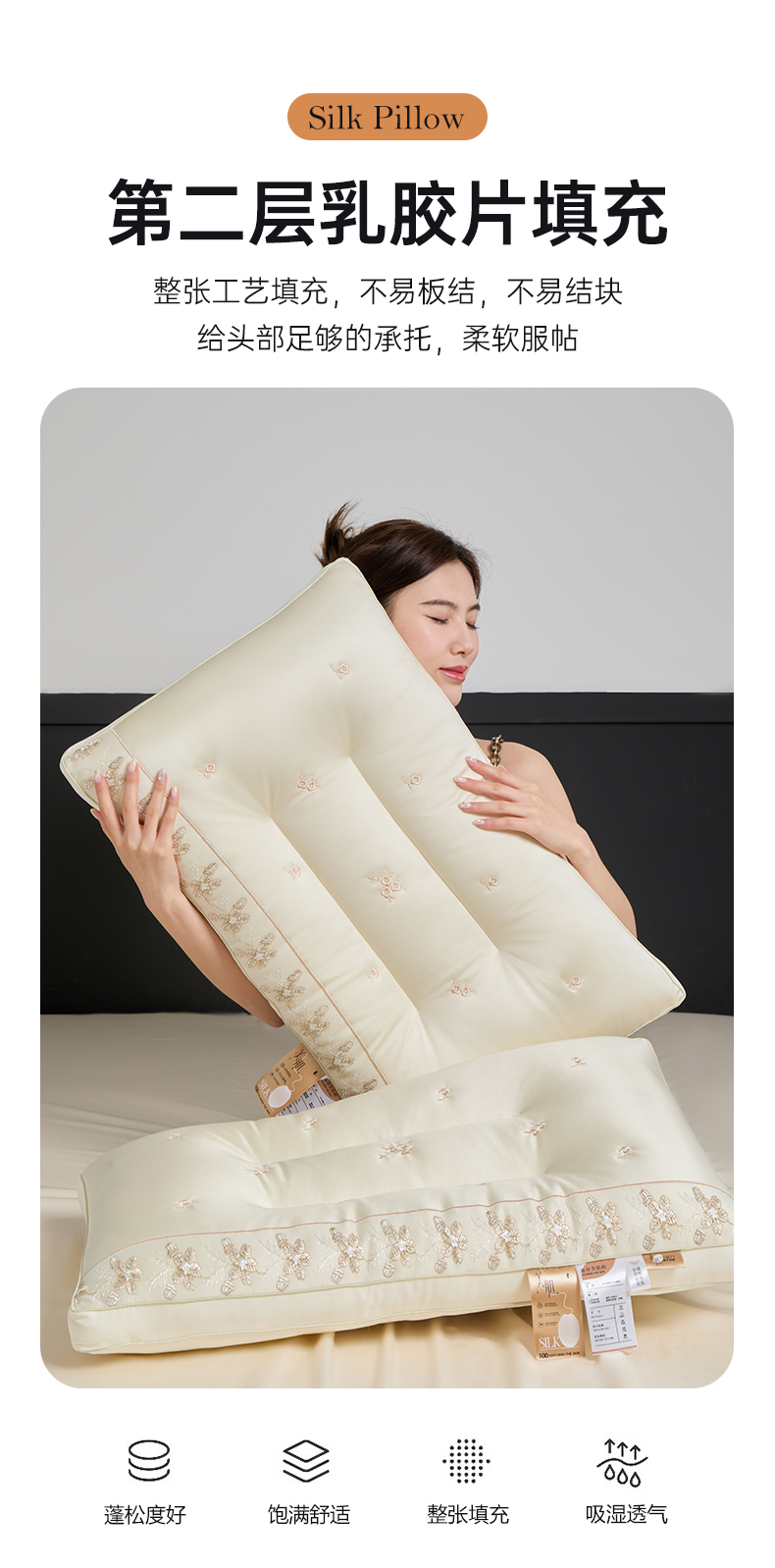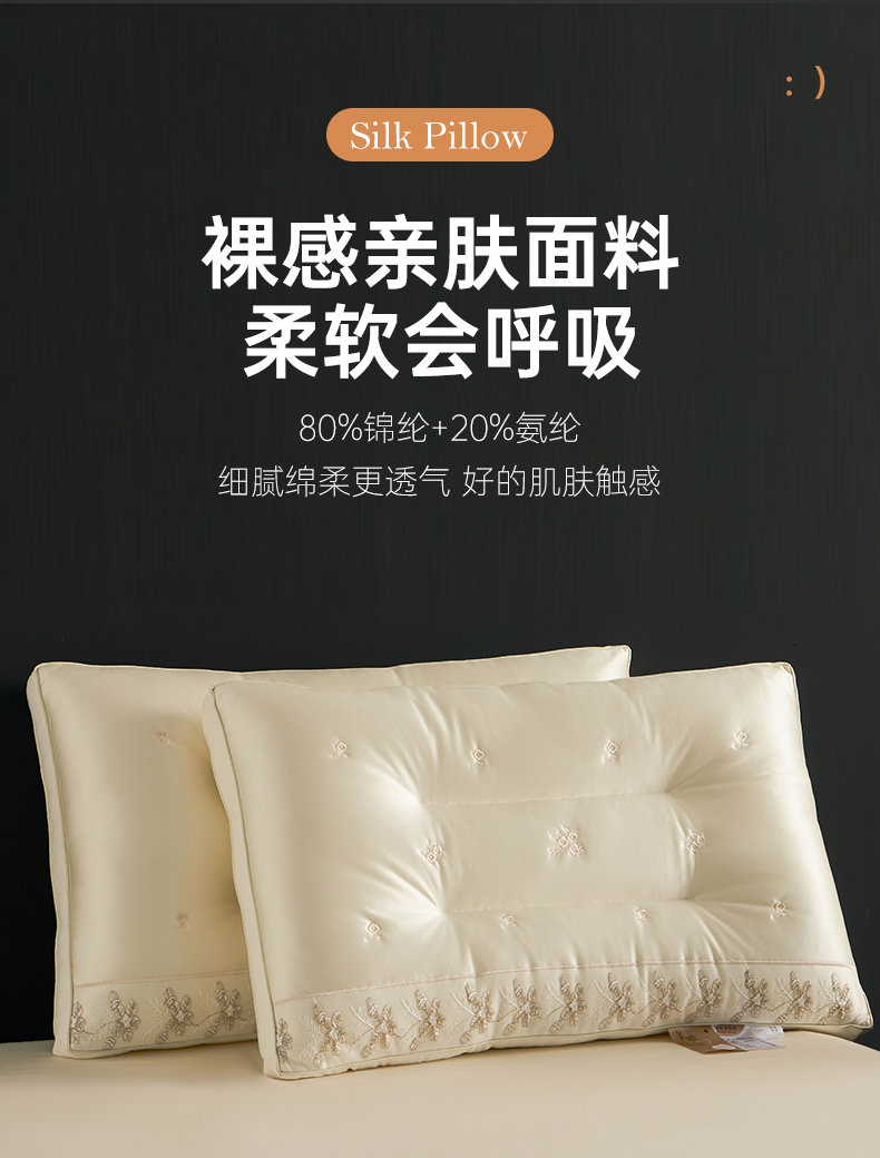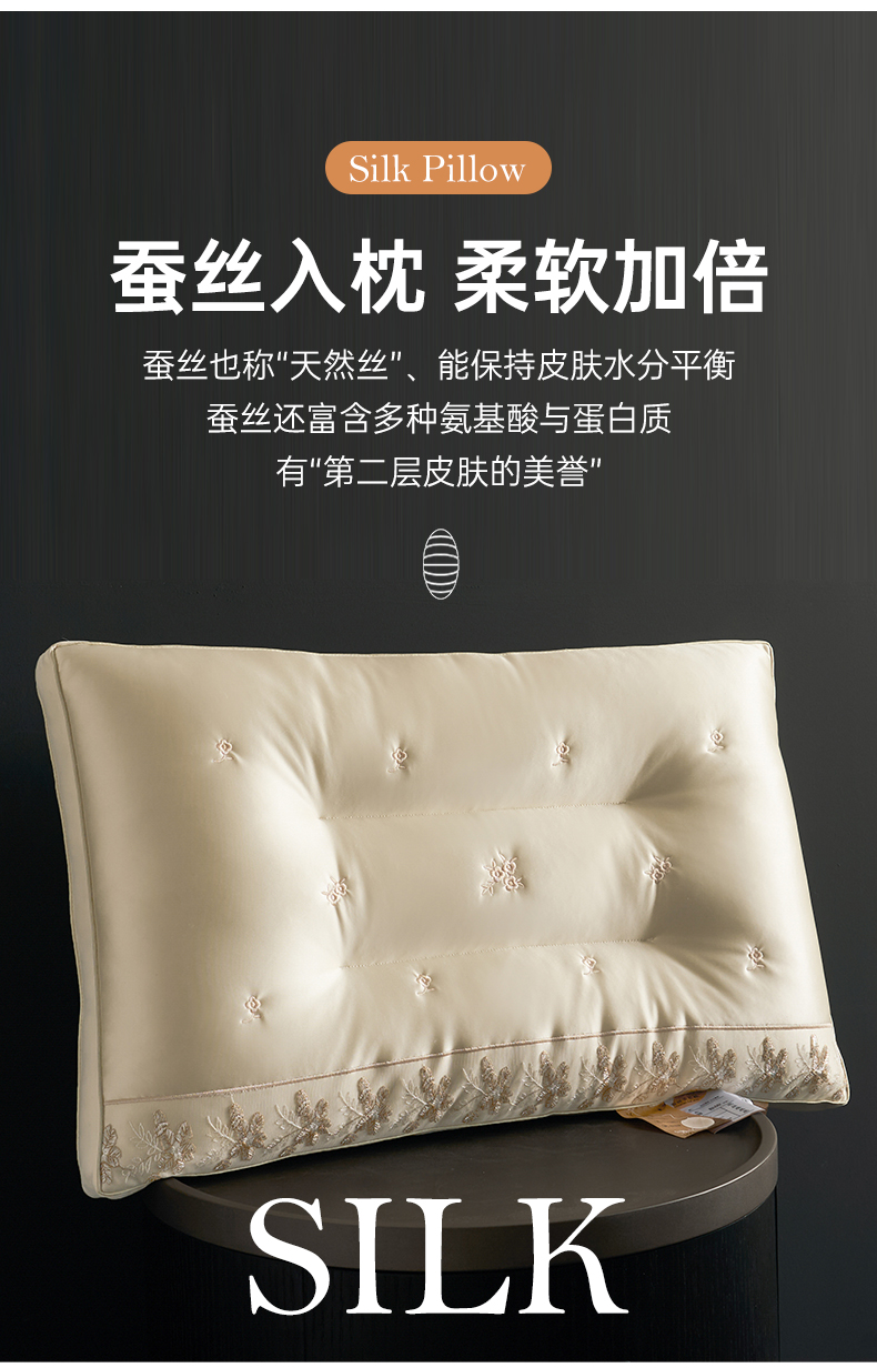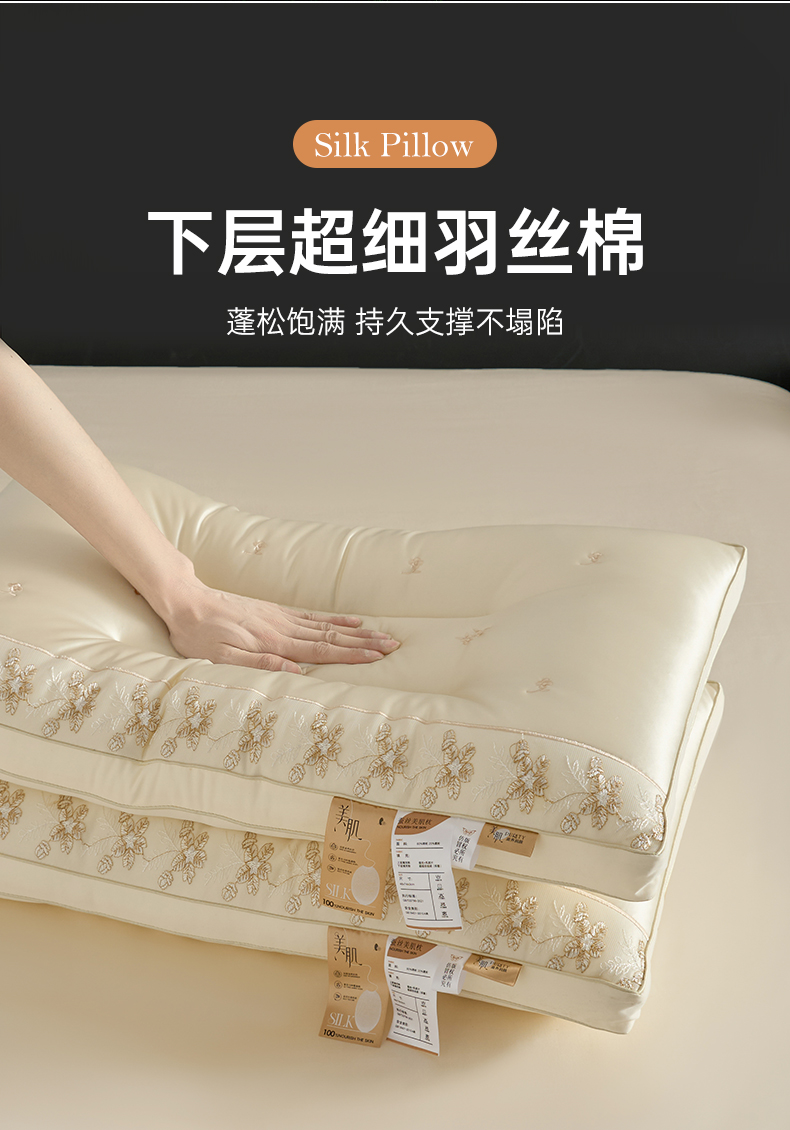 当前位置: 91家纺网 > 商品网购 > 枕头/枕芯/保健枕/颈椎枕 > 普通枕芯 > (总)昕科 2025新款蚕丝乳胶美肌枕-桑蚕丝枕头乳胶片花边刺绣羽丝棉成人颈椎枕芯