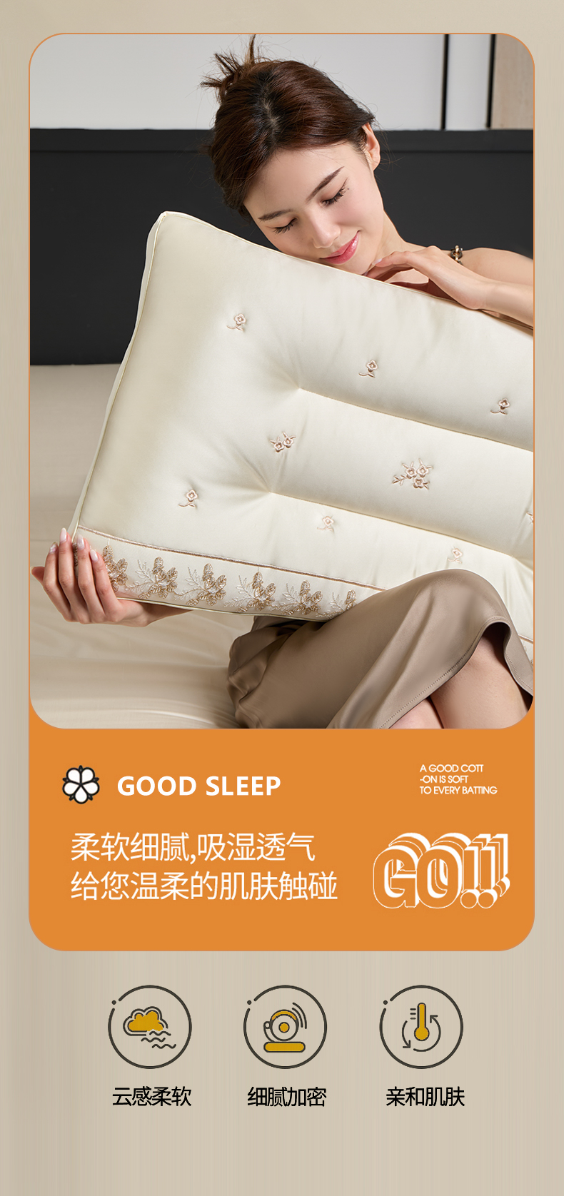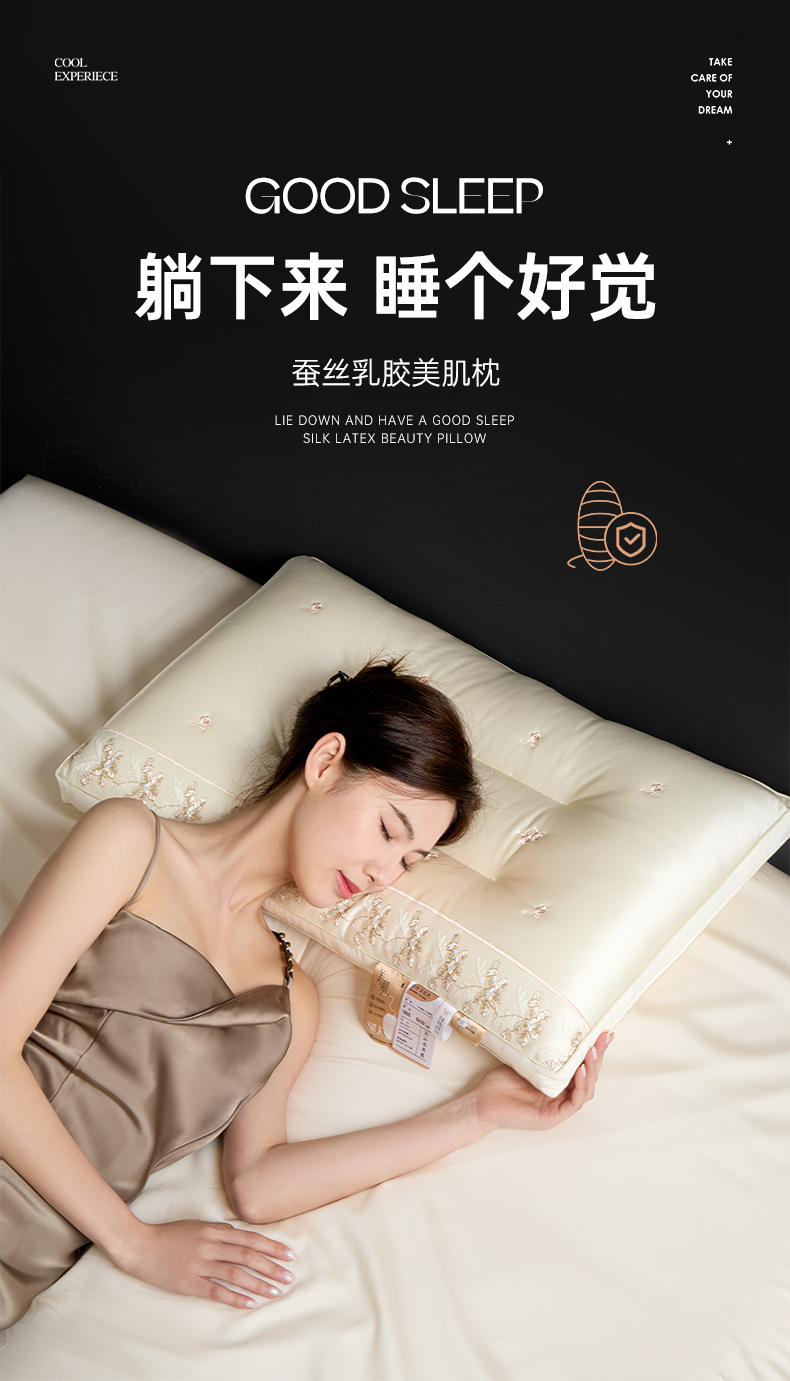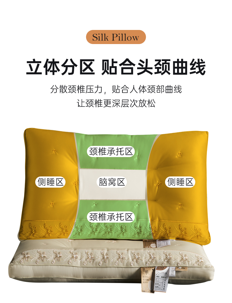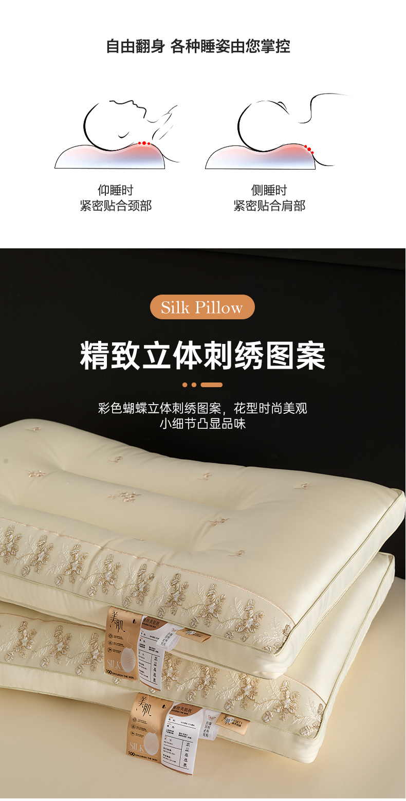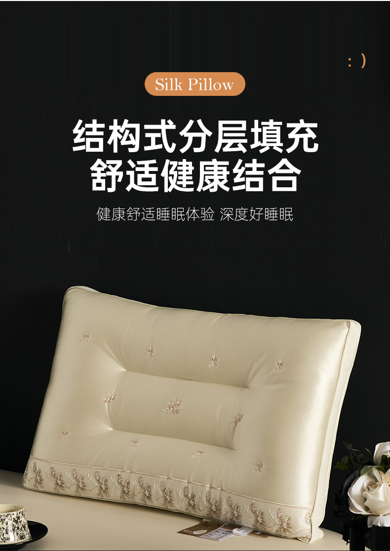 当前位置: 91家纺网 > 商品网购 > 枕头/枕芯/保健枕/颈椎枕 > 普通枕芯 > (总)昕科 2025新款蚕丝乳胶美肌枕-桑蚕丝枕头乳胶片花边刺绣羽丝棉成人颈椎枕芯
