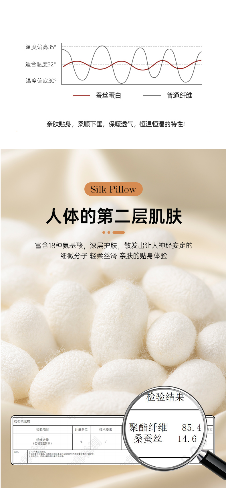 填充:上层14.6%桑蚕丝+85.4%聚酯纤维 (有质检)