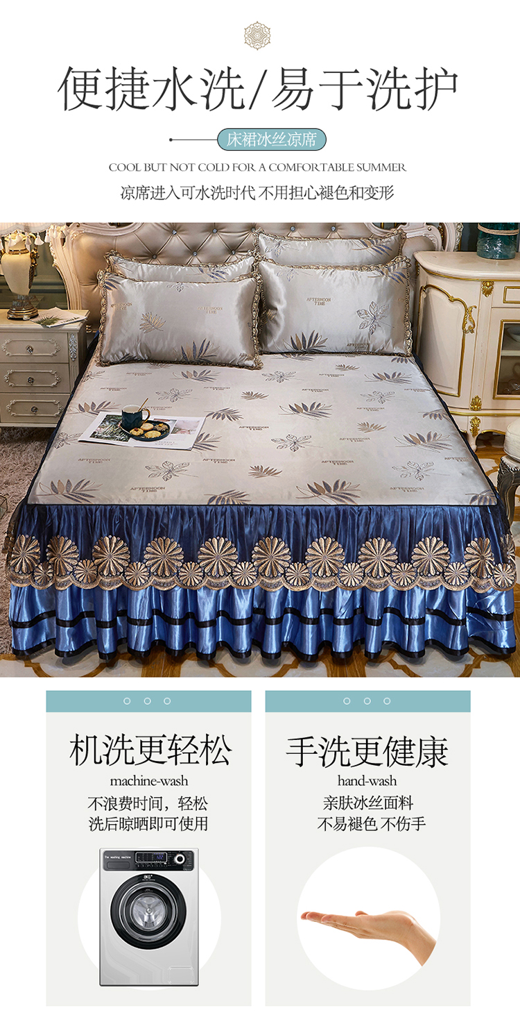 网红馆(ck家纺) 2025新款色织提花冰丝凉席床裙款 午后时光