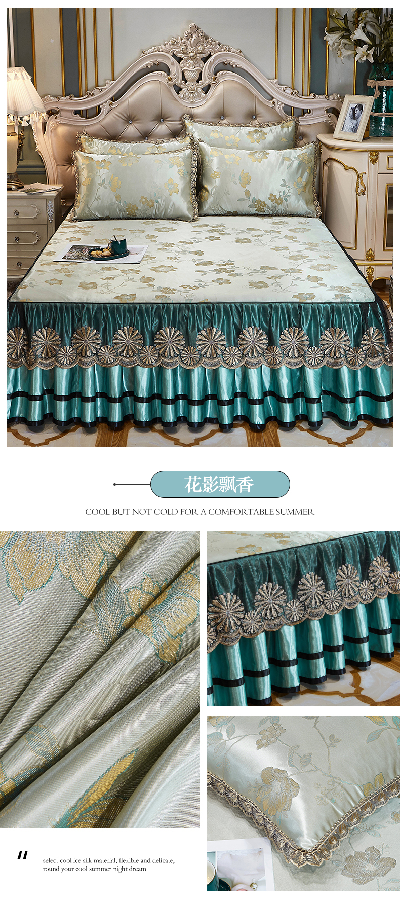 商品名称:网红馆(ck家纺) 2025新款色织提花冰丝凉席床裙款 午后时光