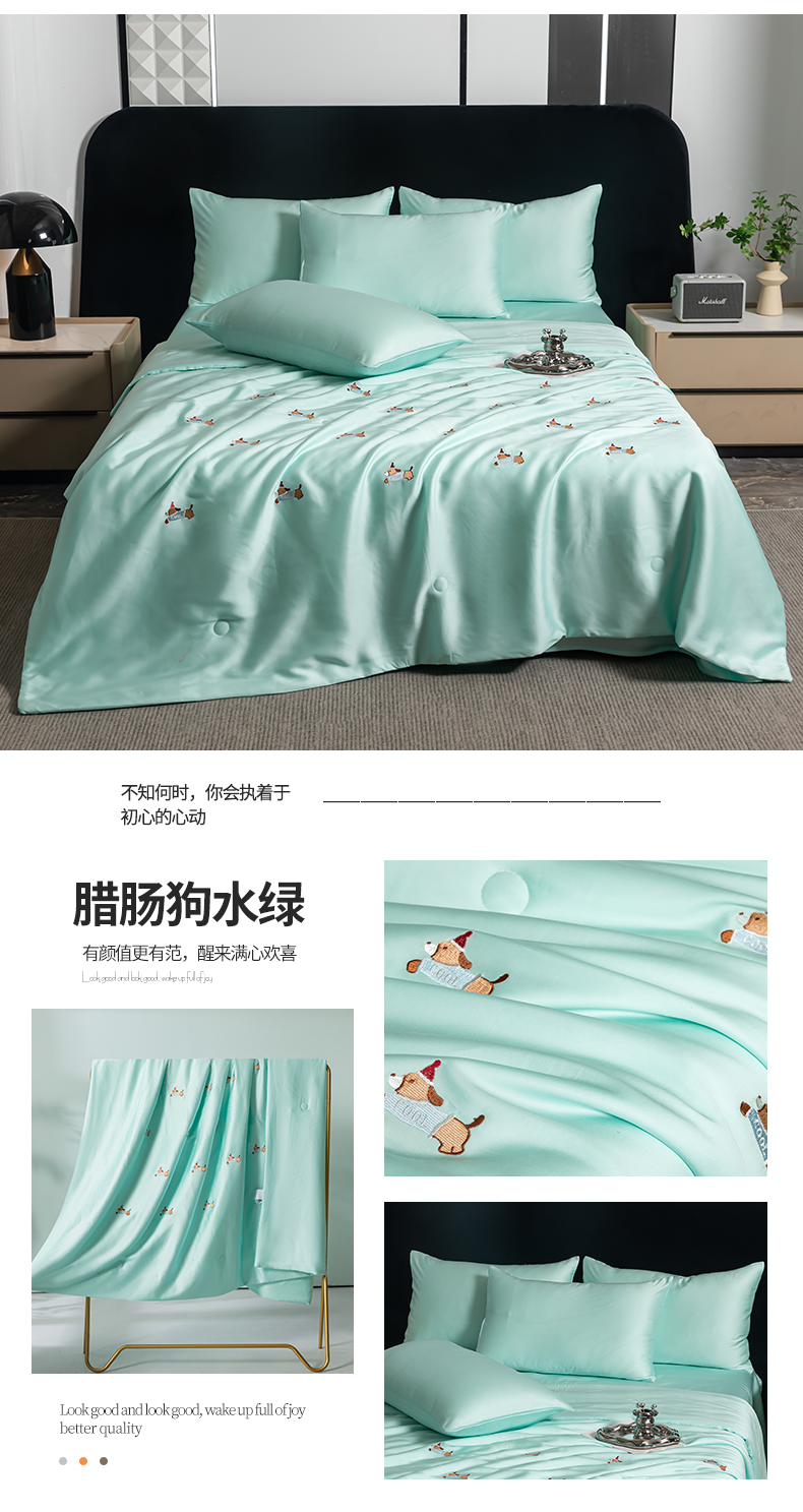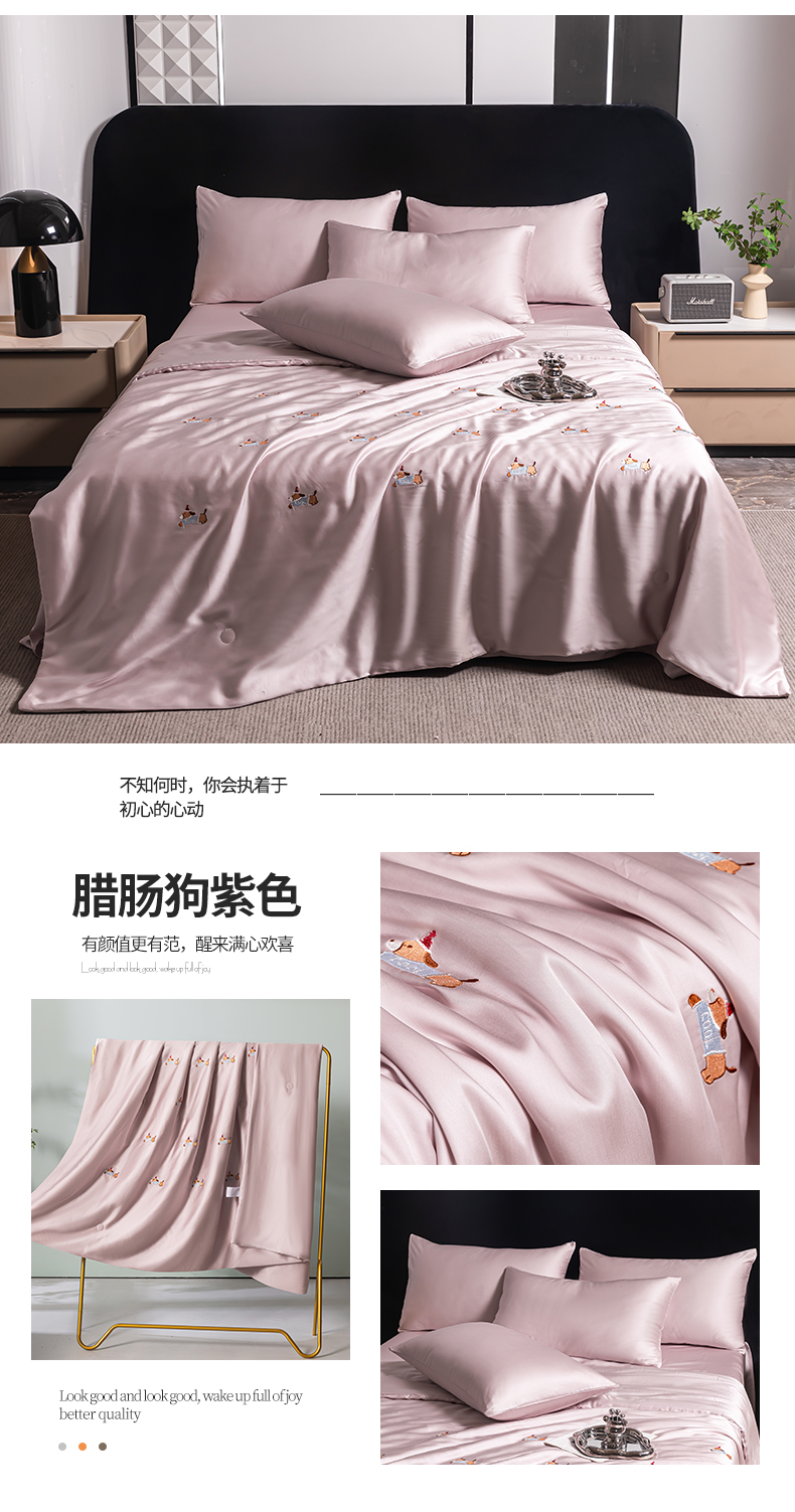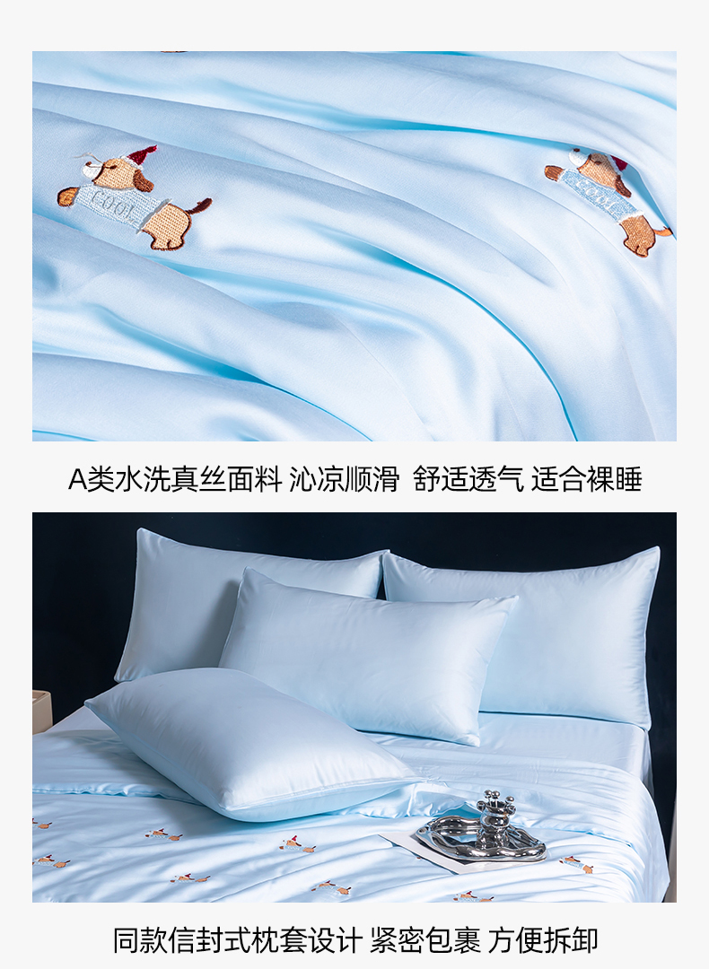 (总)梦镜家纺 2025新款A类水洗真丝夏被四件套,minmin粉色,minmin水蓝,minmin水绿,minmin香槟,minmin浅灰色,腊肠狗水蓝,腊肠狗粉色,腊肠狗水绿,腊肠狗香槟,腊肠狗浅灰色,熊猫粉色,熊猫水蓝,熊猫水绿,熊猫香槟,熊猫浅灰色,银树叶粉色,银树叶水蓝,银树叶水绿,银树叶香槟,银树叶浅灰色