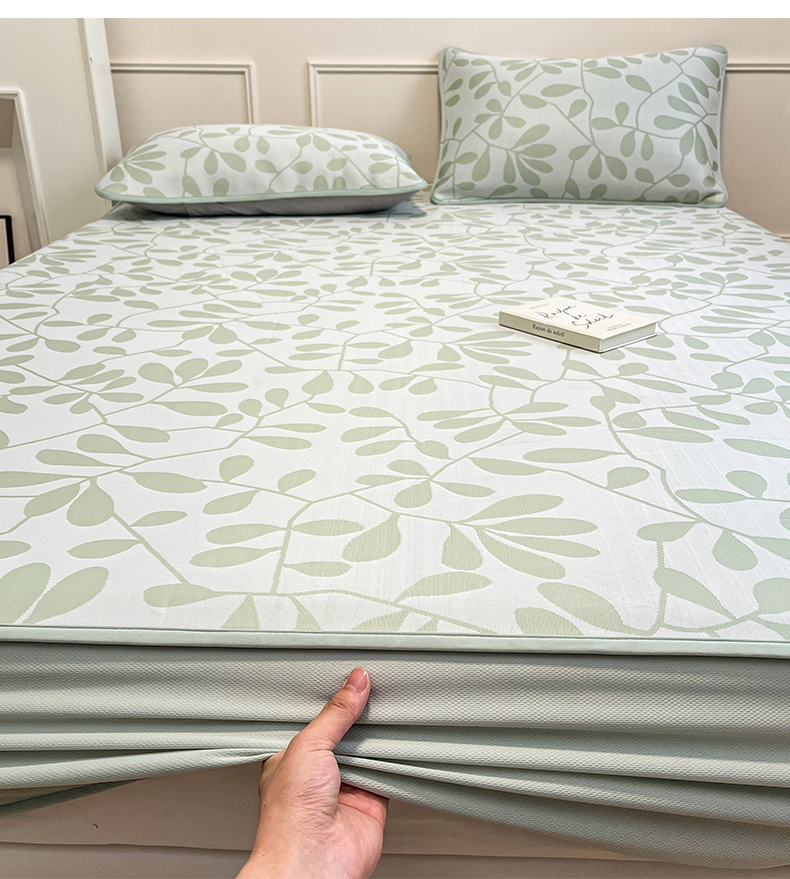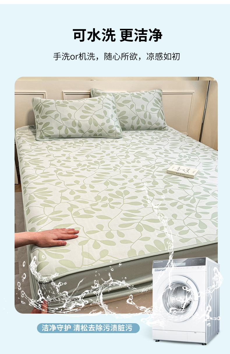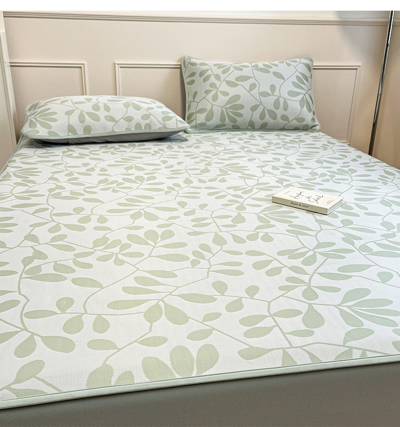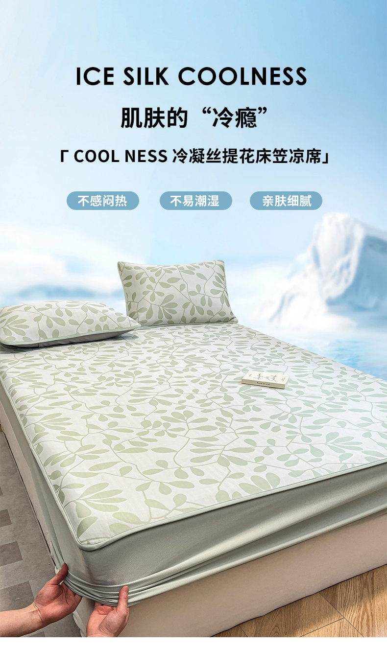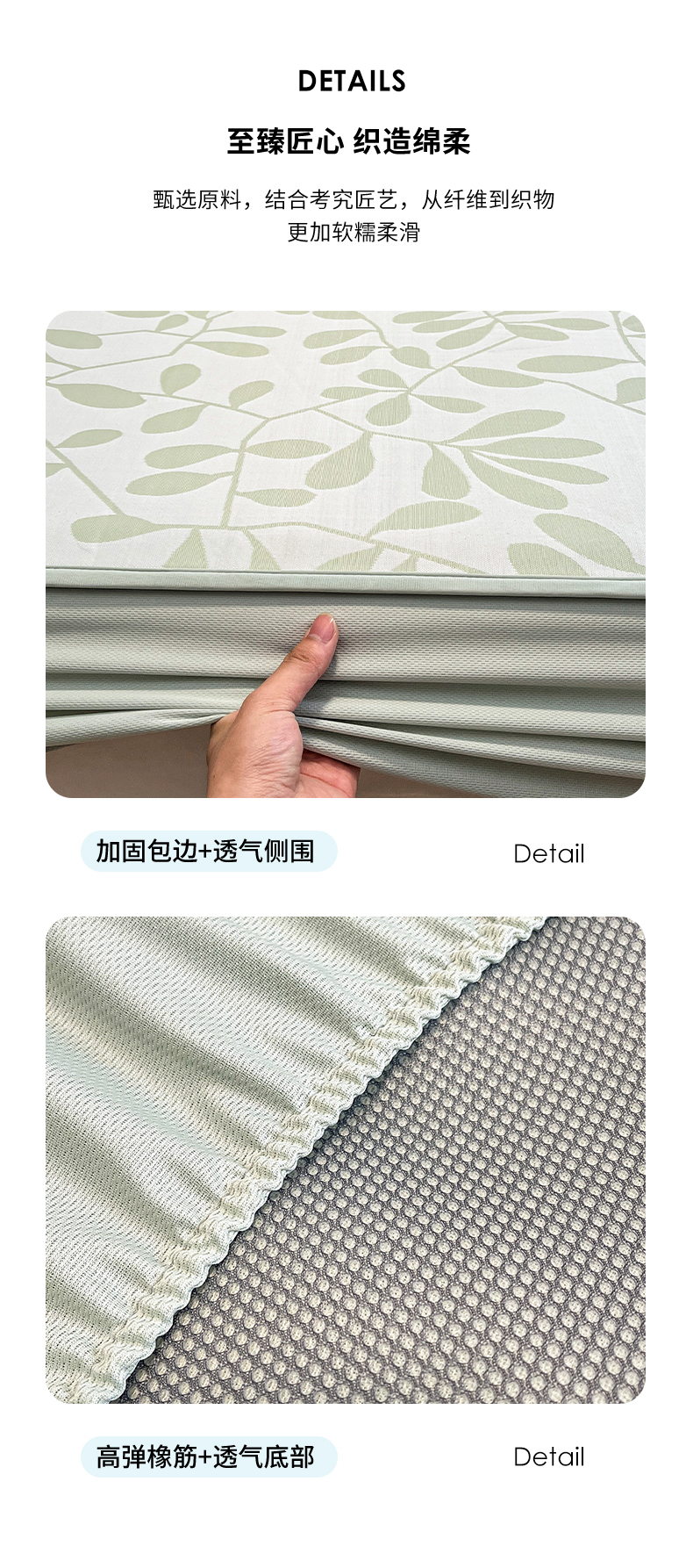 商品名称:宜代光年 2025新款冷凝丝可水洗提花凉感席-床笠款 叶繁-绿